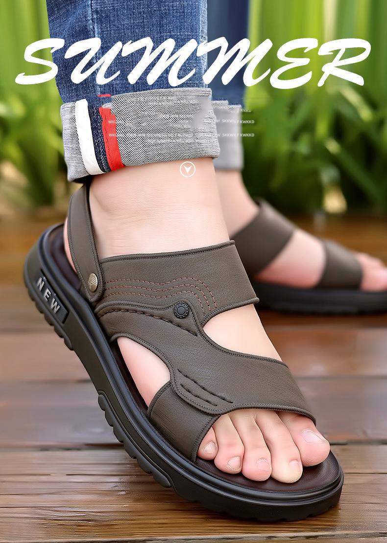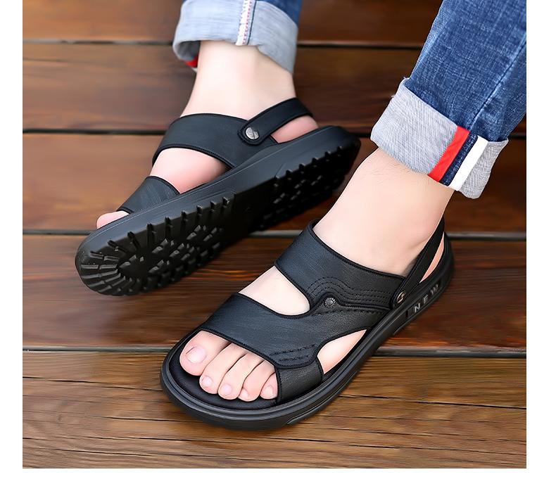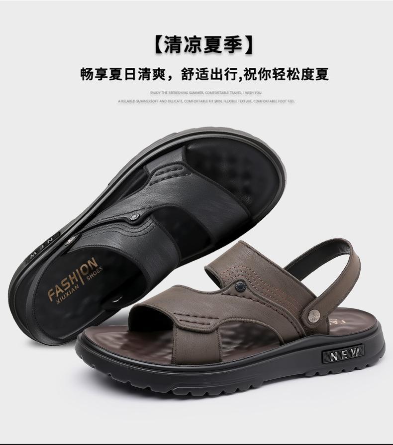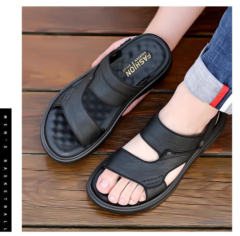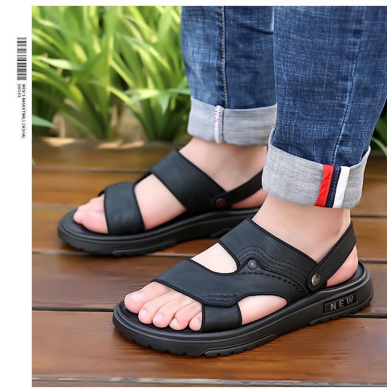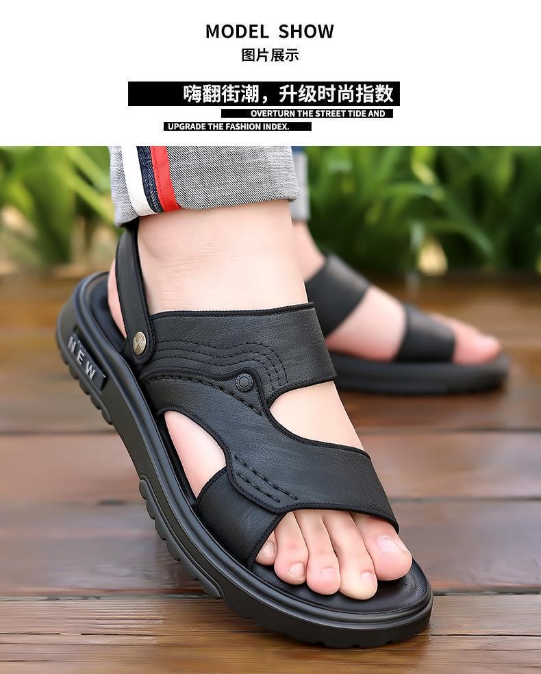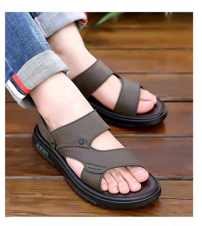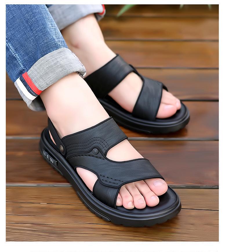 Sandalias de piel de vaca para hombre 2025 Nuevo estilo para uso al aire libre y para conducir, Sandalias para hombre con cojín de látex y suela suave, Zapatos de playa al por mayor