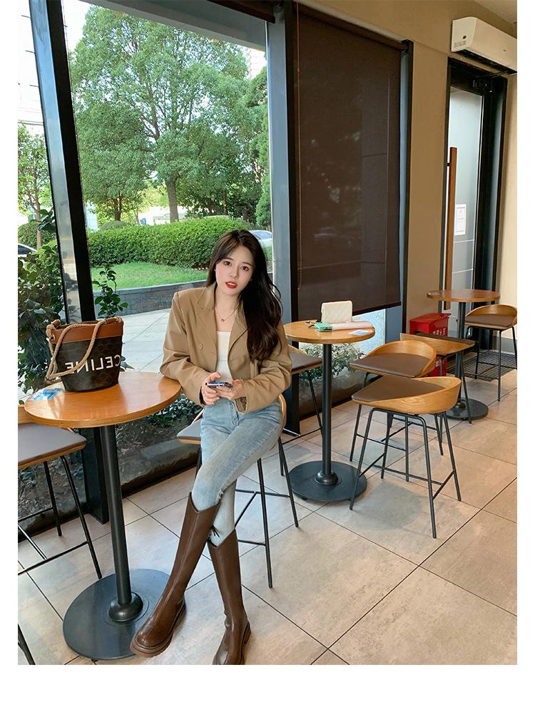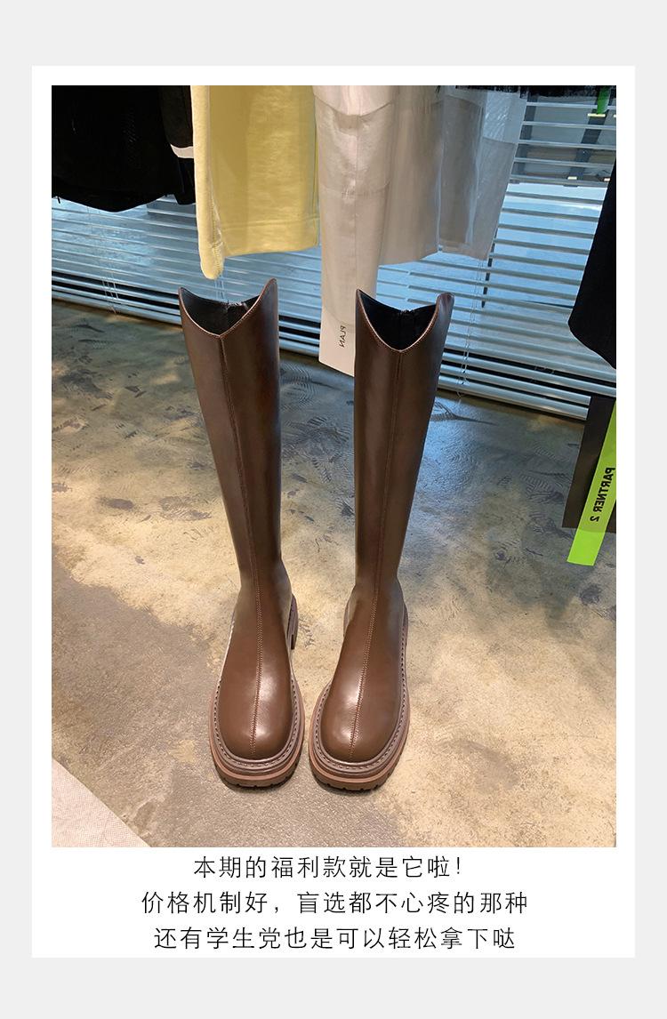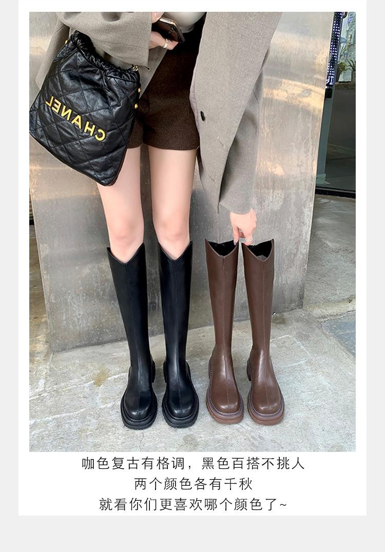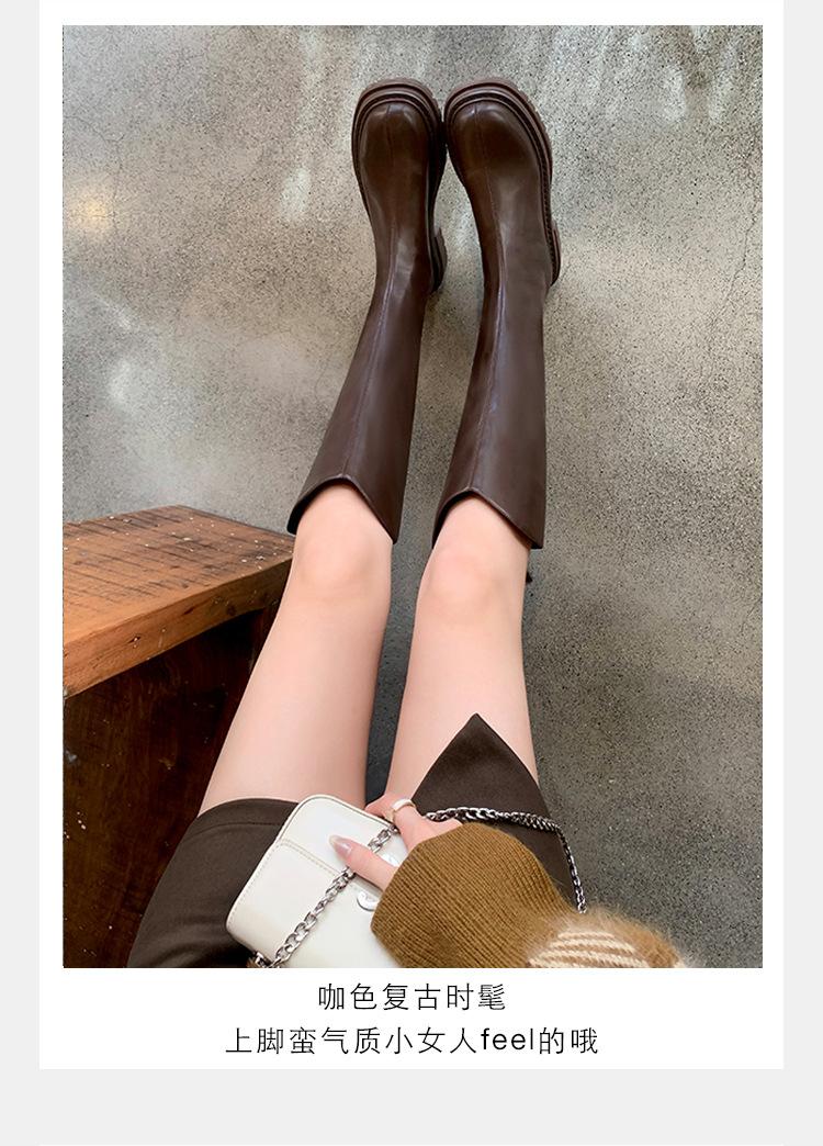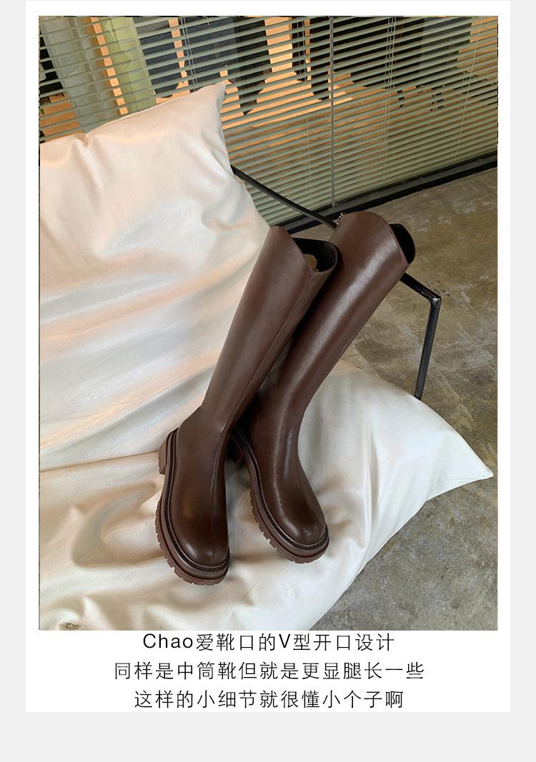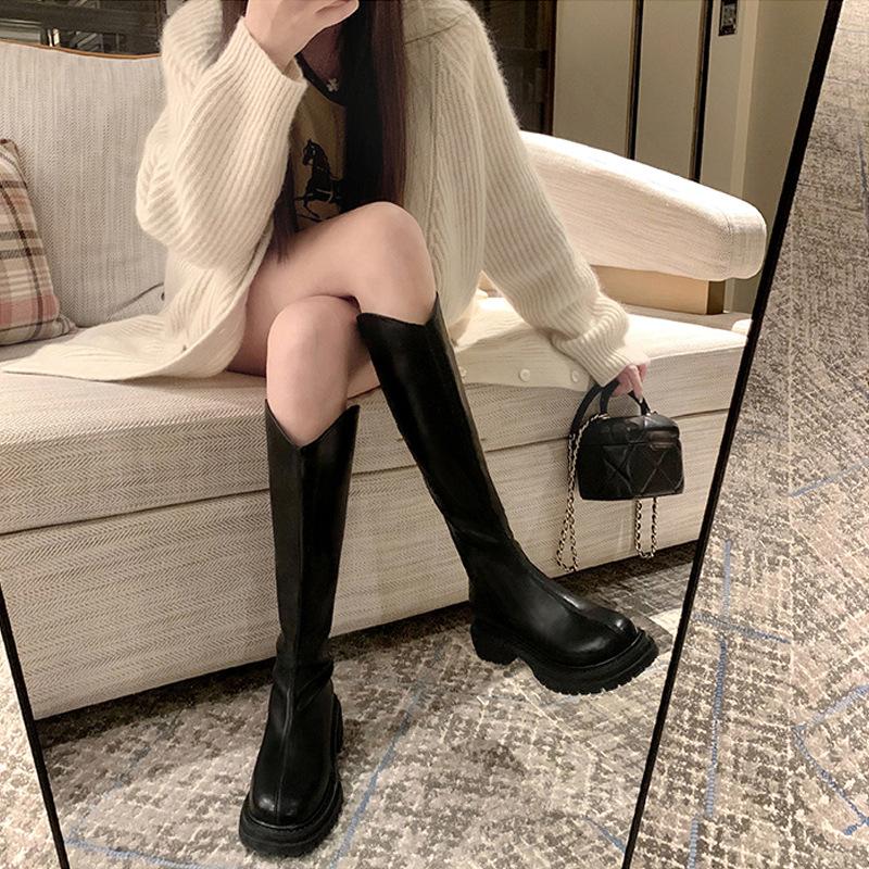 Botas vaqueras estilo coreano con boca en V para mujer, otoño e invierno, nuevas botas altas hasta la rodilla con suela gruesa y cremallera trasera
