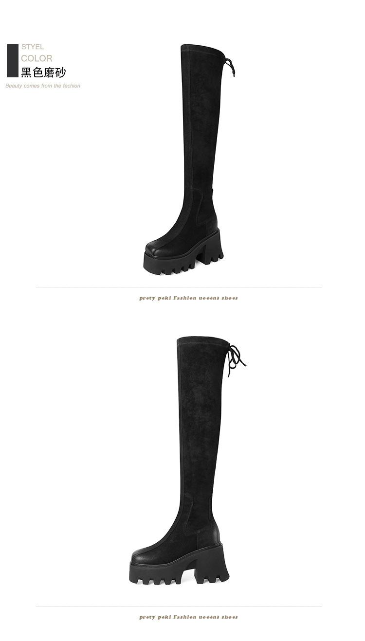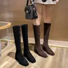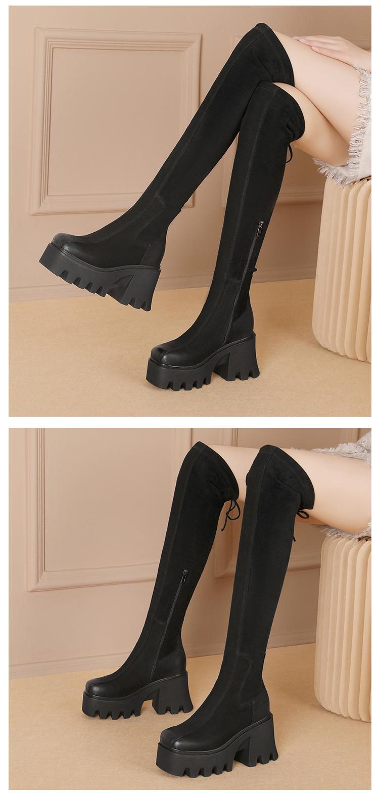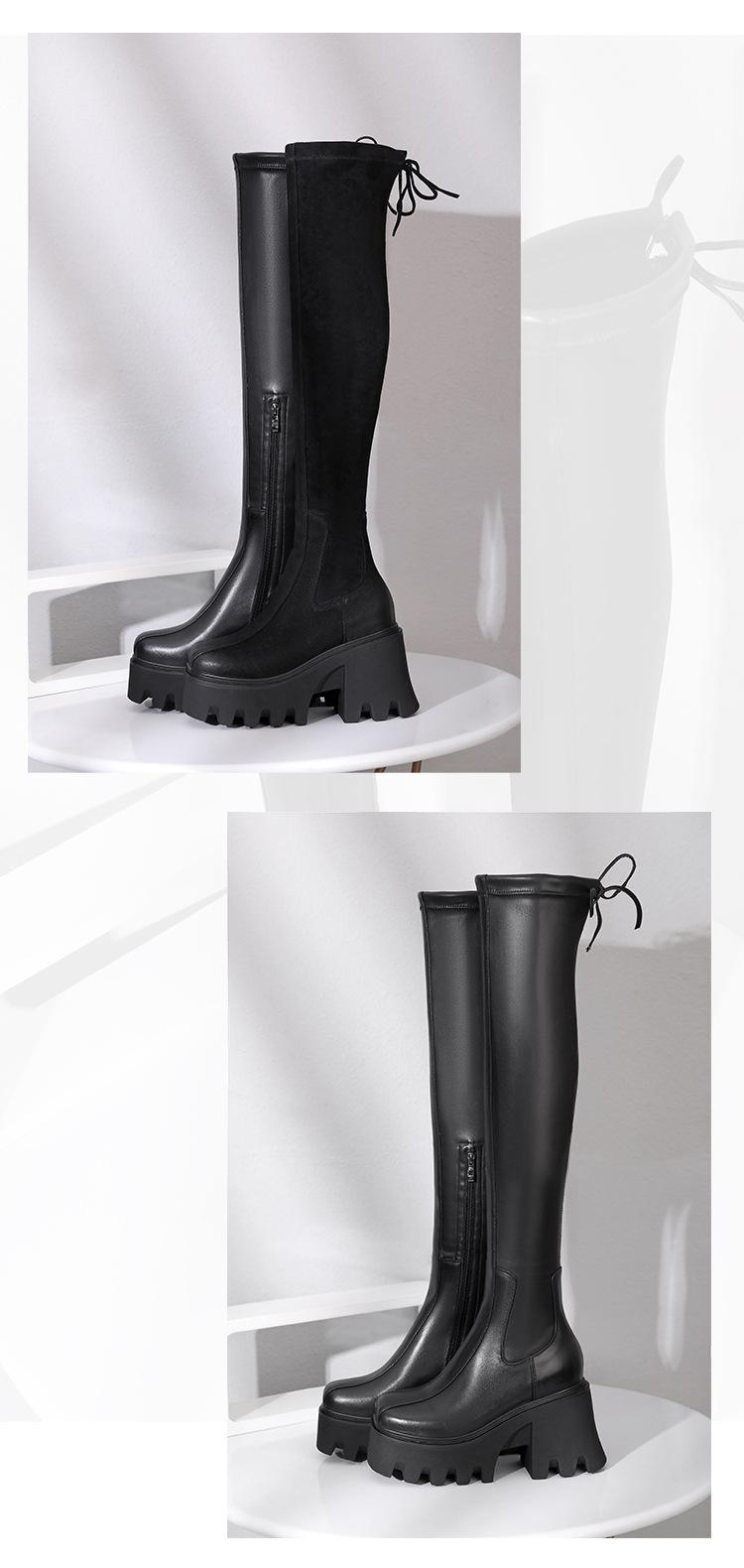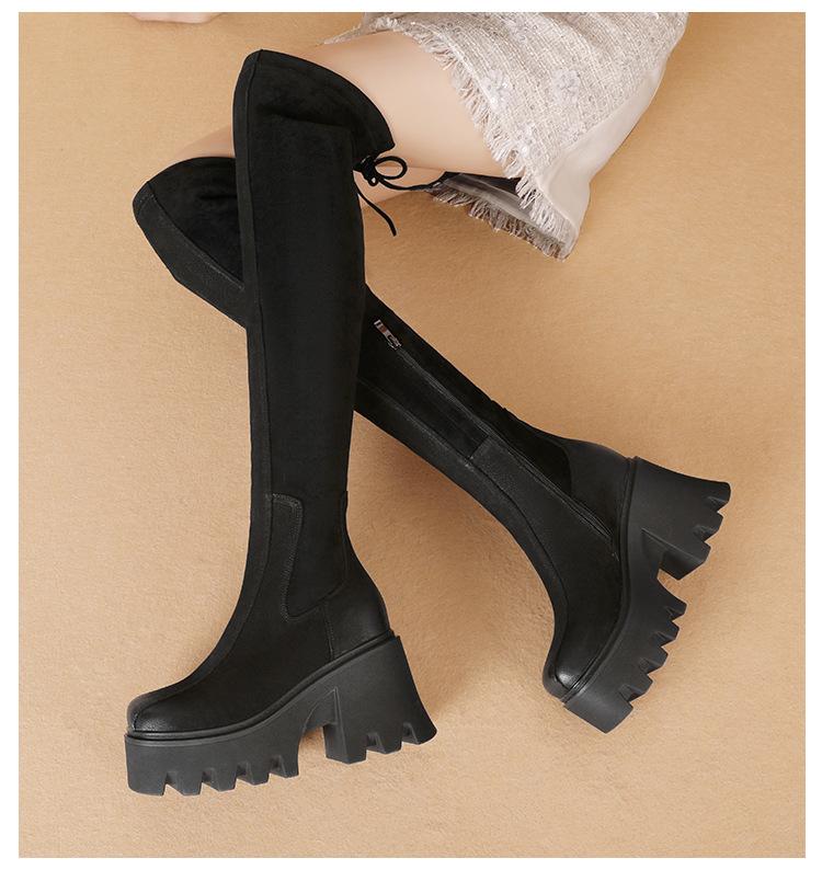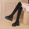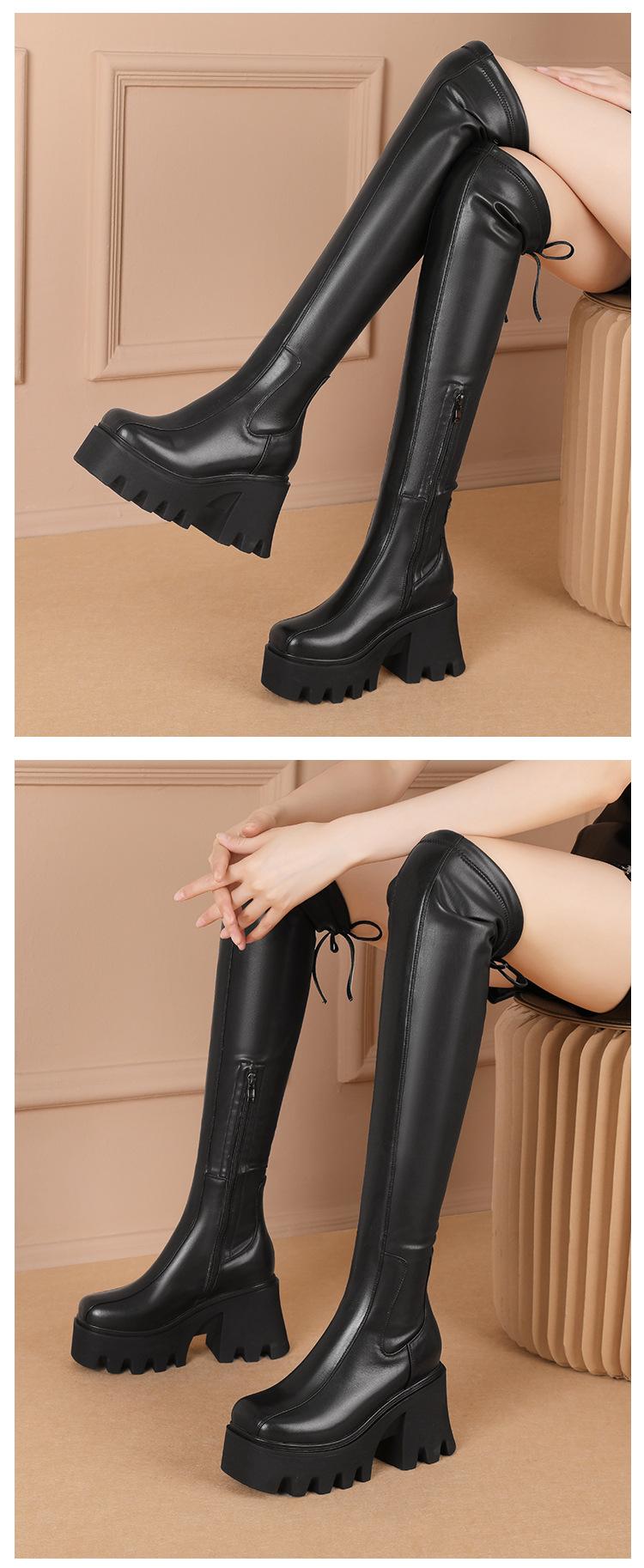 Botas altas de piel elástica por encima de la rodilla con aumento de 10 cm y cabeza cuadrada, adelgazantes, otoño 2021, para mujer
