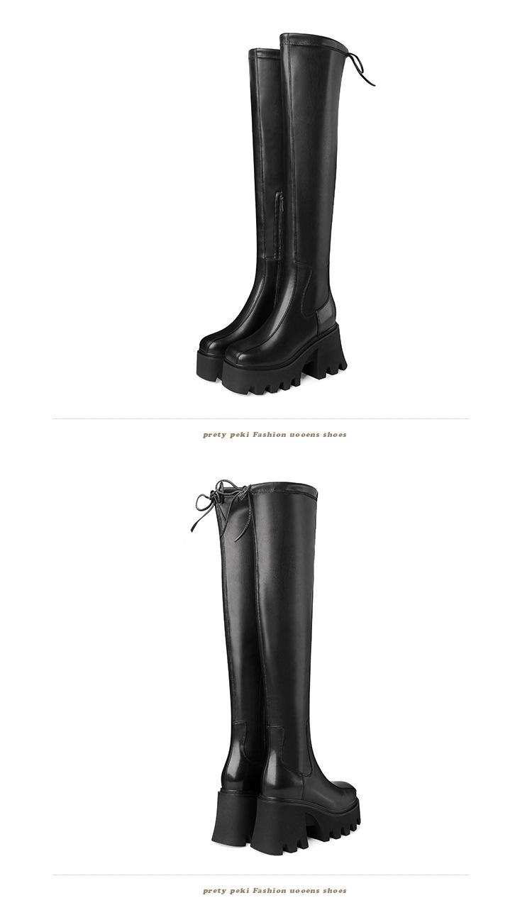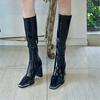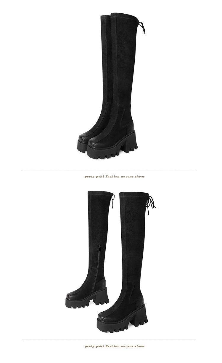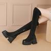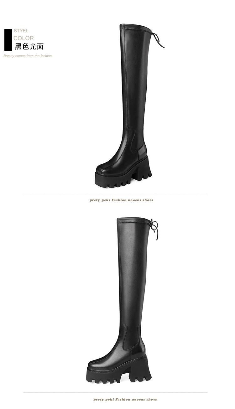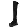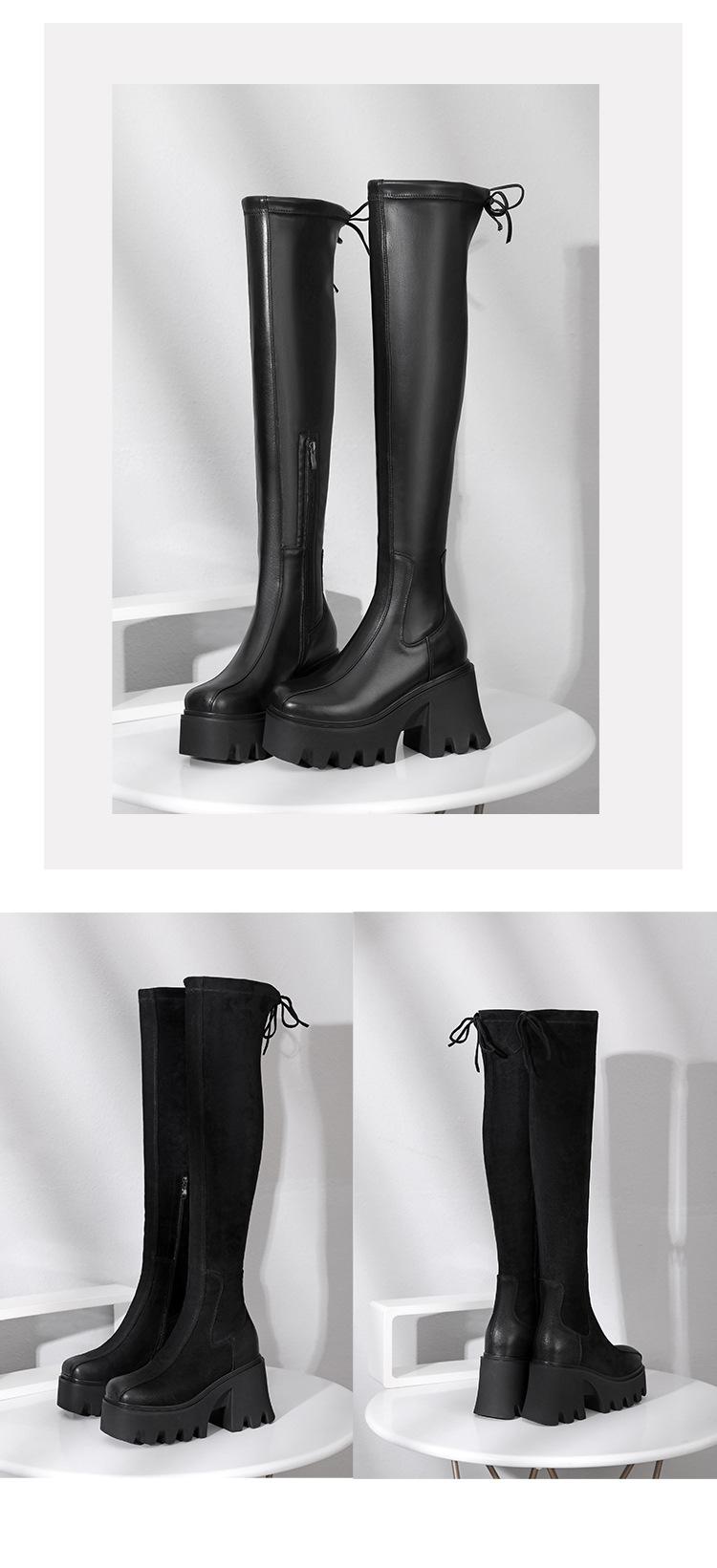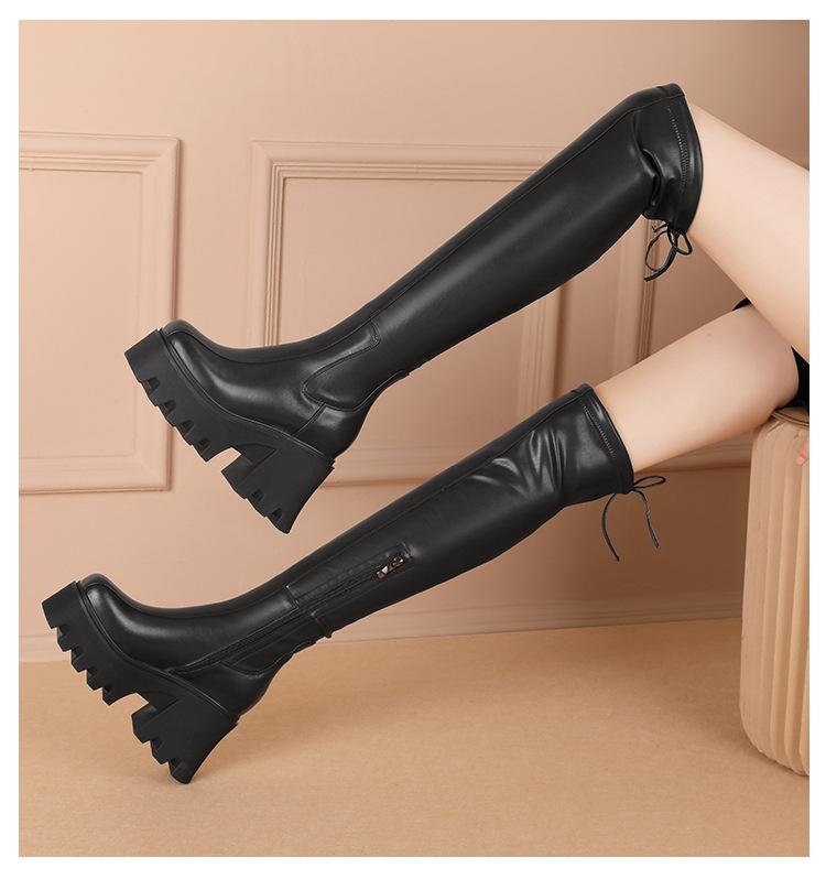 Botas altas de piel elástica por encima de la rodilla con aumento de 10 cm y cabeza cuadrada, adelgazantes, otoño 2021, para mujer