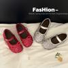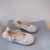 Zapatos planos de cuero calado para niña, estilo coreano, primavera 2025, con lazo, estilo princesa dulce