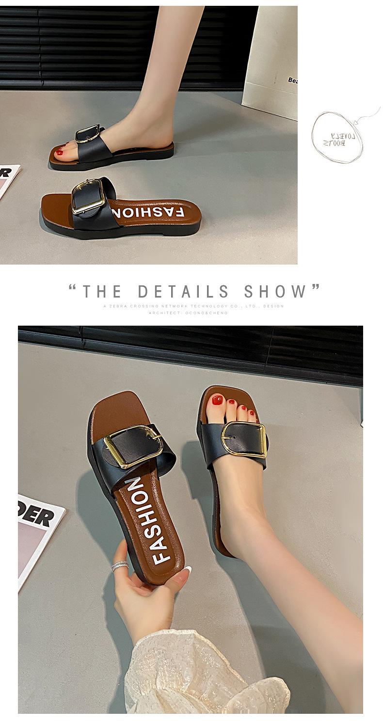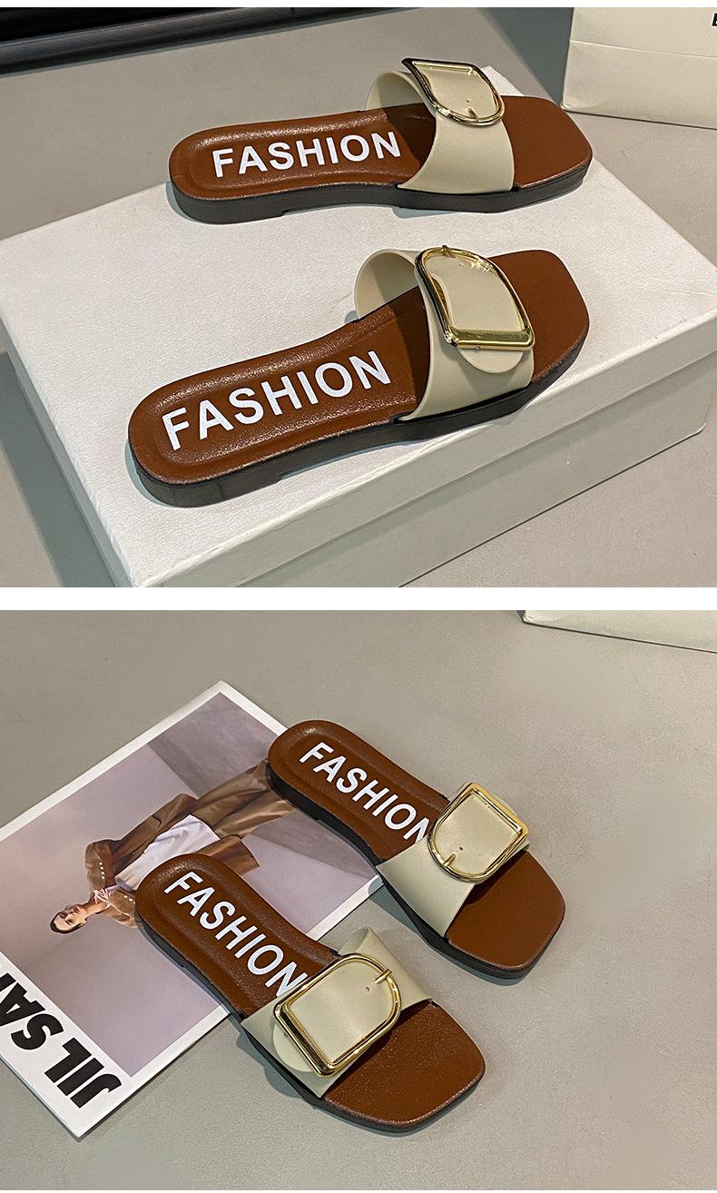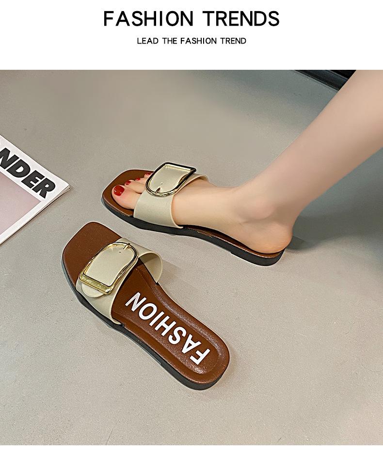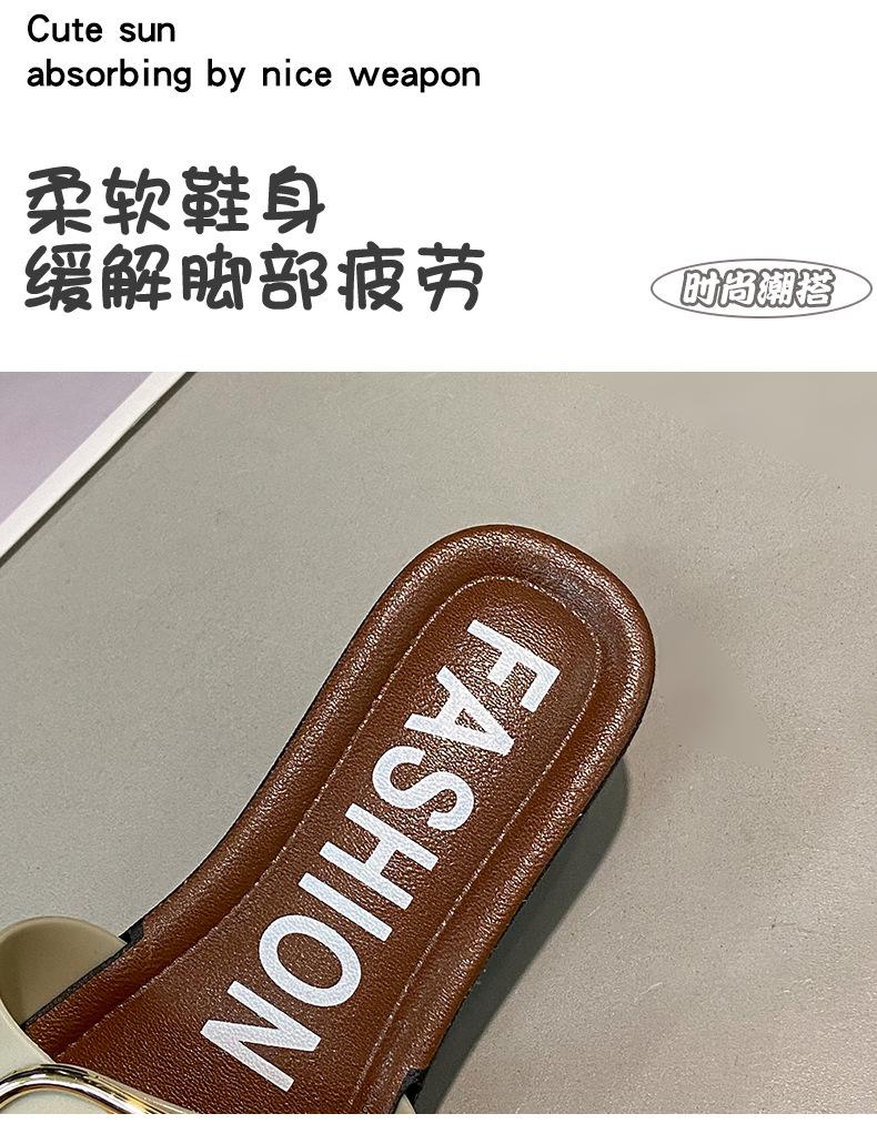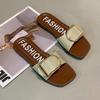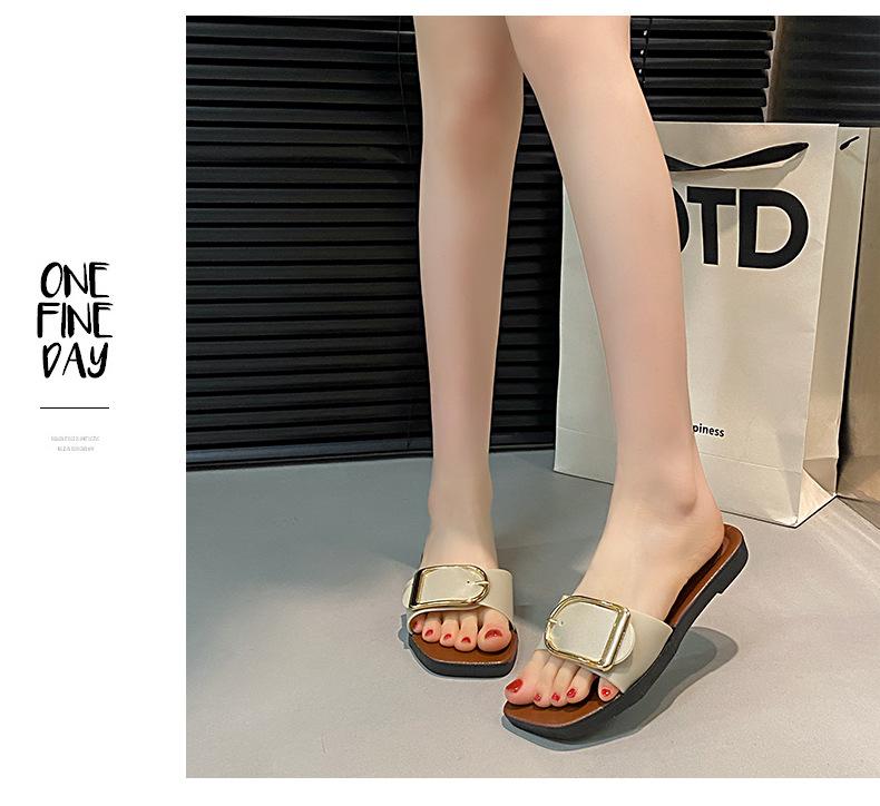 Sandalias planas con botones en forma de D para mujer, estilo francés, antideslizantes, para playa, para verano