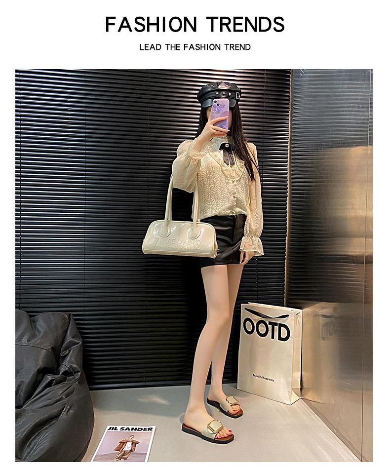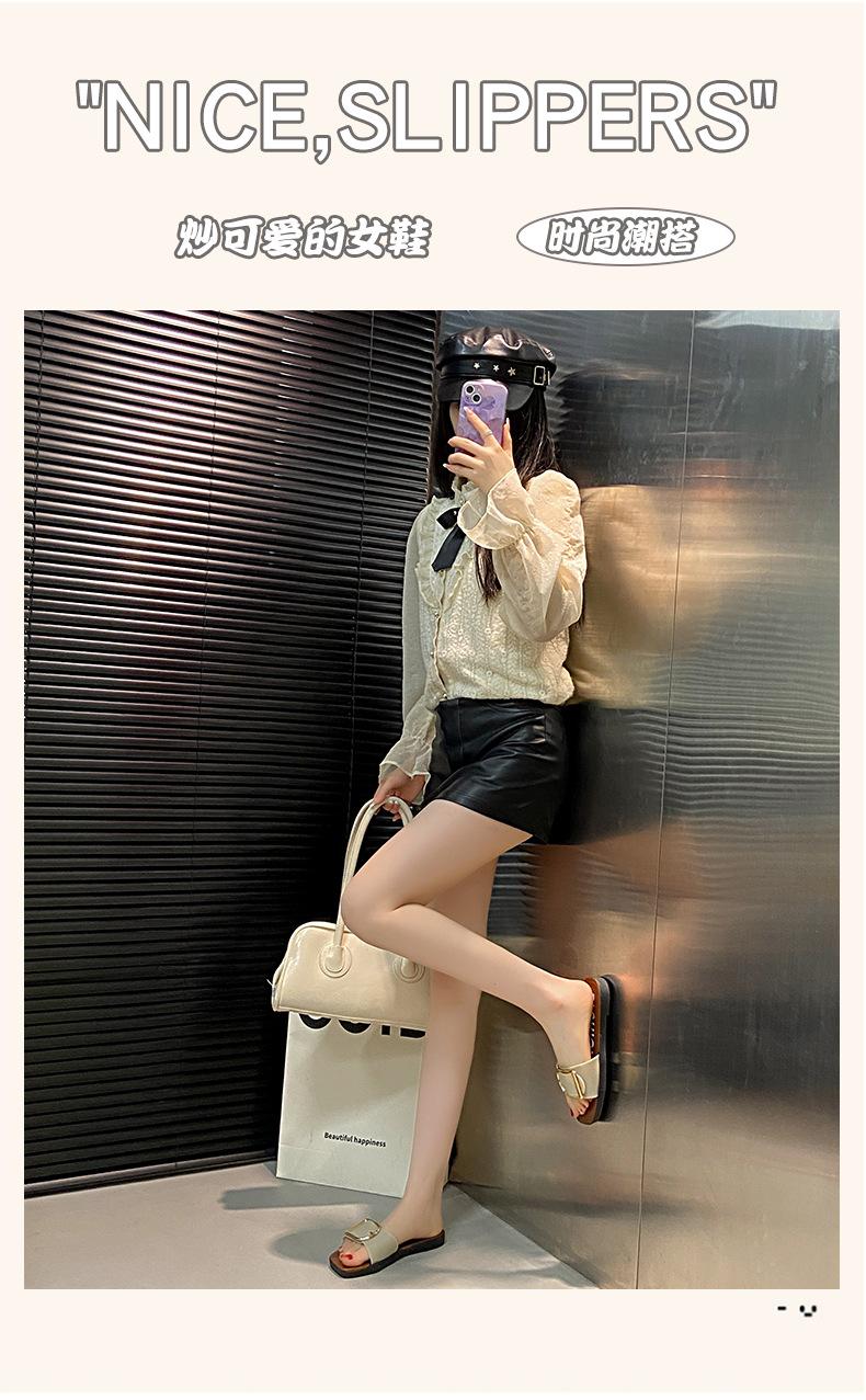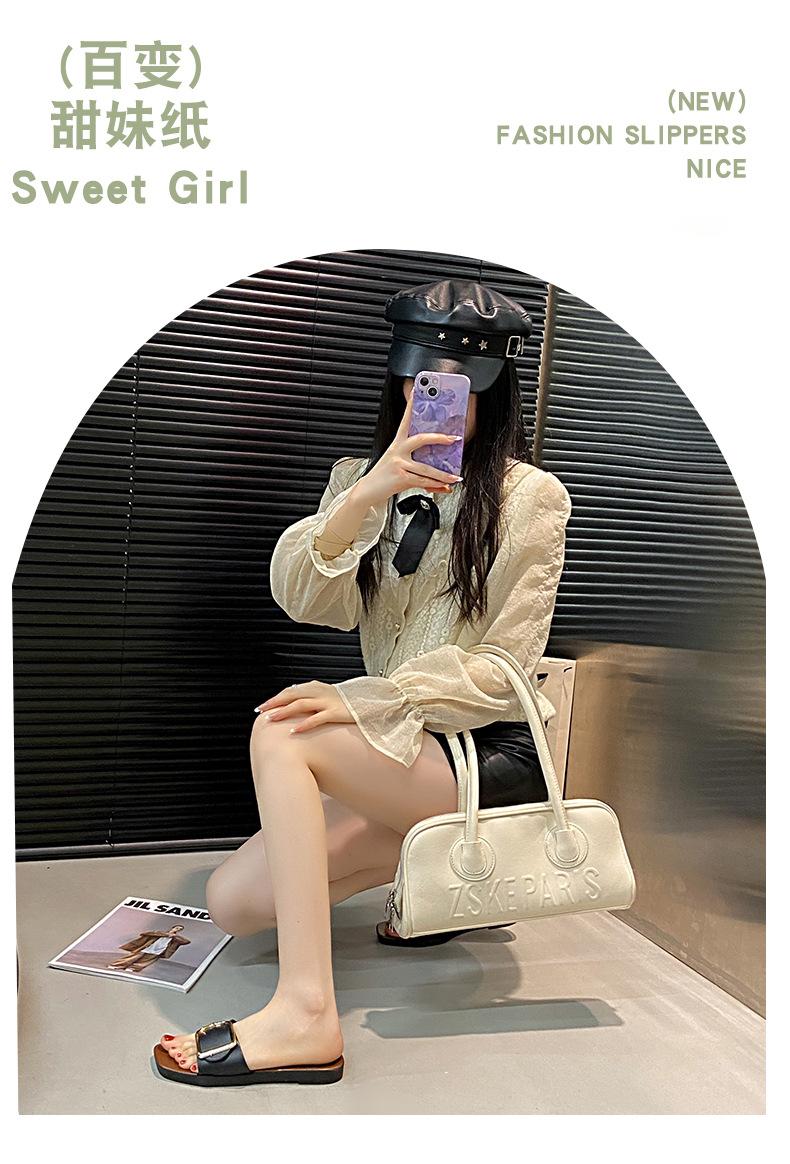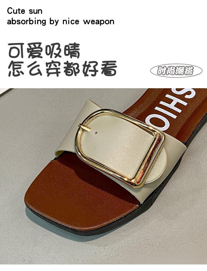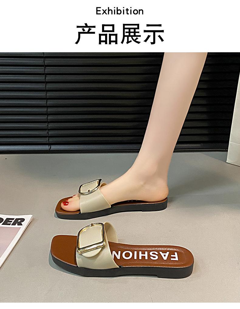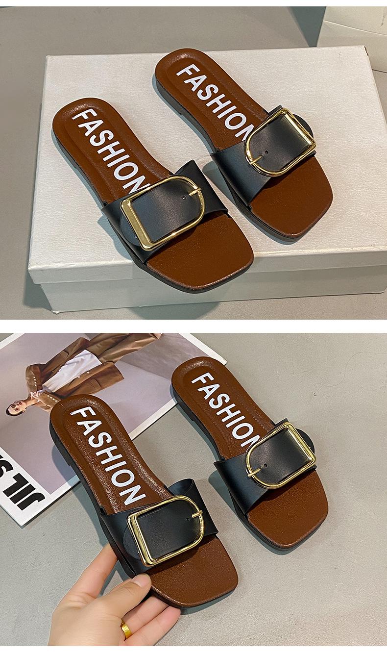 Sandalias planas con botones en forma de D para mujer, estilo francés, antideslizantes, para playa, para verano