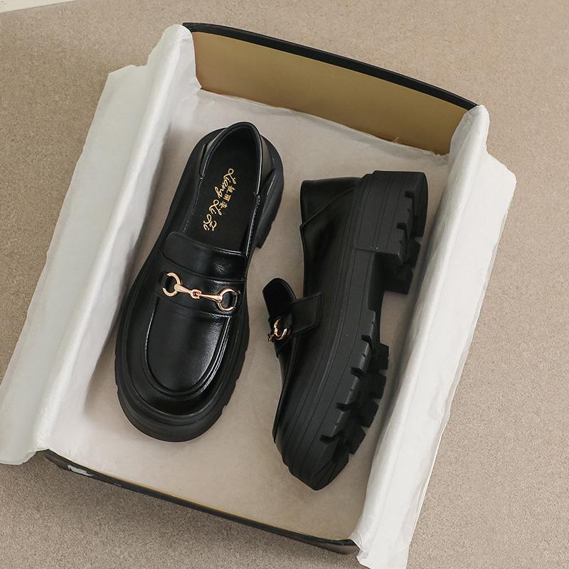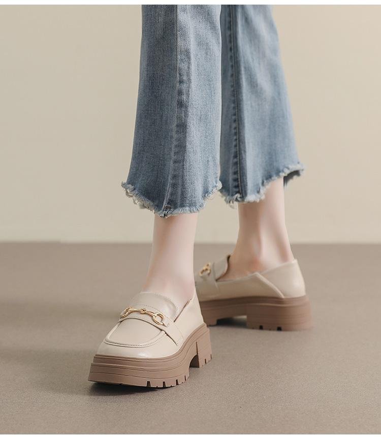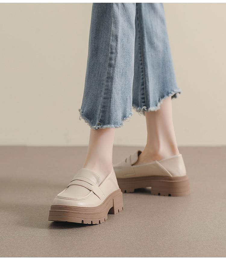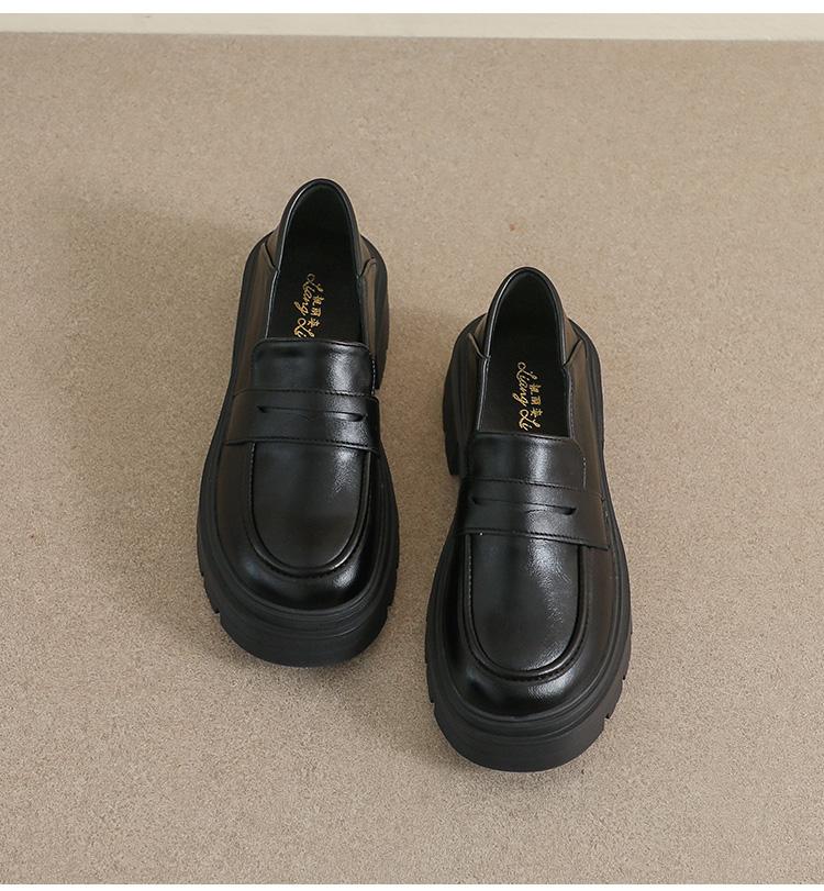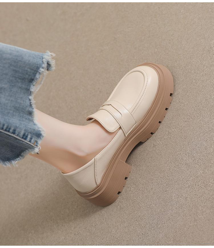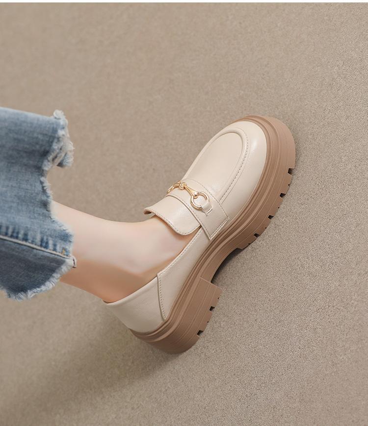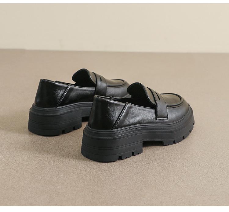 Mocasines de Plataforma de Cuero Genuino para Mujer Primavera y Otoño 2025 Nuevos Zapatos Británicos Retro de una Sola Capa Pequeños Versátiles Aumentadores de Altura Zapatos de Cuero Pequeños