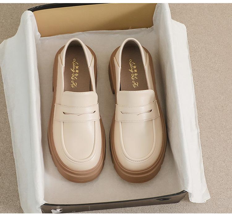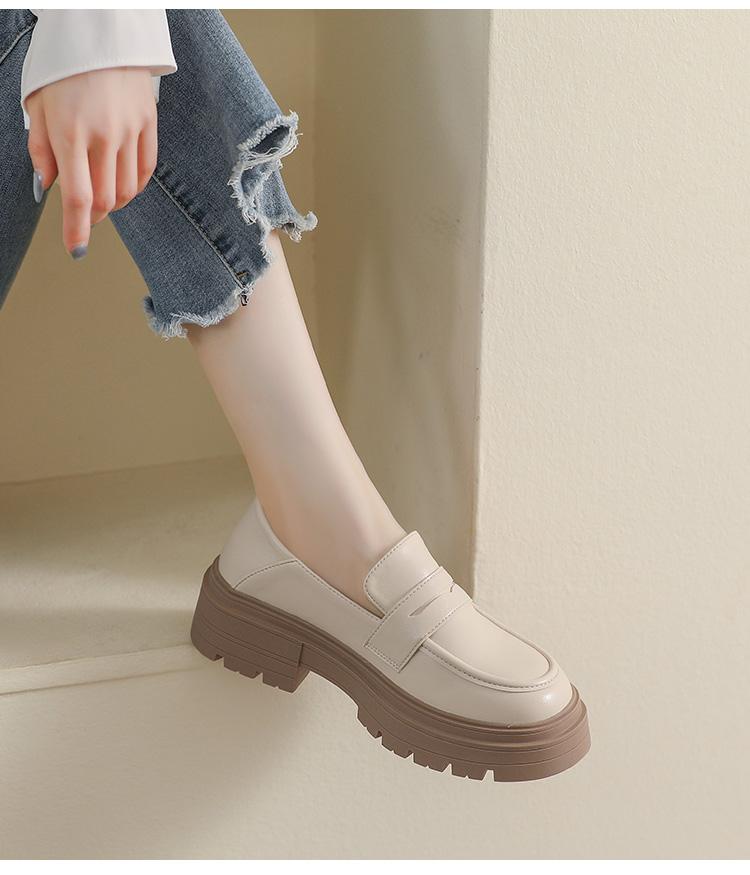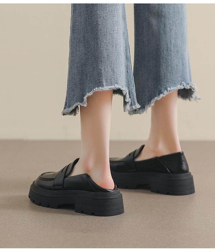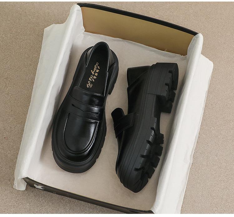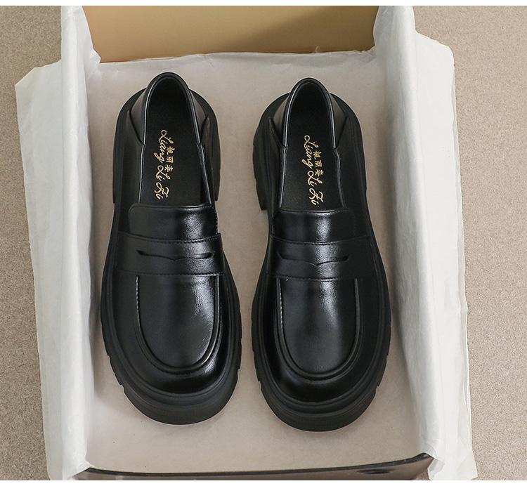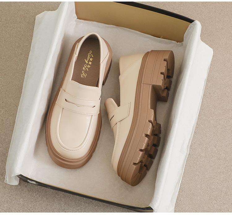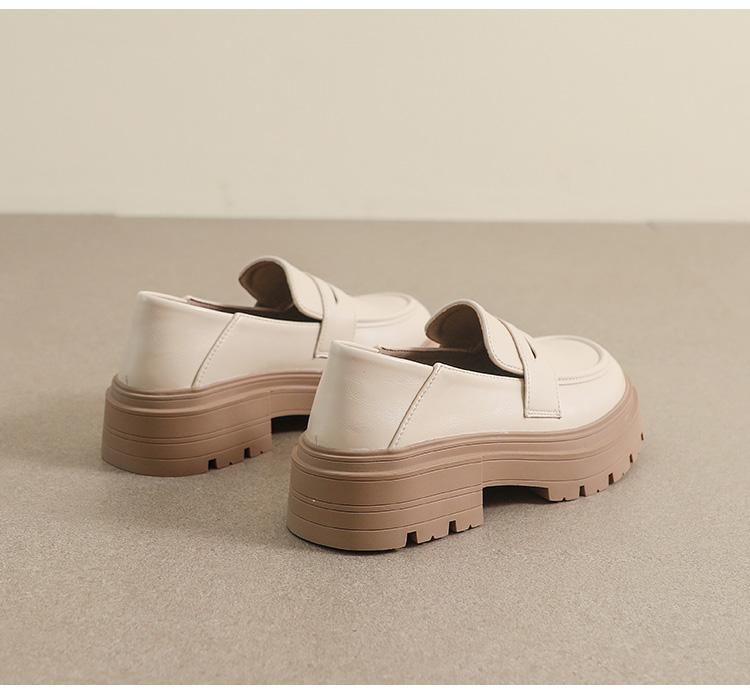 Mocasines de Plataforma de Cuero Genuino para Mujer Primavera y Otoño 2025 Nuevos Zapatos Británicos Retro de una Sola Capa Pequeños Versátiles Aumentadores de Altura Zapatos de Cuero Pequeños