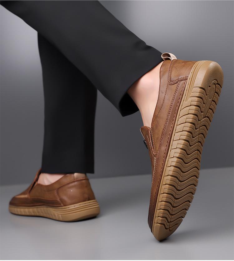 Zapatos de hombre transfronterizos 2025, nuevos zapatos casuales de cuero para hombre, suela suave, superficie suave, modernos, sin cordones, ligeros y cómodos para conducir.
