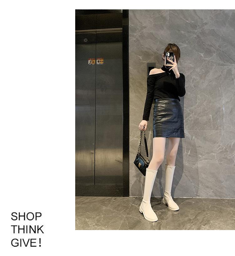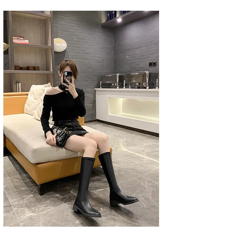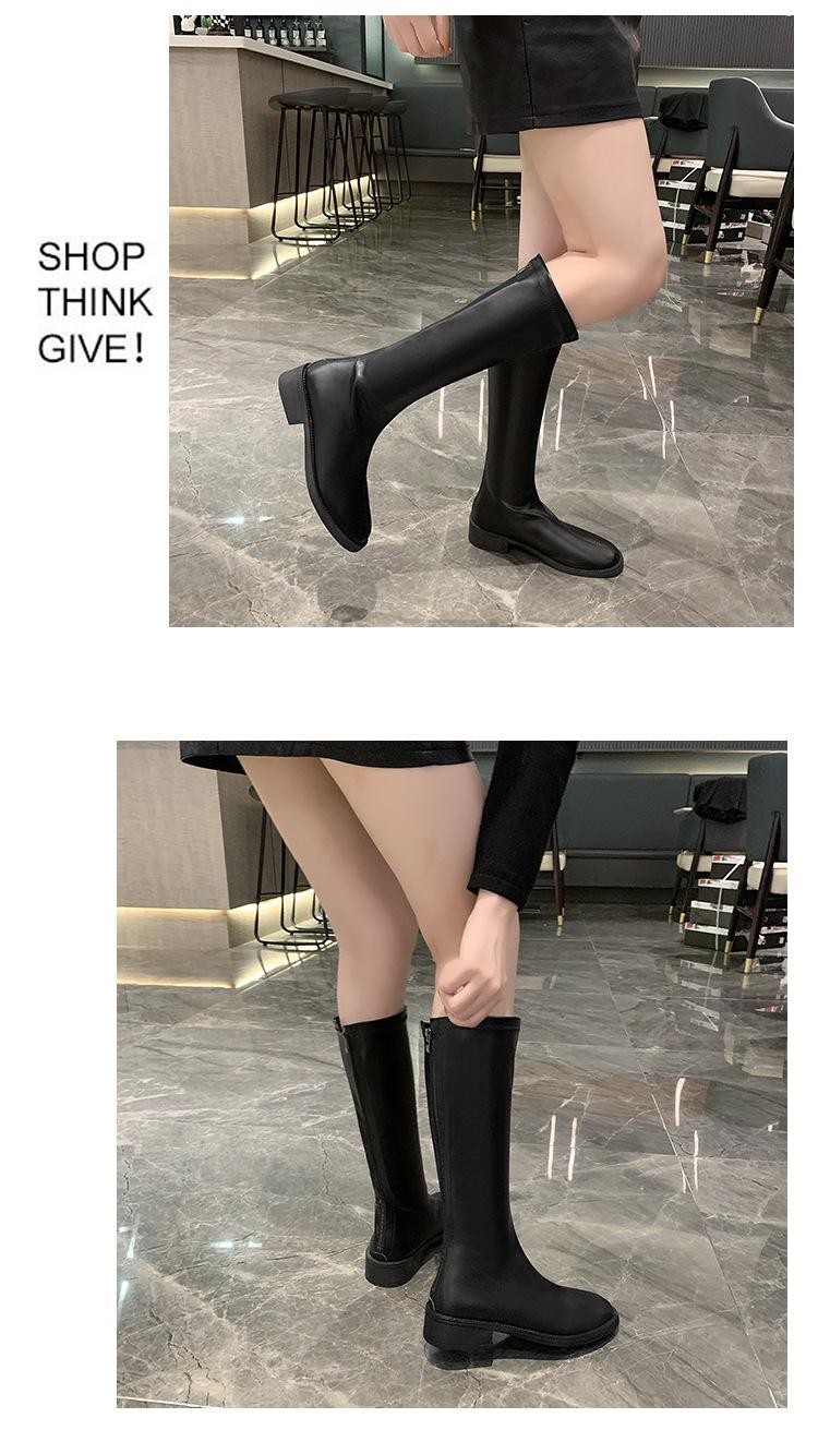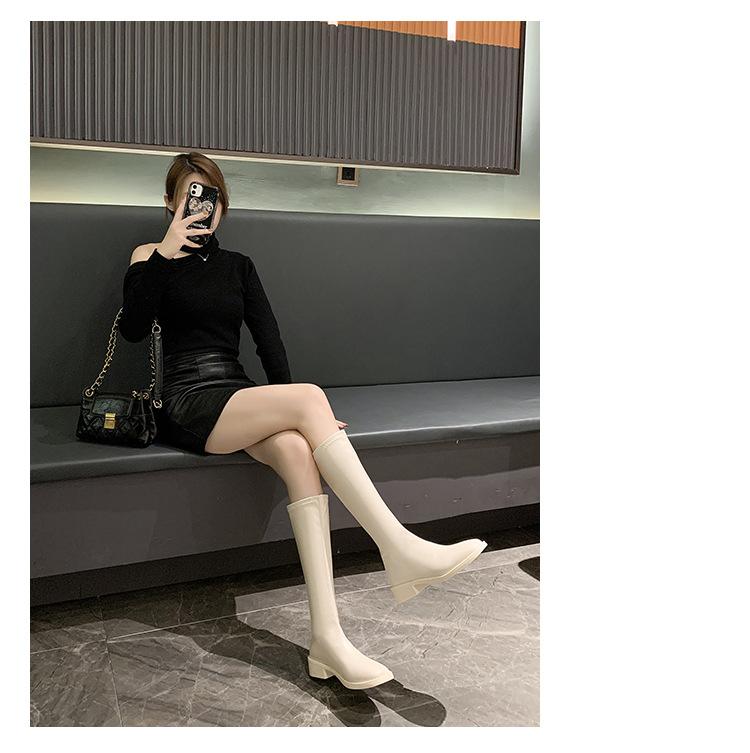 Talla grande comercio exterior botas altas para mujer otoño e invierno nuevo tacón grueso talla 42 botas de caballero adelgazantes coreanas elásticas delgadas para mujer