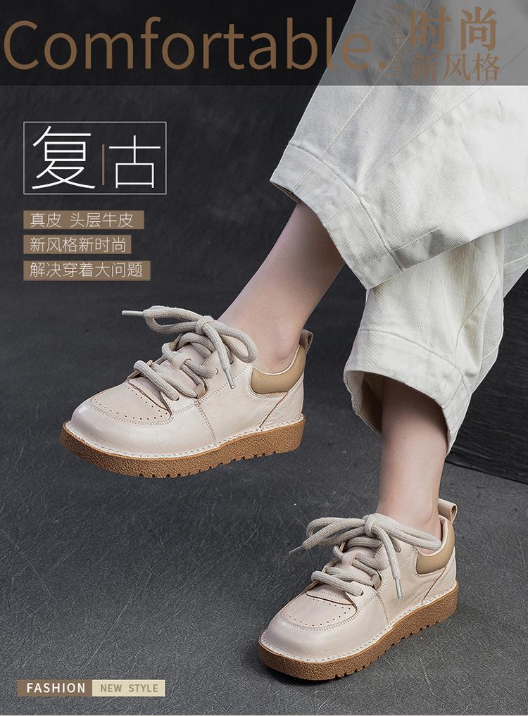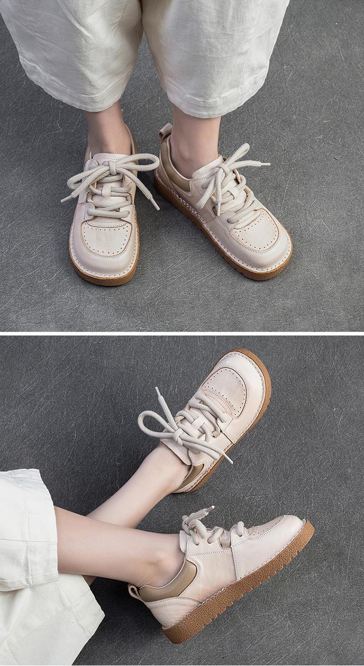Shanghai Jiejie 2025 Primavera y Verano Nuevos Zapatos de Entrenamiento Alemanes Cómodos y a la Moda con Cordones Delanteros Zapatos Casuales Retro Zapatos de Mujer para Ir al Trabajo