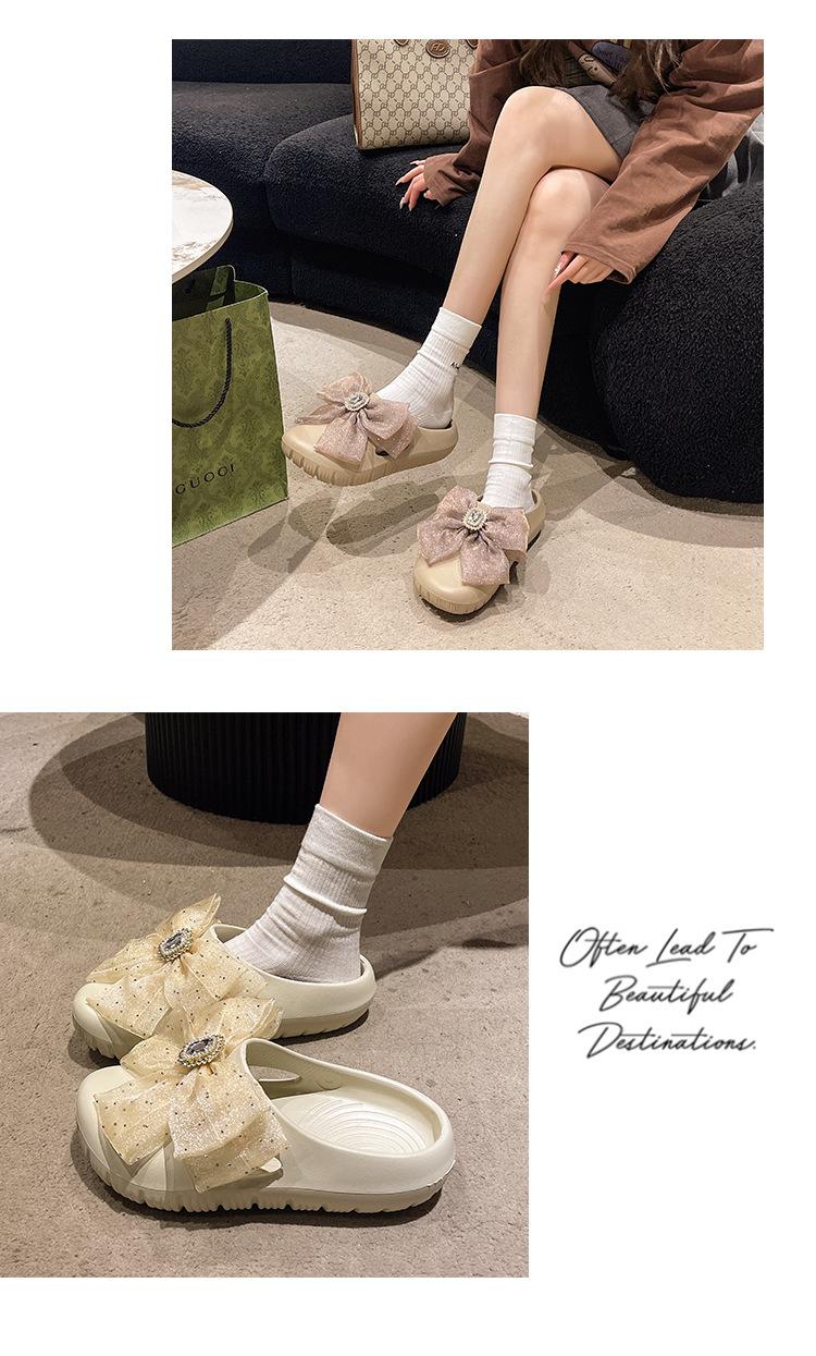 2025 Nuevas Pantuflas EVA Baotou para Mujer Cómodas Lazo Dung para Exterior Sandalias Planas y Pantuflas Agujero