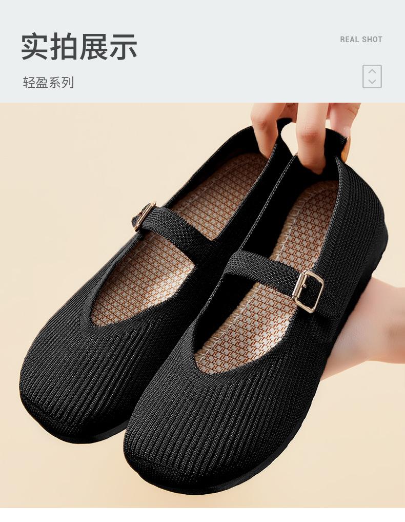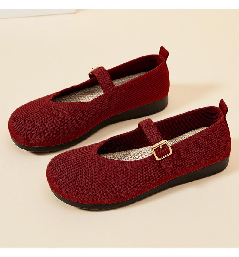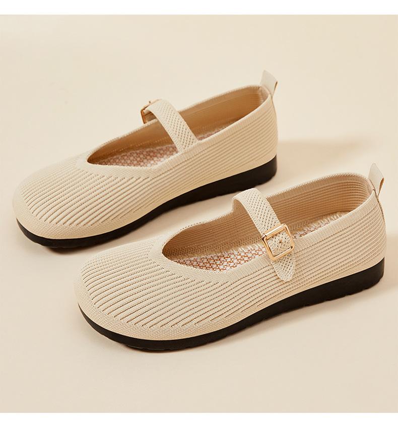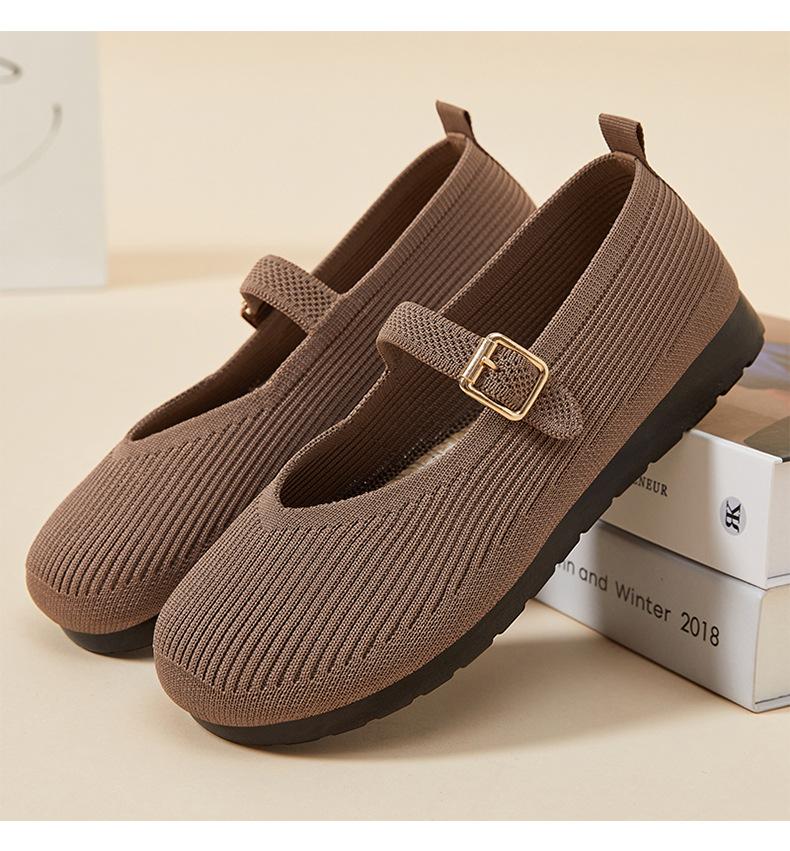 Zapatos Casuales de Verano para Mujer, Zapatos de Poliuretano de Boca Baja para Mujer, Punta Redonda Suela Suave Slip-On Zapatos con Hebilla, Zapatos de Mamá