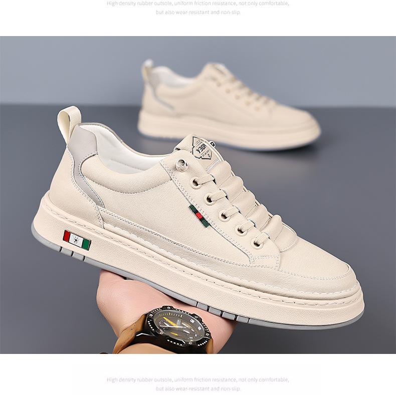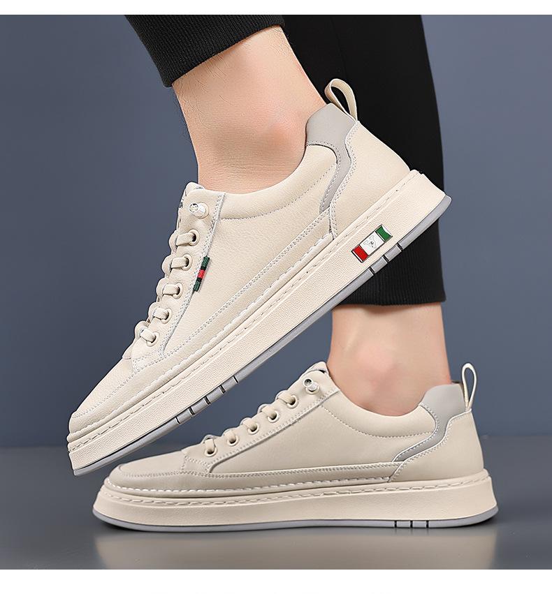Zapatos Casuales Blancos de Primavera 2025 para Hombre, Zapatos de Tablero de Moda sin Cordones para Hombre, Zapatos de Cuero Blanco de Corte Bajo para Hombre