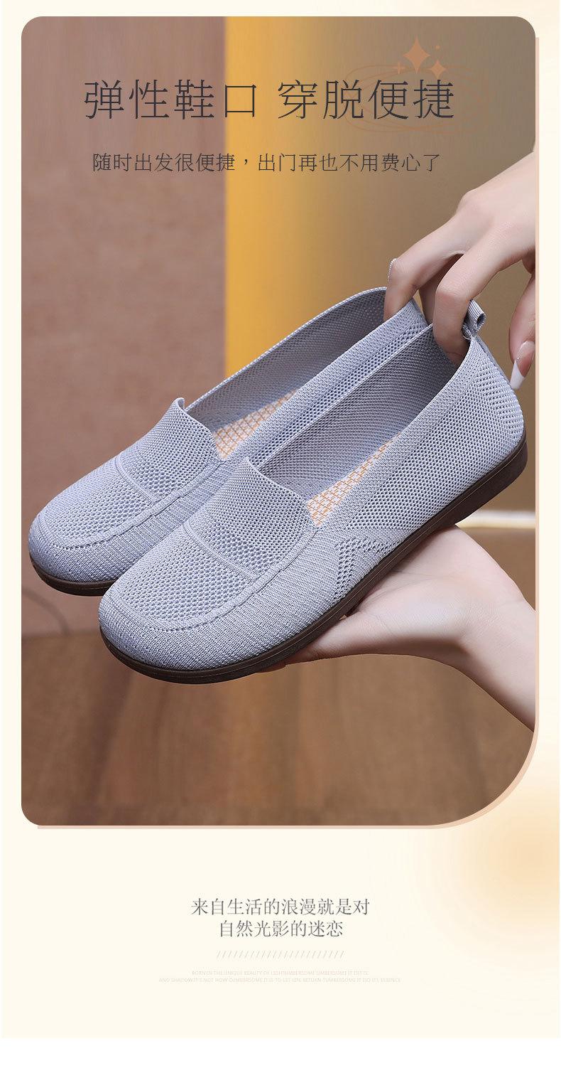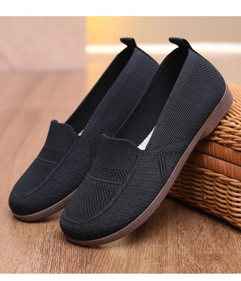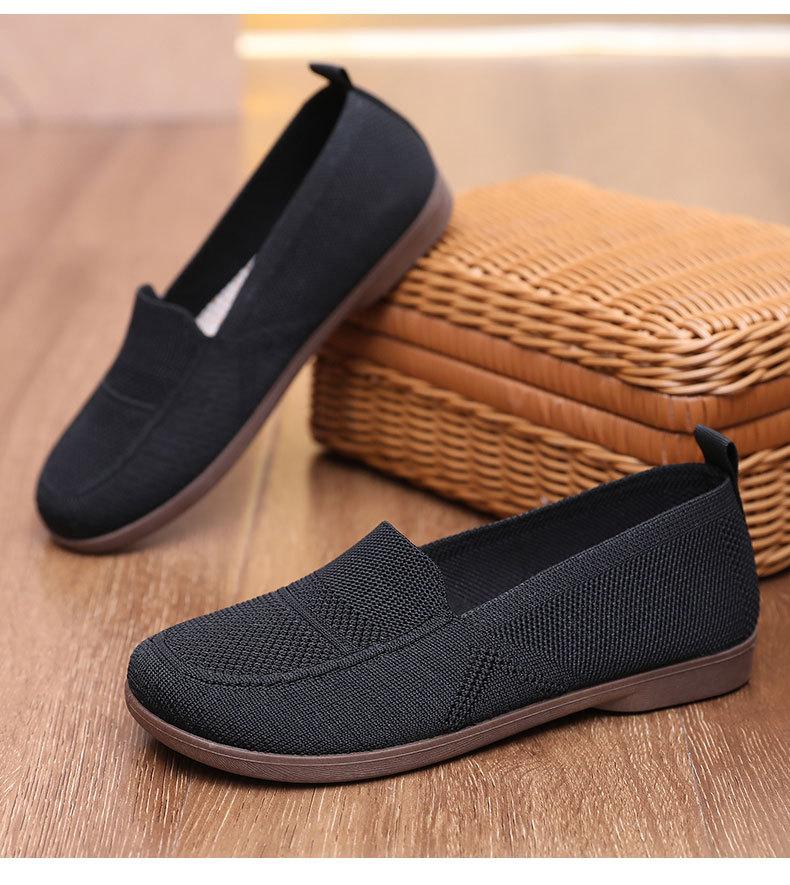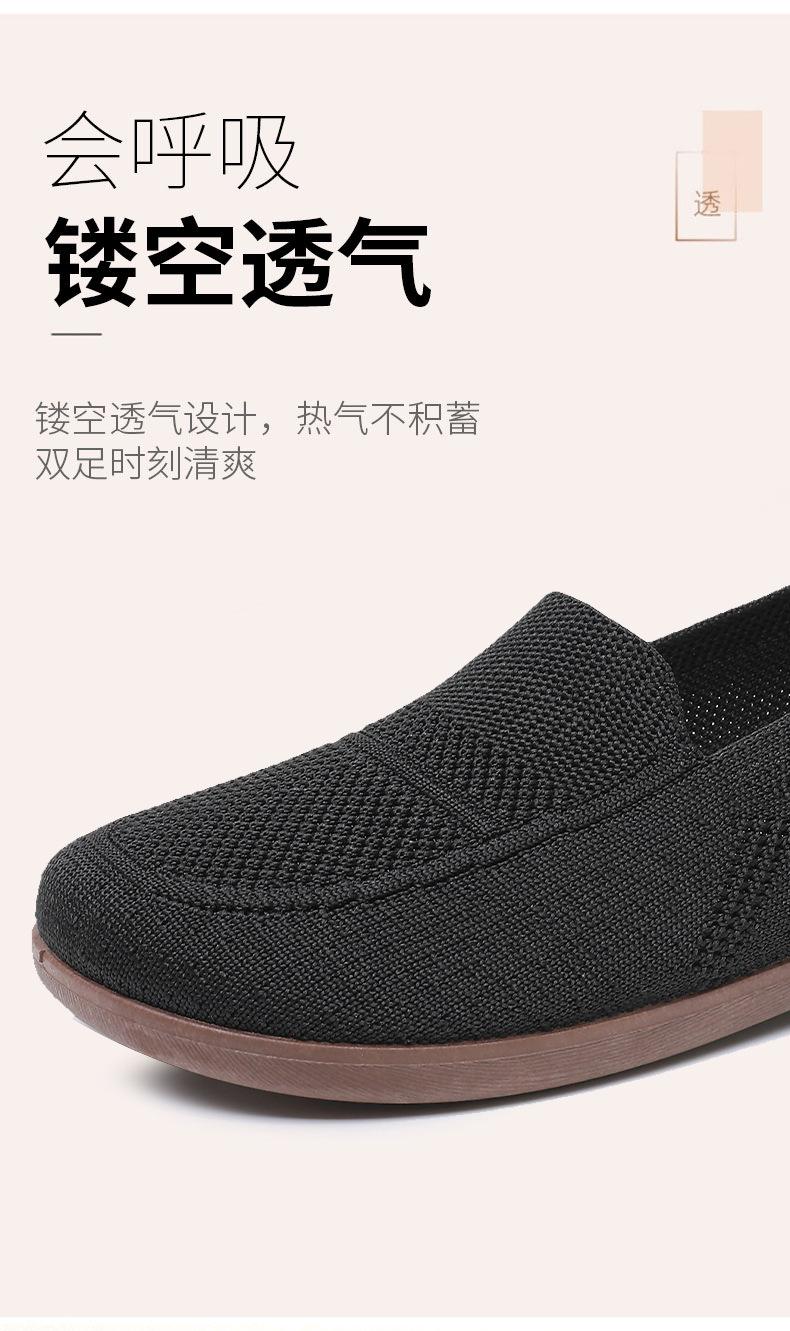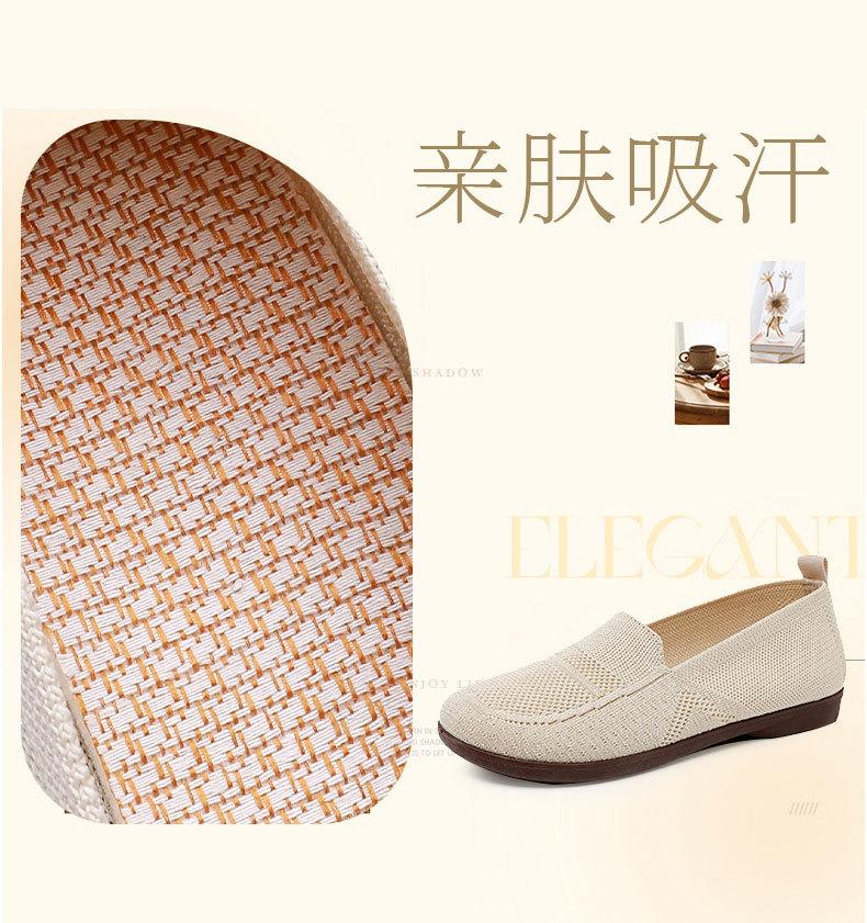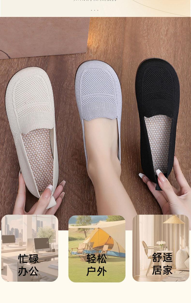 Primavera 2025 nuevo TUME transfronterizo para mediana edad y ancianos zapatos planos de un pie para madre de boca poco profunda zapatos de malla tejida voladora para mujer