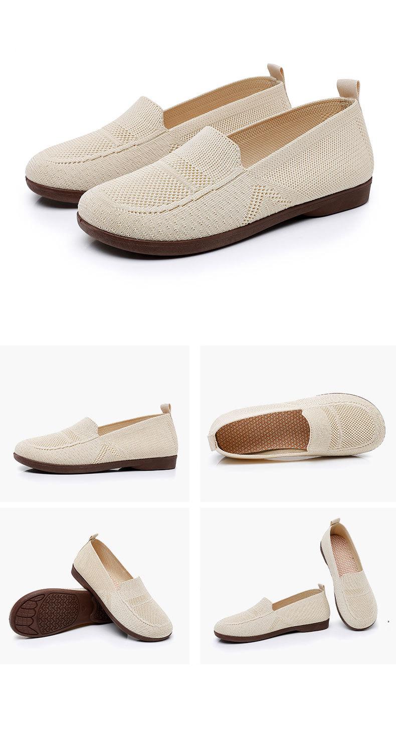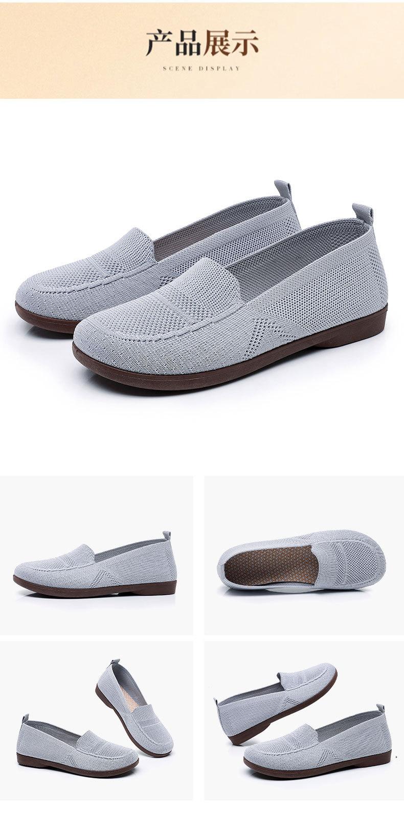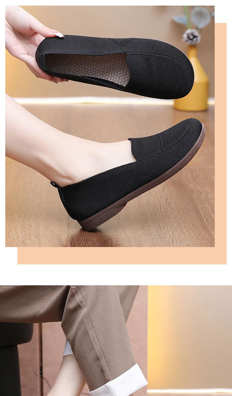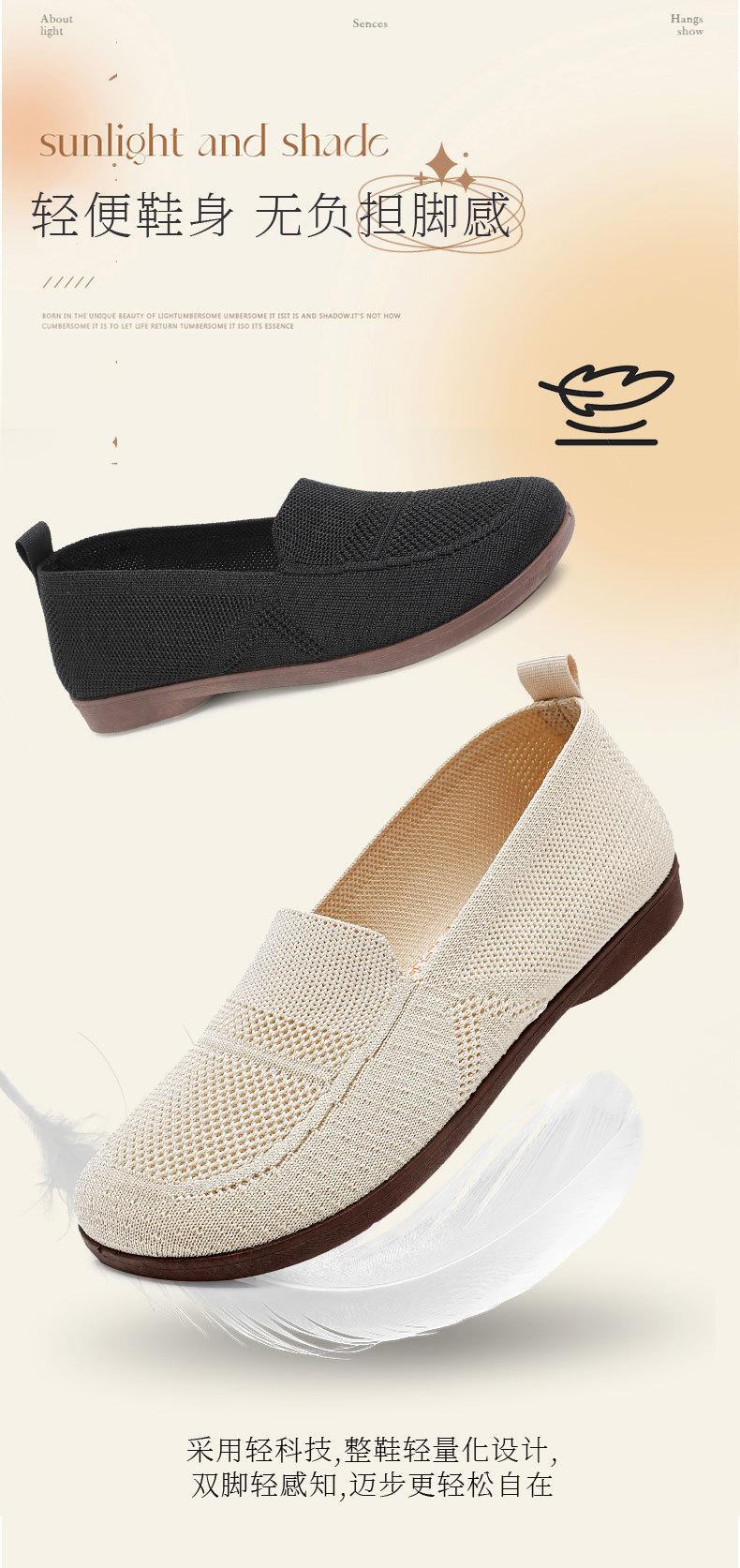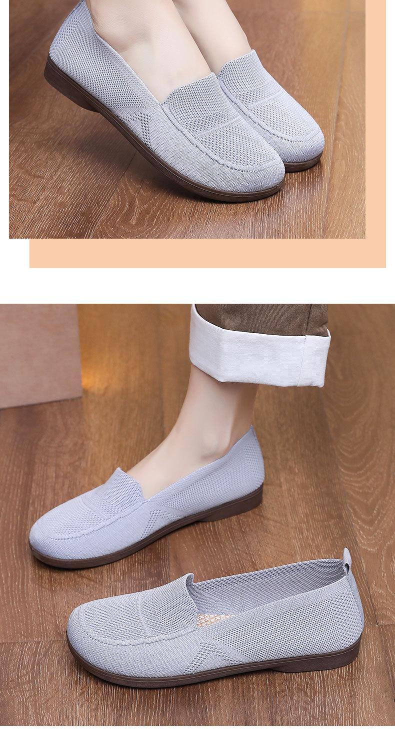 Primavera 2025 nuevo TUME transfronterizo para mediana edad y ancianos zapatos planos de un pie para madre de boca poco profunda zapatos de malla tejida voladora para mujer