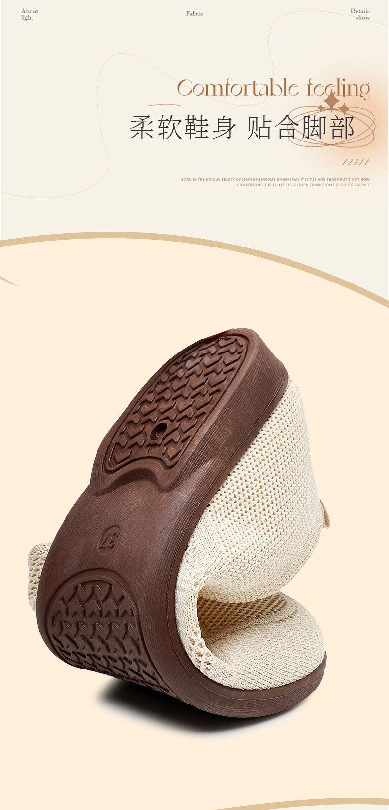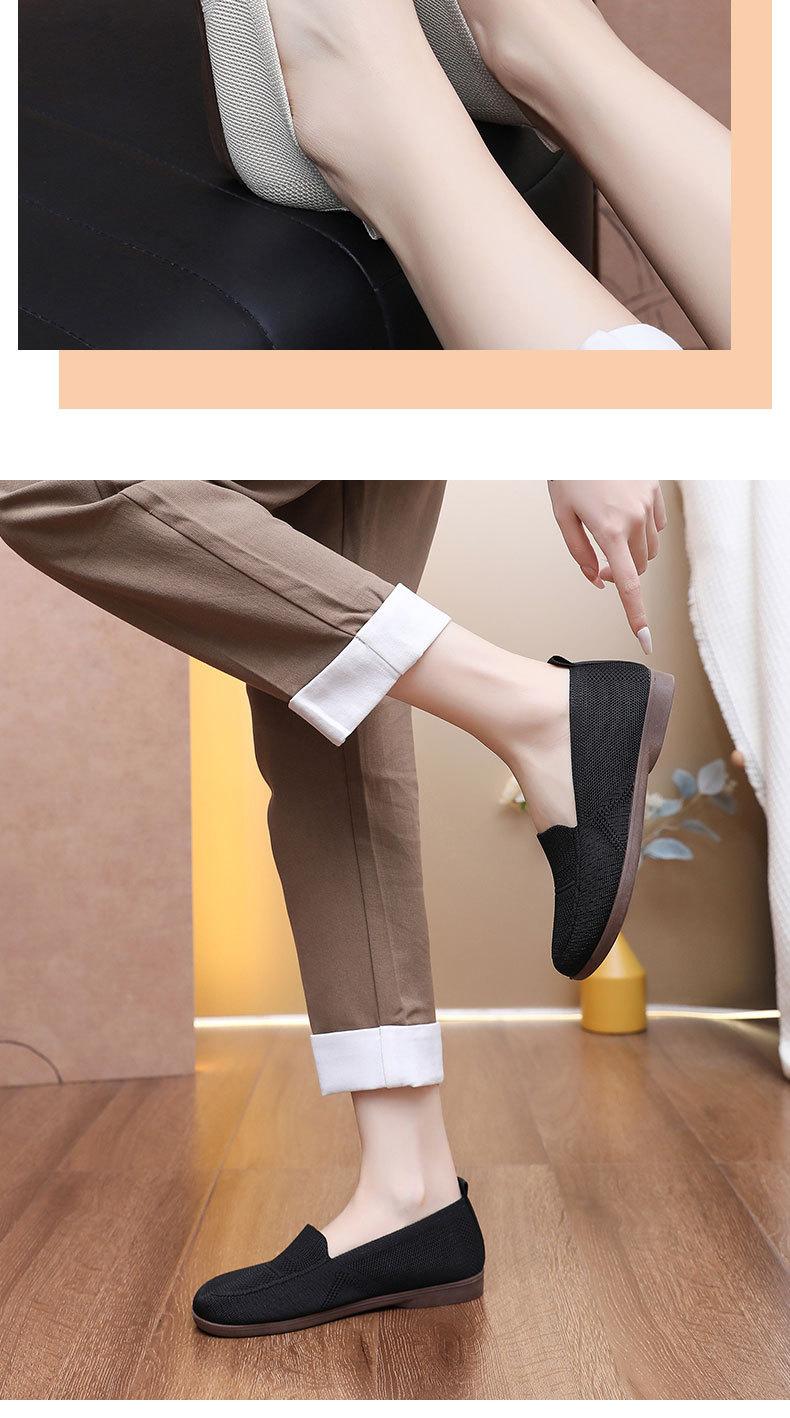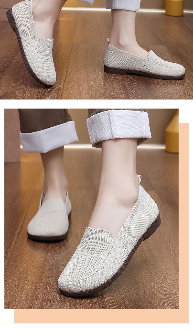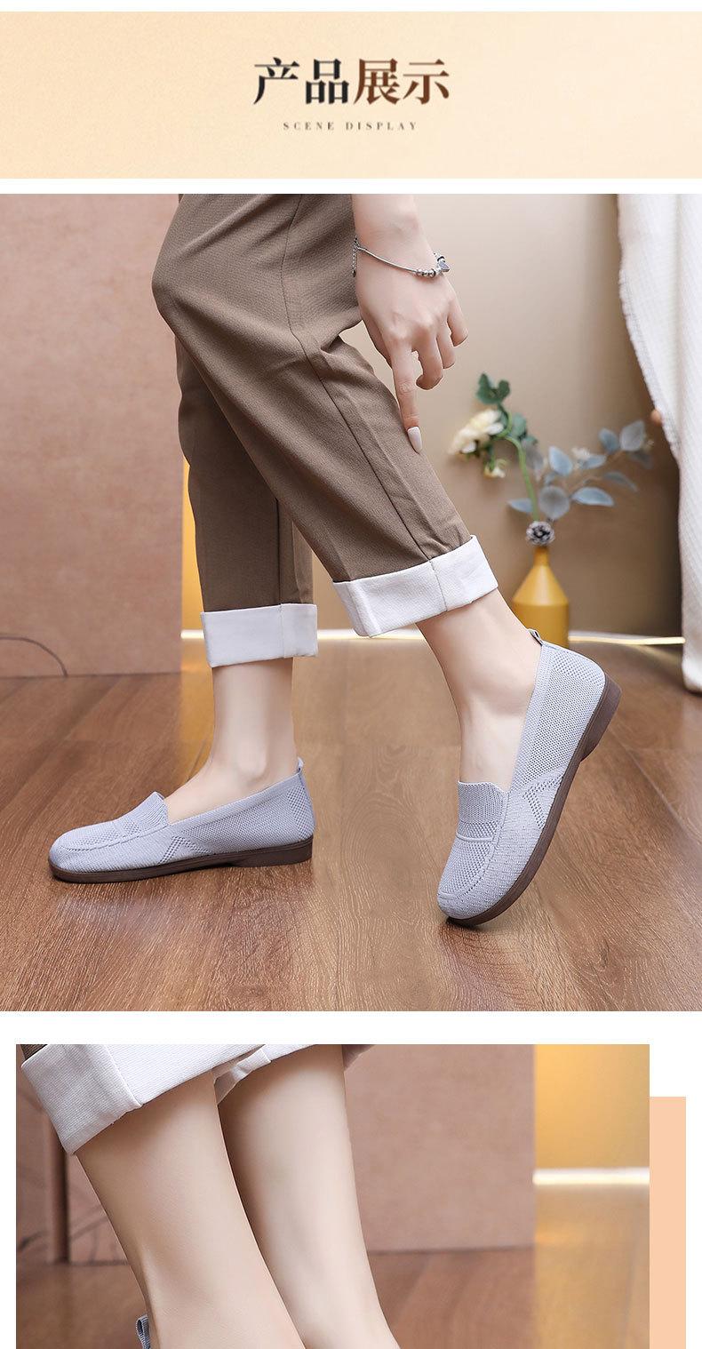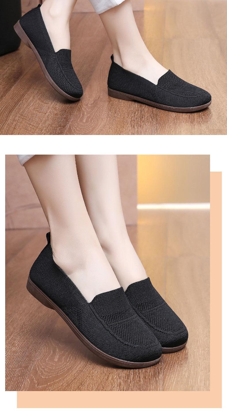 Primavera 2025 nuevo TUME transfronterizo para mediana edad y ancianos zapatos planos de un pie para madre de boca poco profunda zapatos de malla tejida voladora para mujer