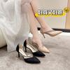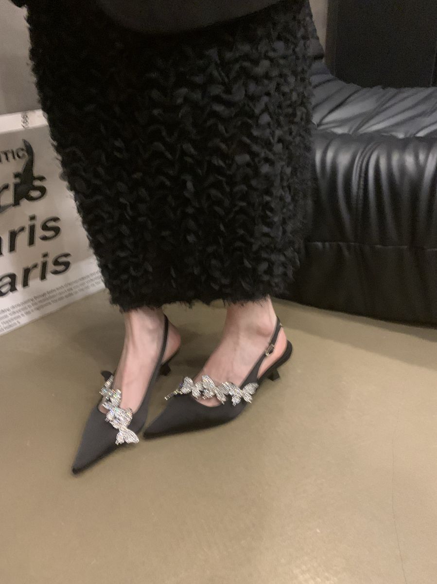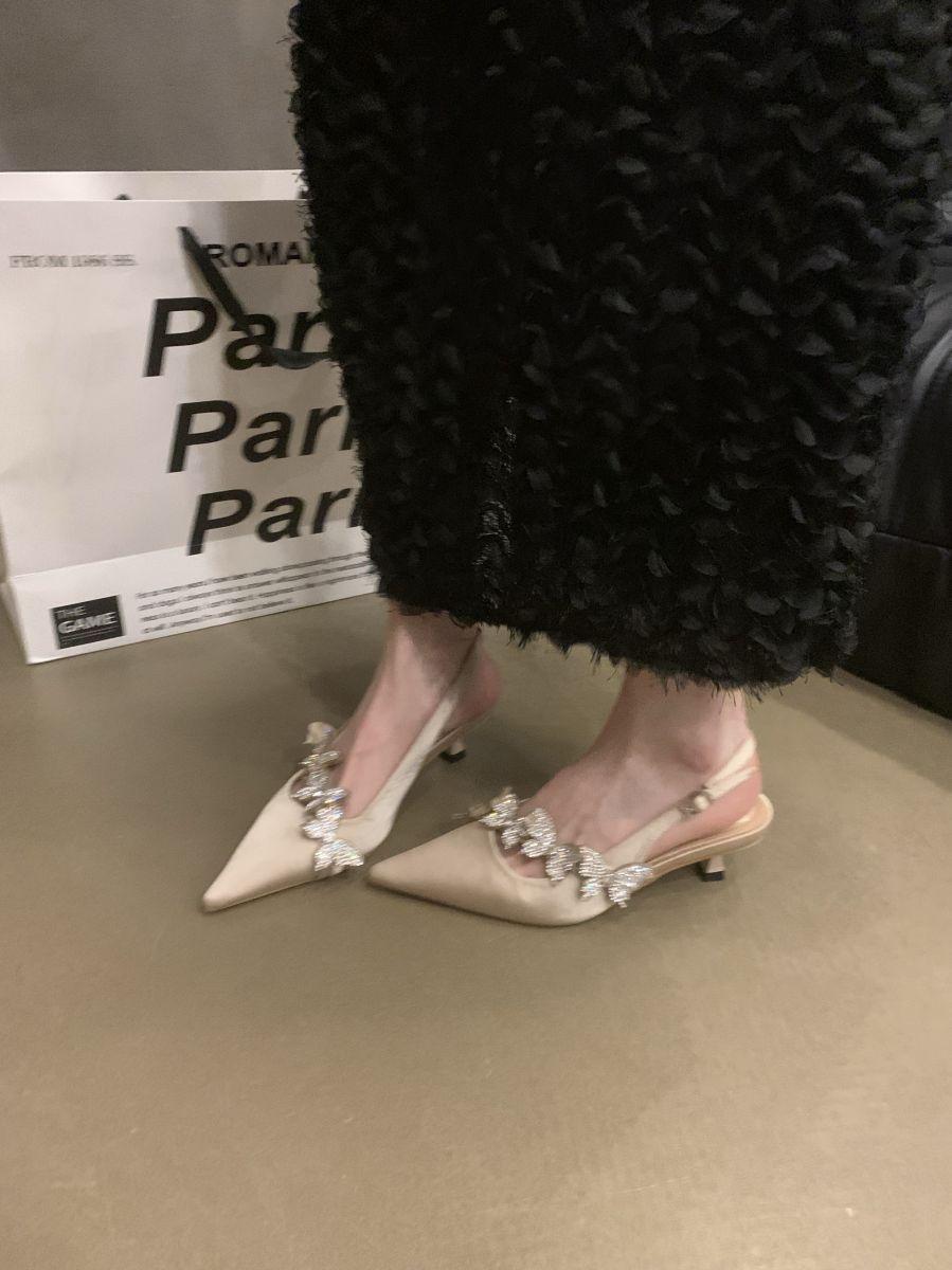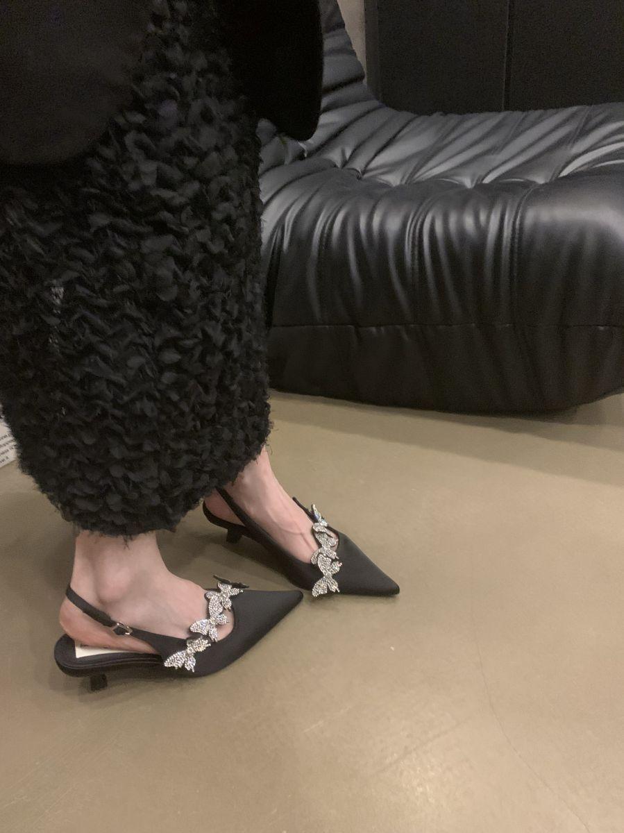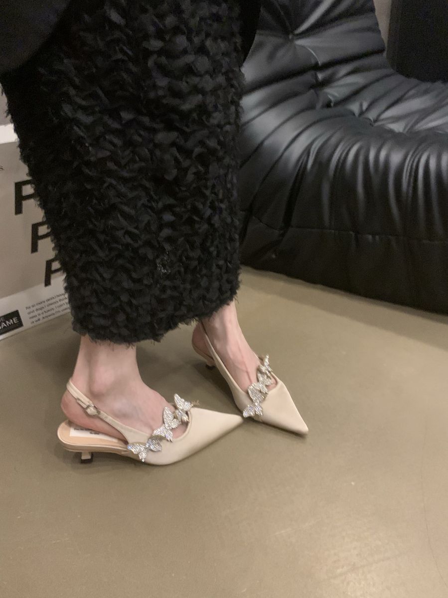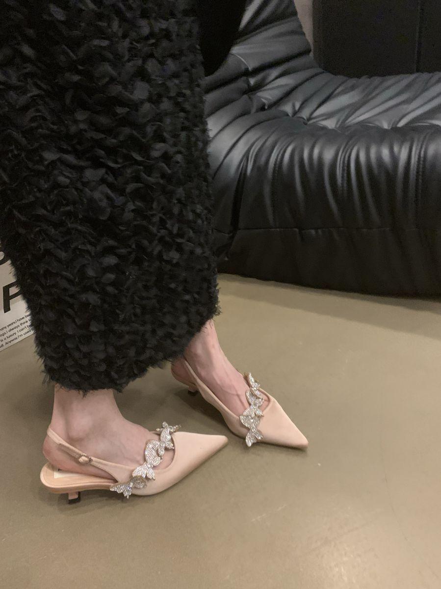 Sandalias de Punta con Pedrería de Lujo de Entrada Francesa para Mujer 2025 Primavera Nuevas Zapatos Elegantes Slim de Tacón Bajo