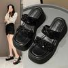 Sandalias de plataforma de una sola línea de moda para mujer, zapatos de playa antideslizantes, ropa de verano 2025