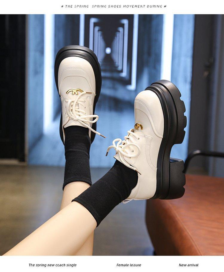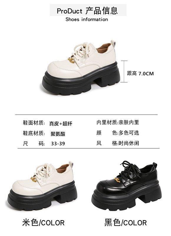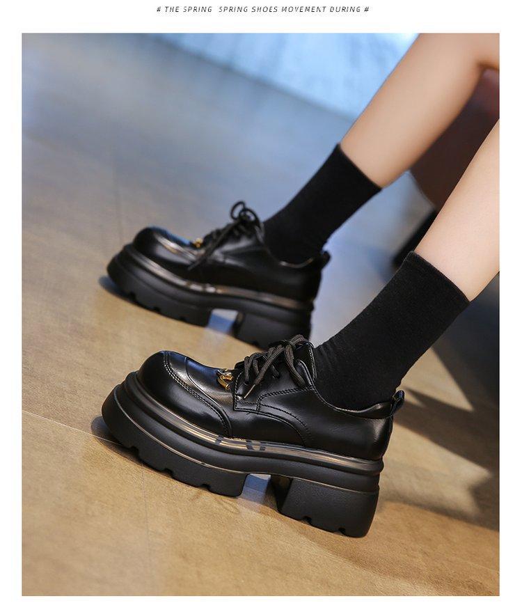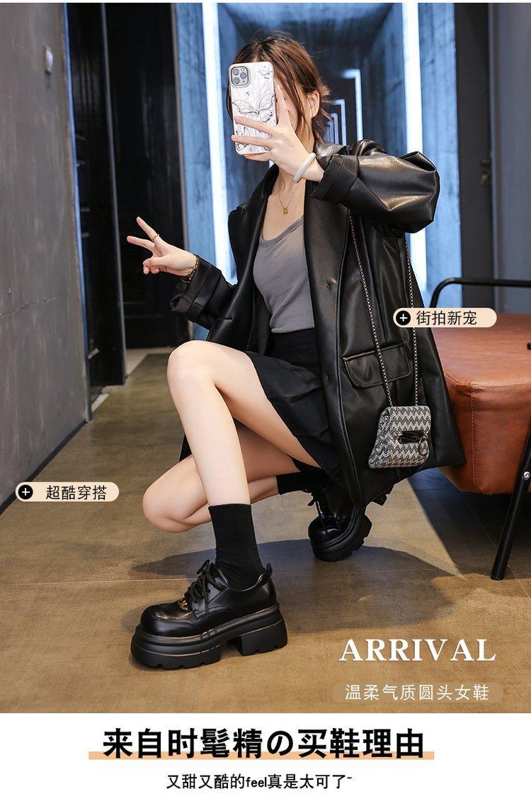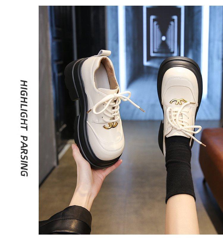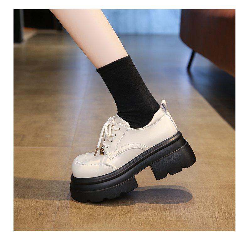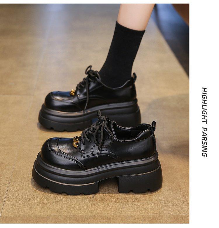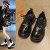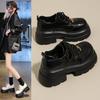 Zapatos de cuero pequeños con suela gruesa y realce para mujer, nuevos mocasines de estilo académico británico de primavera 2025, zapatos negros versátiles de una sola capa, talla pequeña