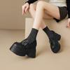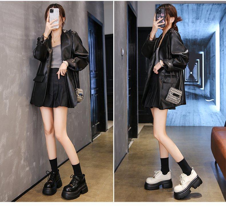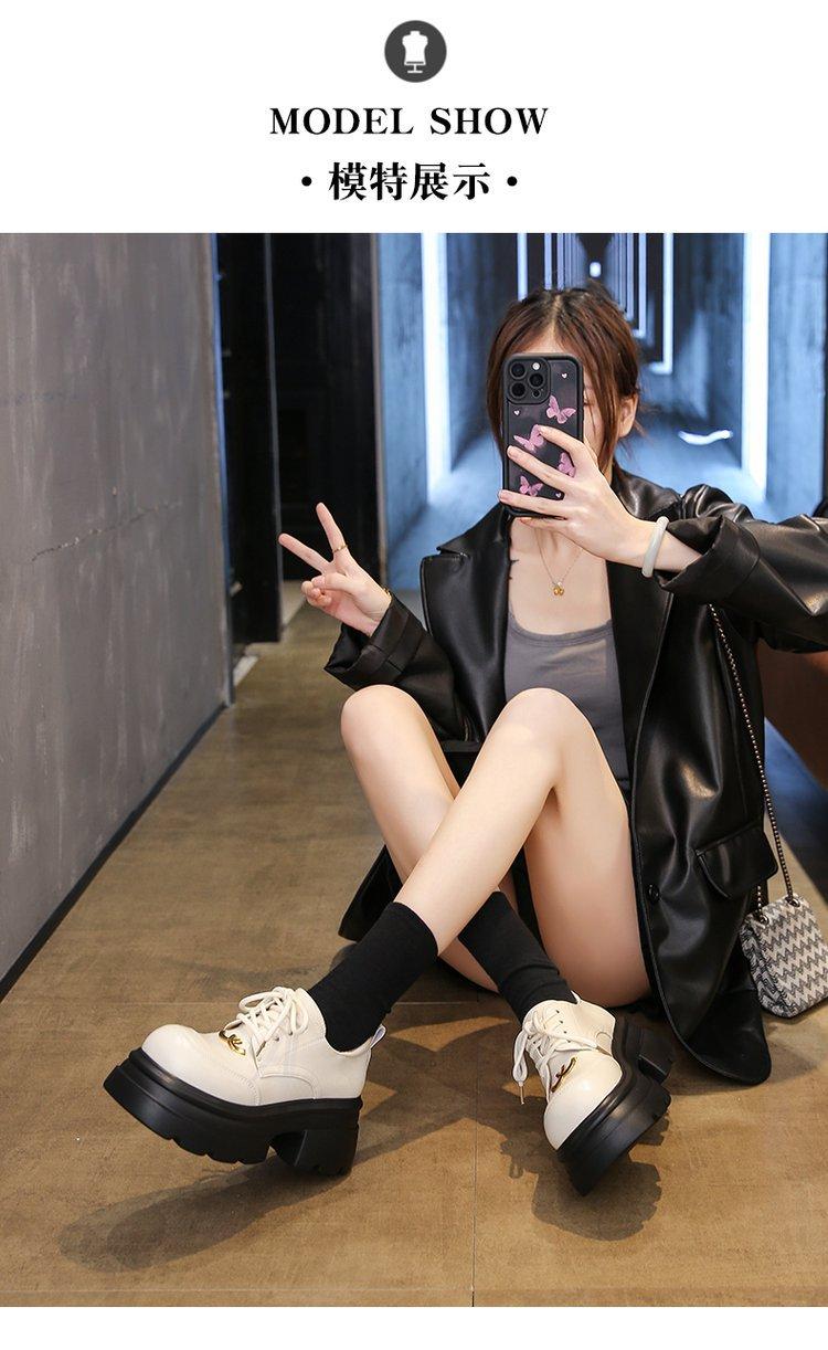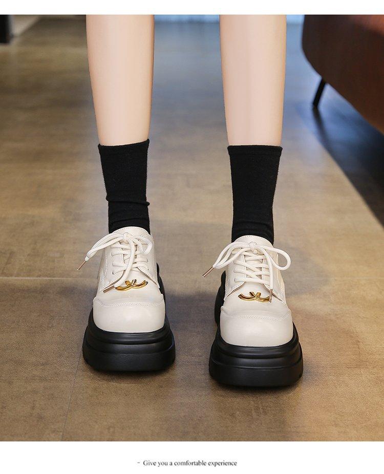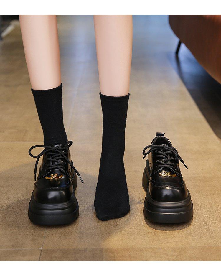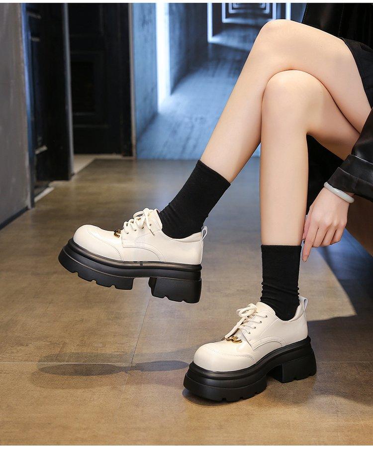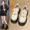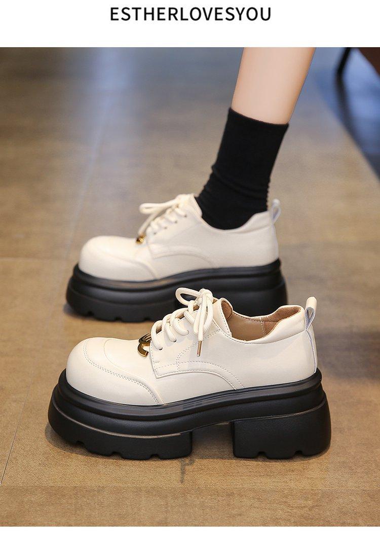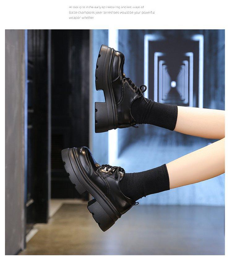 Zapatos de cuero pequeños con suela gruesa y realce para mujer, nuevos mocasines de estilo académico británico de primavera 2025, zapatos negros versátiles de una sola capa, talla pequeña