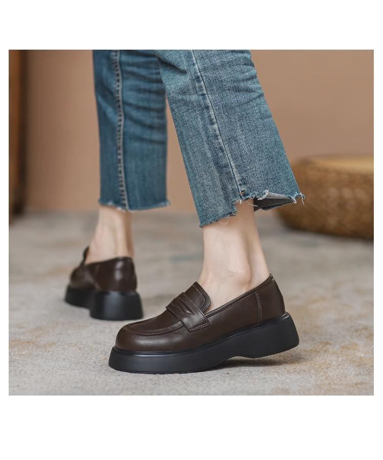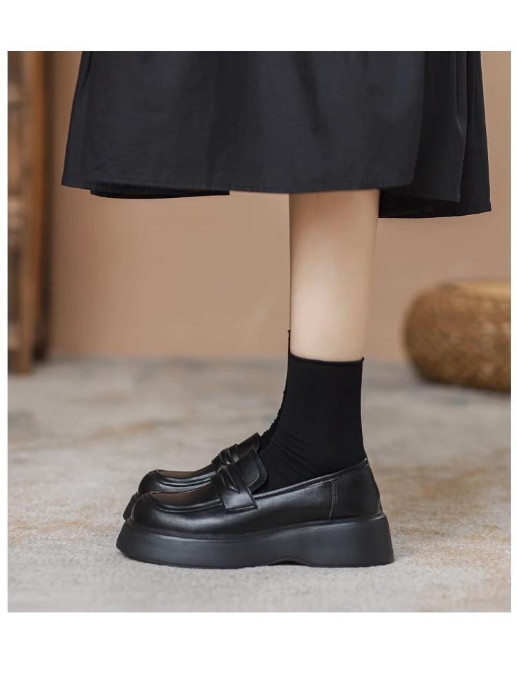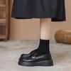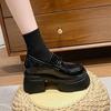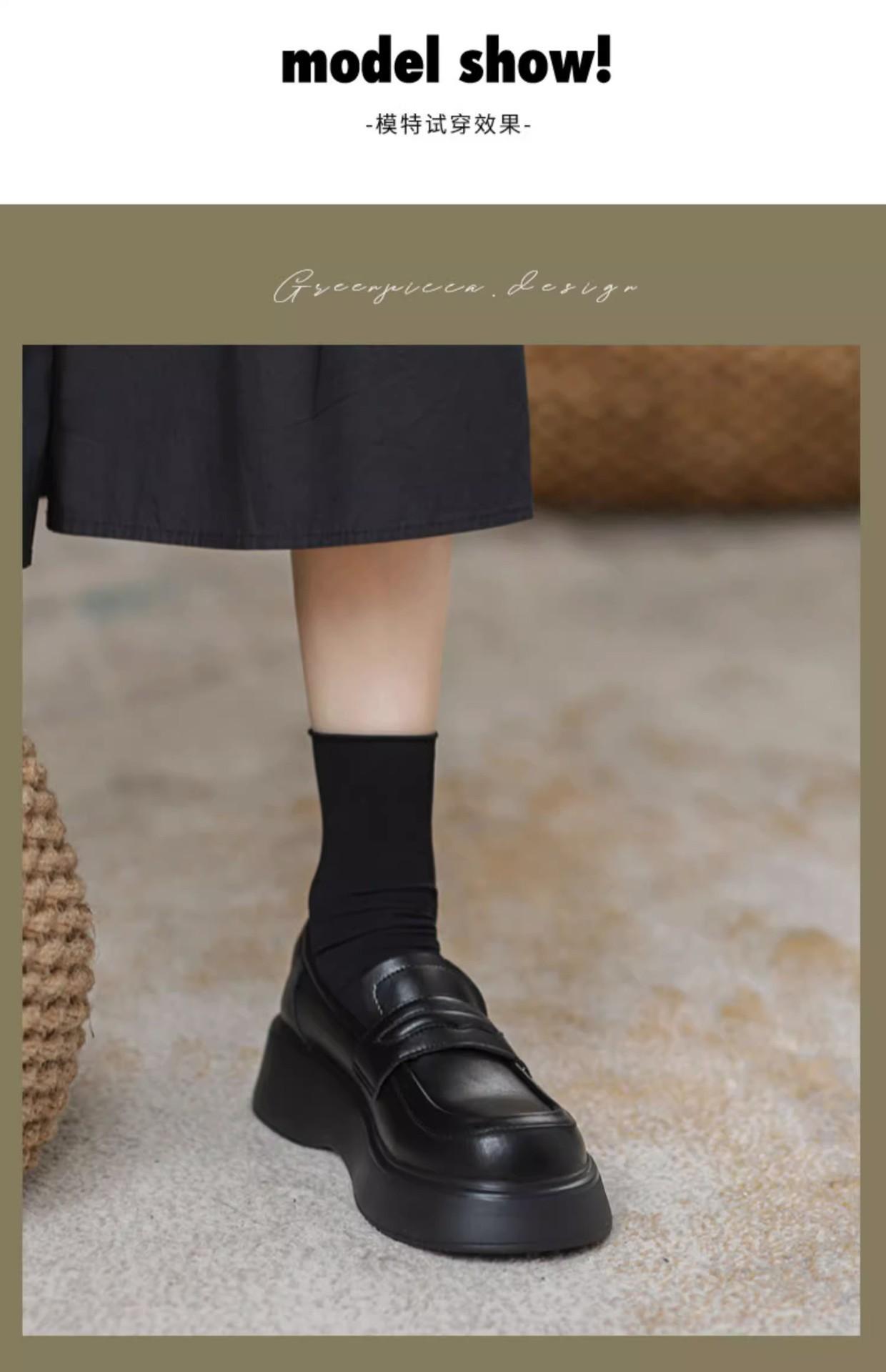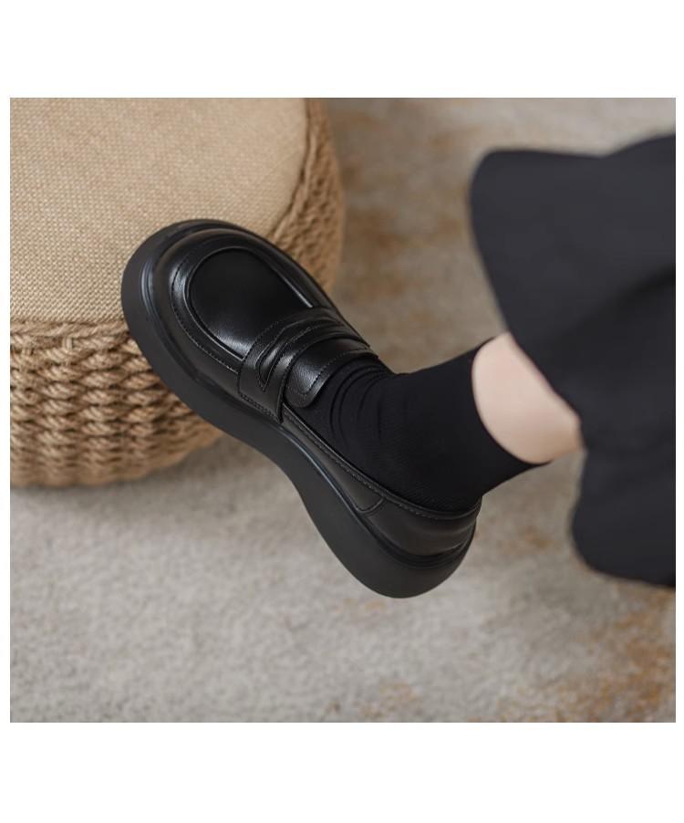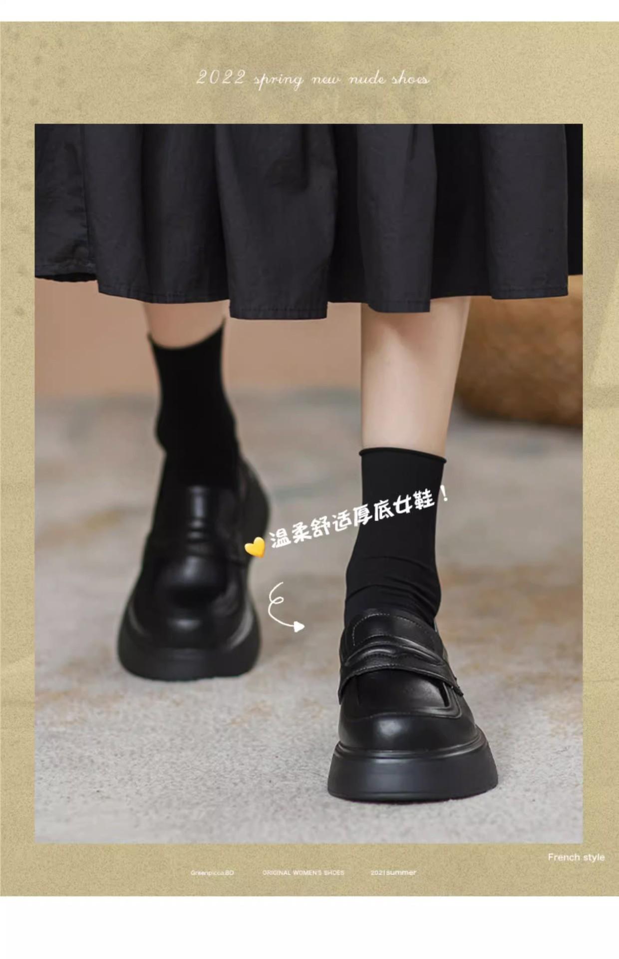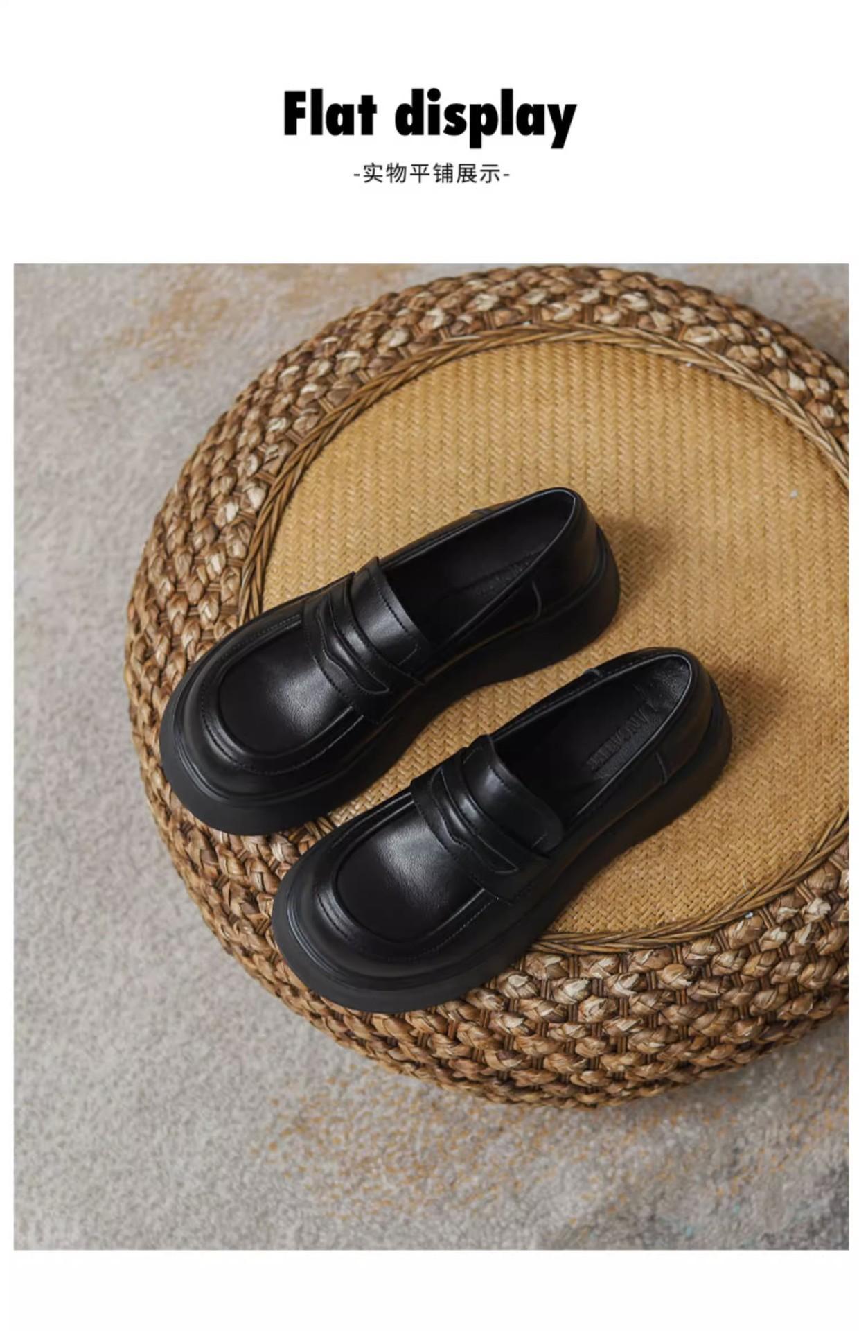 Qiaofei ~ Mocasines de plataforma para mujer 2023, zapatos de plataforma para todo tipo de combinaciones, zapatos negros de cuero estilo británico, zapatos sin cordones