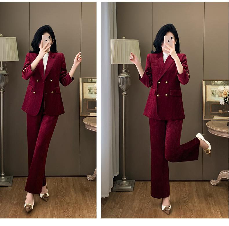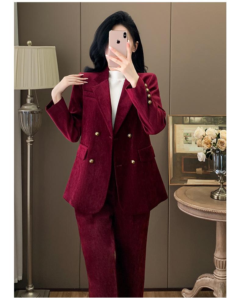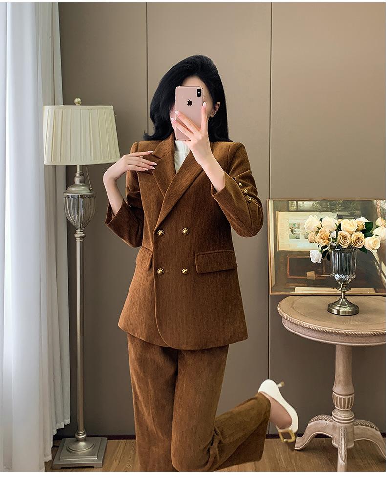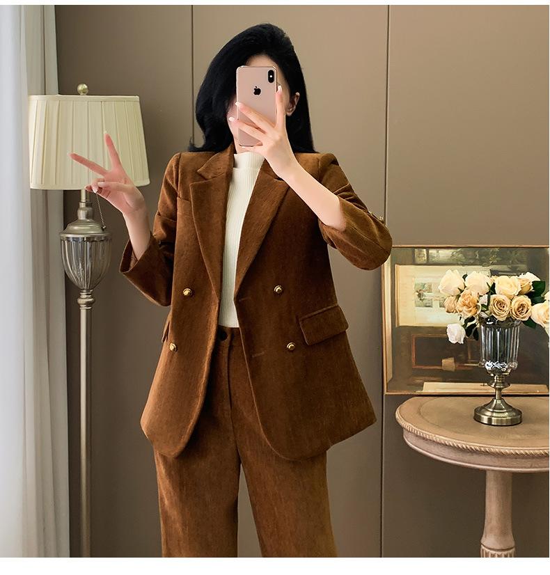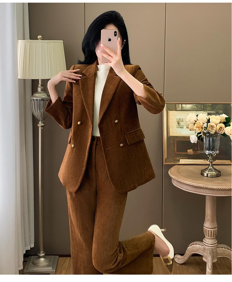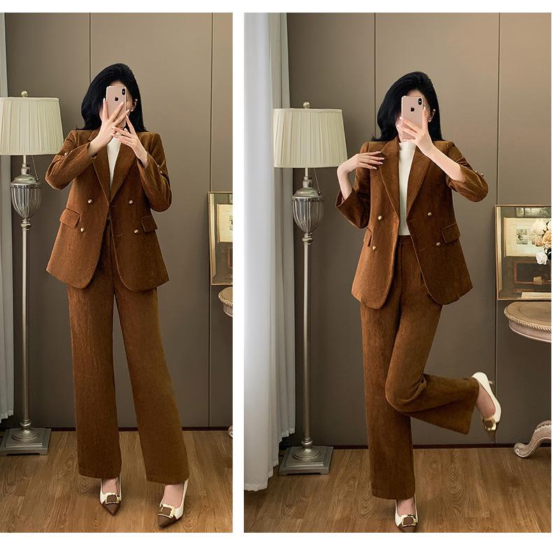 2024 Primavera Otoño e Invierno Nuevo Traje de Manga Larga con Cuello Pequeño Chaqueta Pantalones de Mujer Traje de Dos Piezas Temperamento Alto Viajero