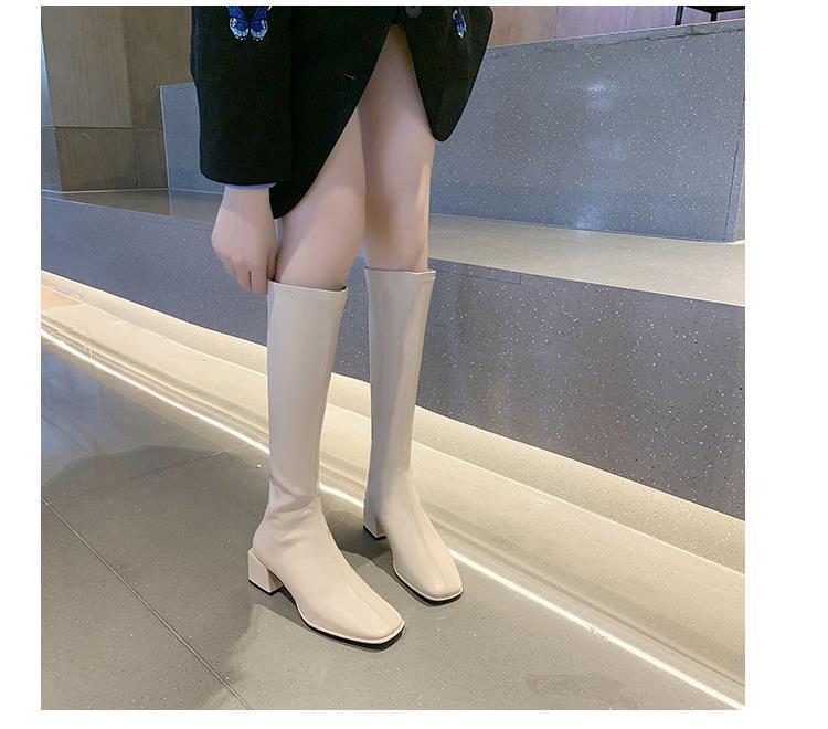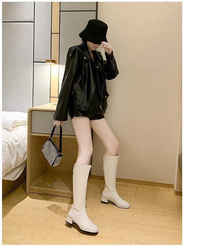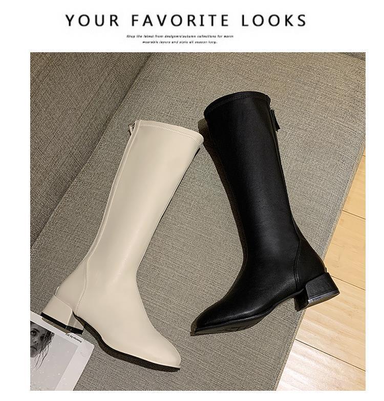 Botas largas para mujer, botas altas de primavera y otoño 2021, botas blancas hasta la rodilla, botas de caballero, botas finas de media caña.