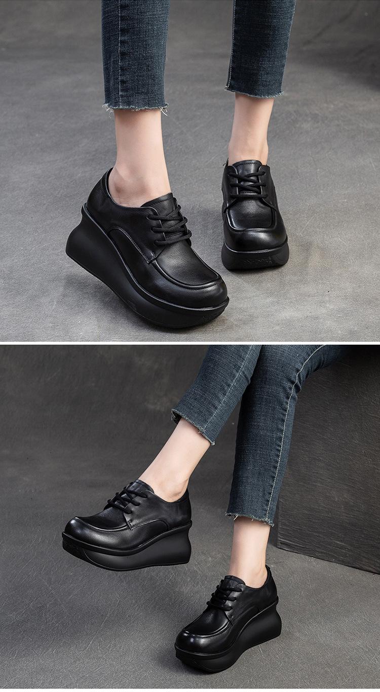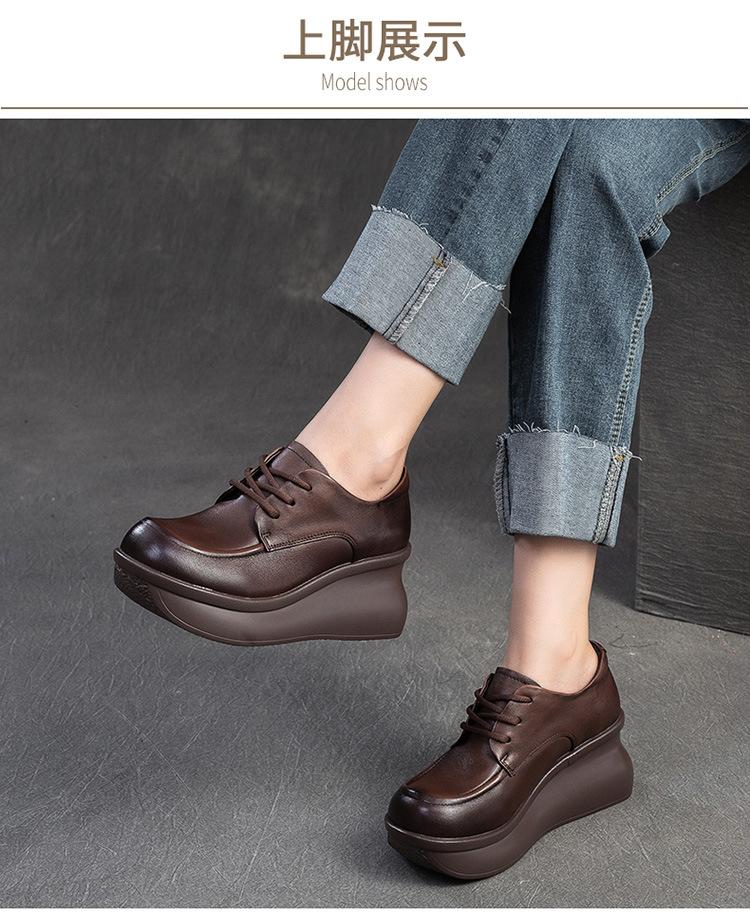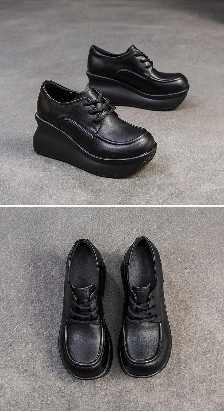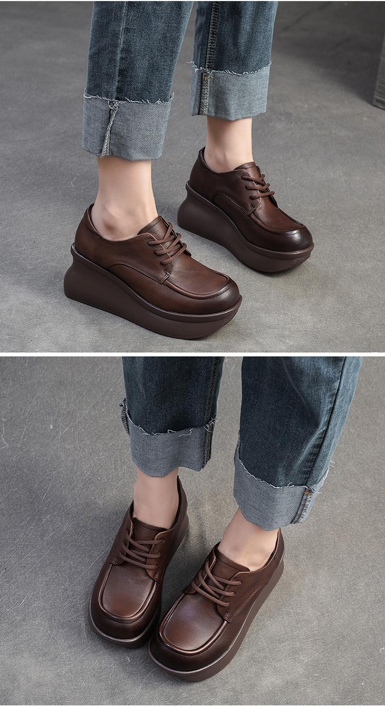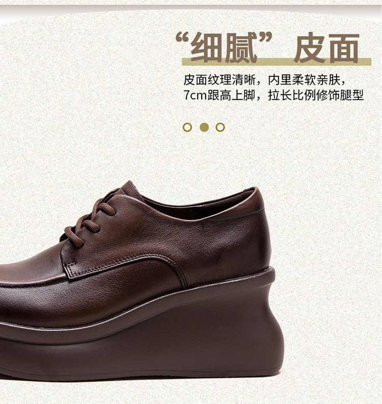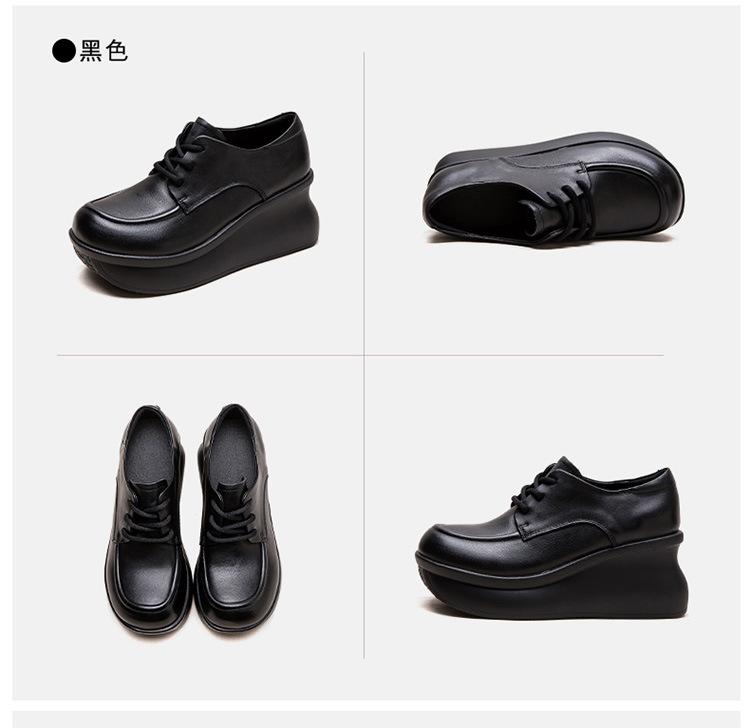 Shanghai Jiejie 2024 Otoño e Invierno Nuevos Mocasines de Cordones de Suela Gruesa Estilo Coreano Retro Simple Combinan con Todo Zapatos de Una Sola Capa Zapatos de Mujer