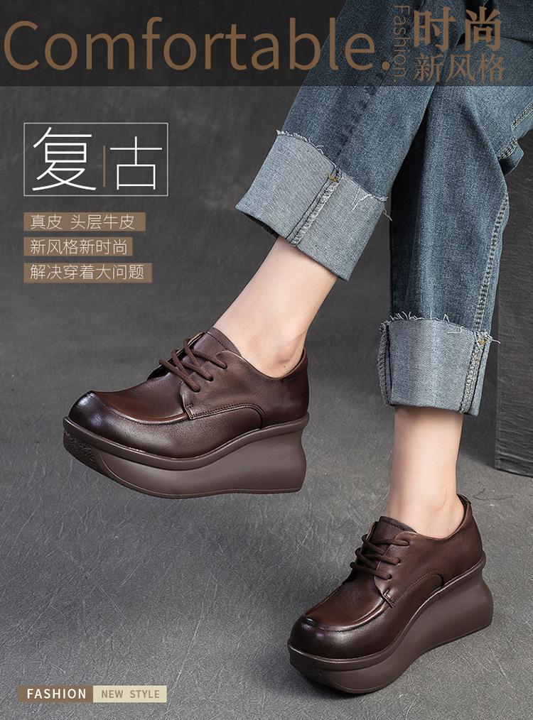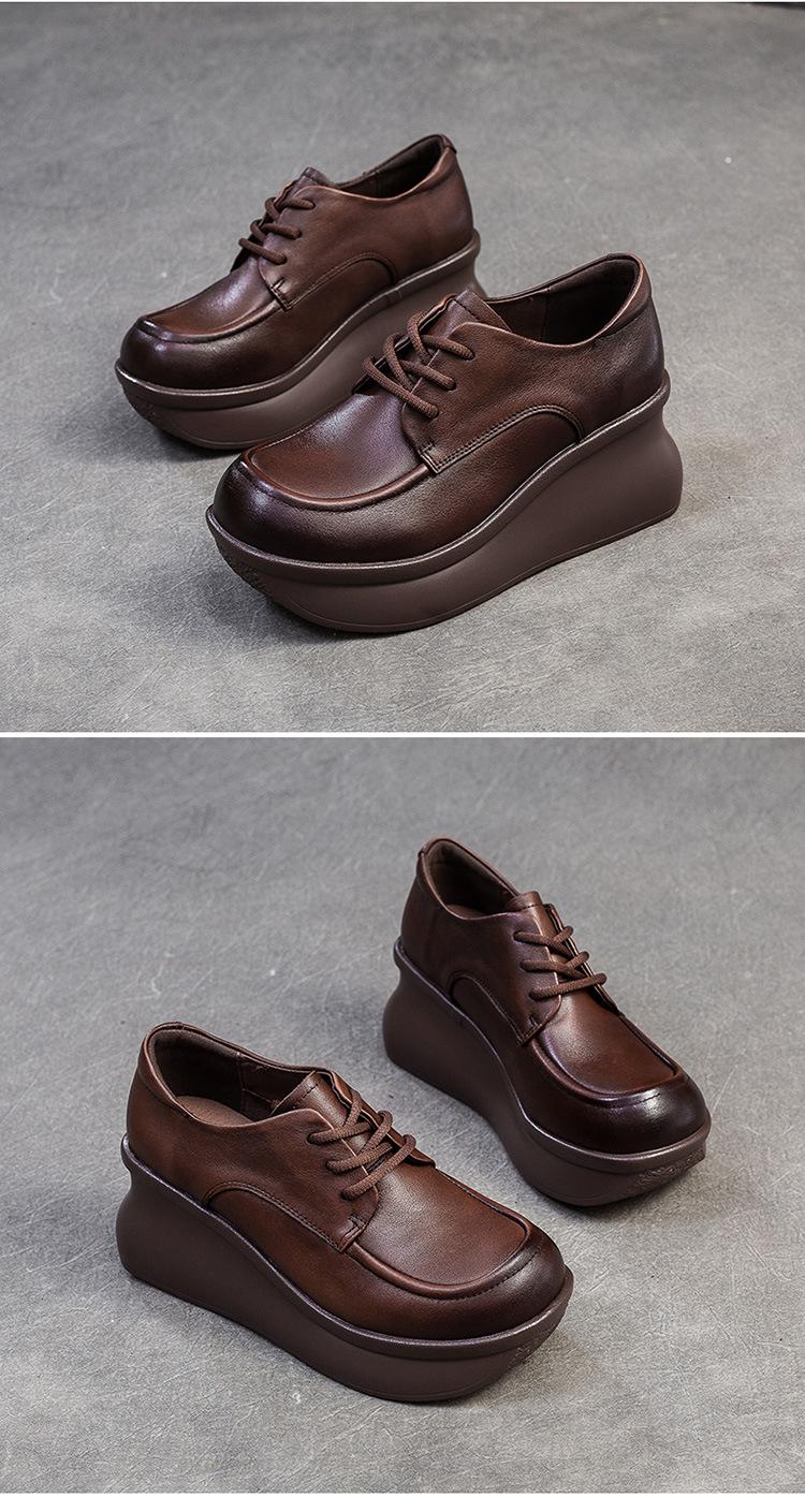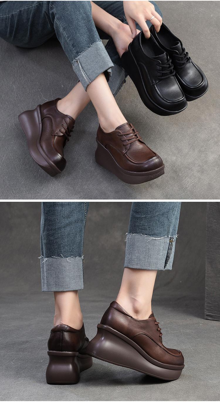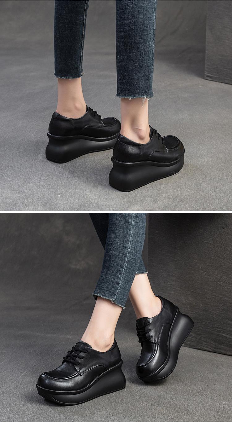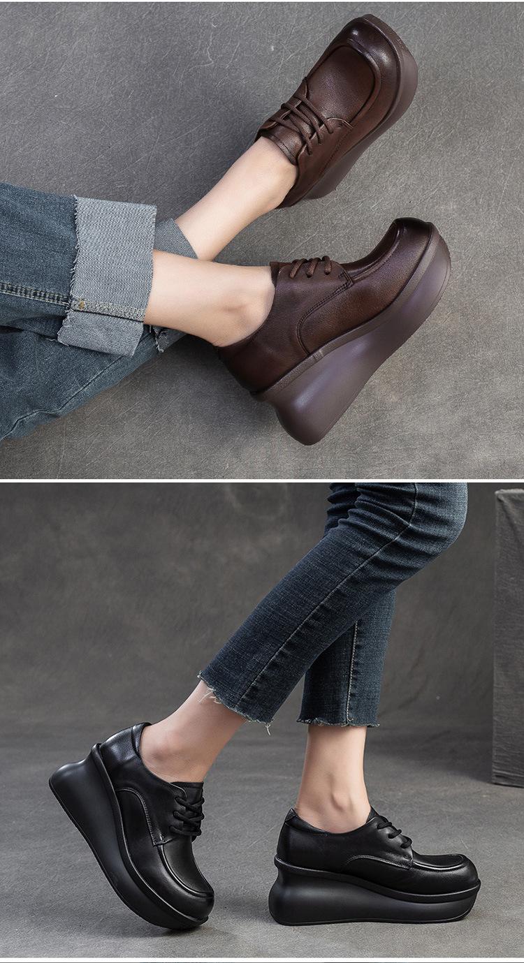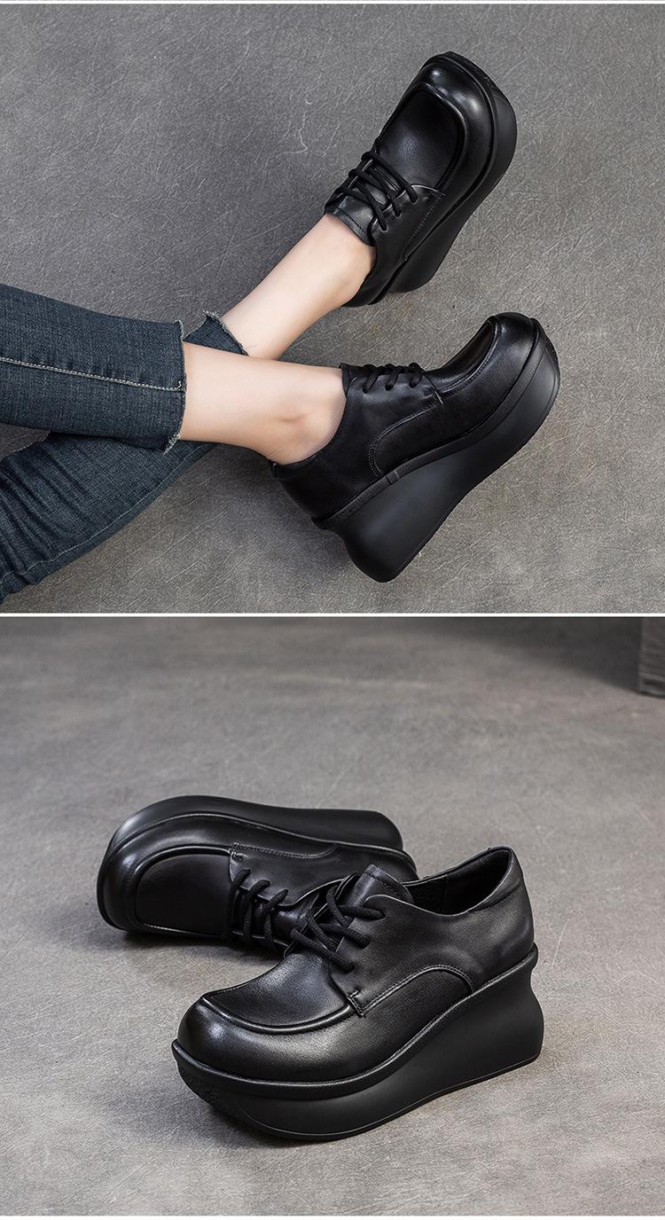 Shanghai Jiejie 2024 Otoño e Invierno Nuevos Mocasines de Cordones de Suela Gruesa Estilo Coreano Retro Simple Combinan con Todo Zapatos de Una Sola Capa Zapatos de Mujer
