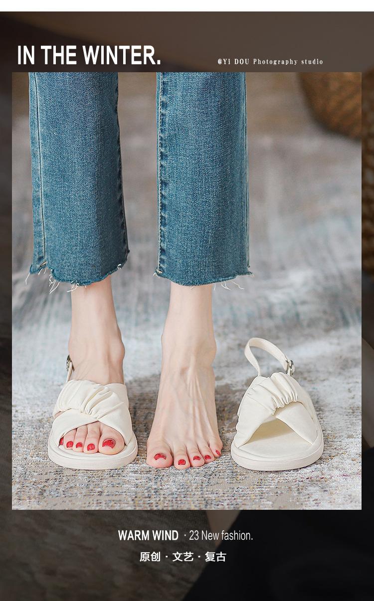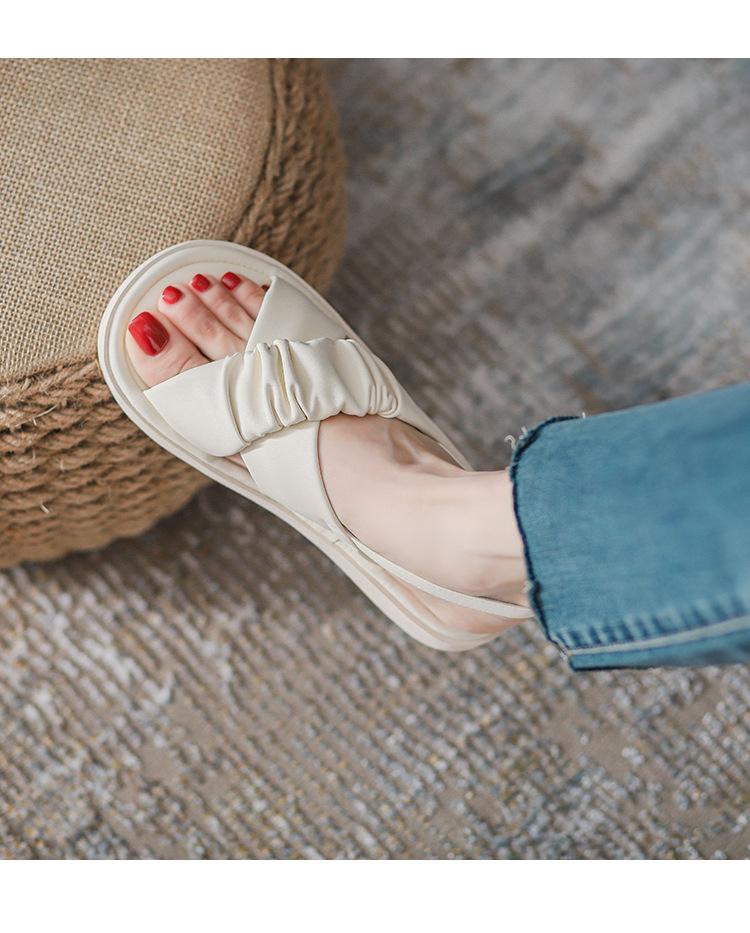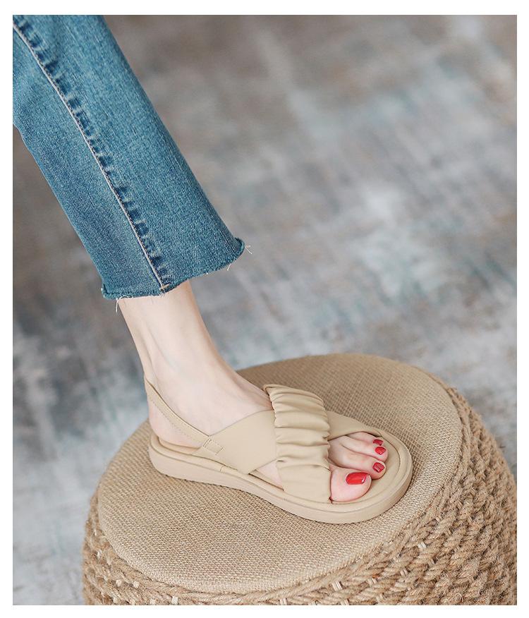 Sandalias de Plataforma de Verano para Mujer 2024 Nuevas Combinación Total Estilo Hada Punta Abierta Zapatos Romanos Casuales Planas Pantuflas de Playa