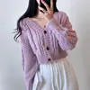 Suéter de punto con cuello en V y manga larga de color liso para mujer, abrigo de otoño e invierno de comercio exterior transfronterizo, con hebilla de Jacquard