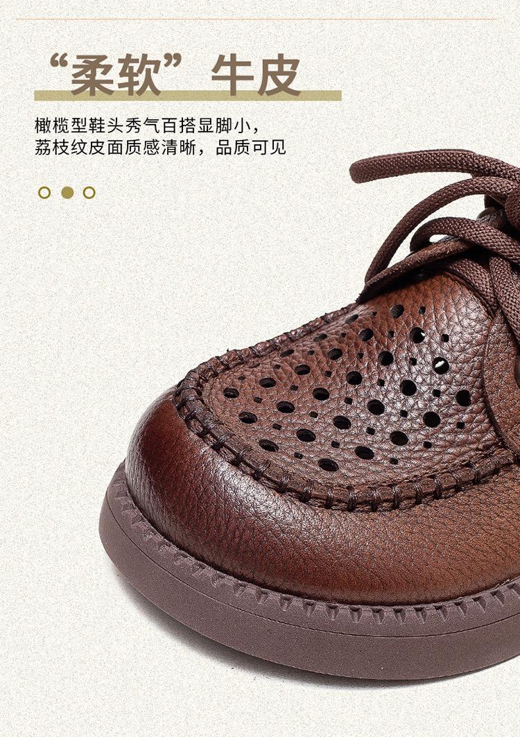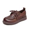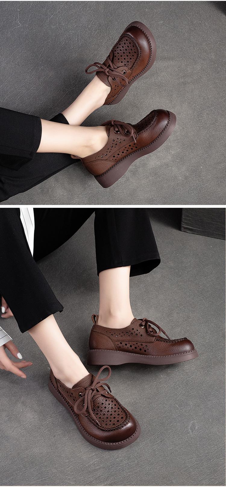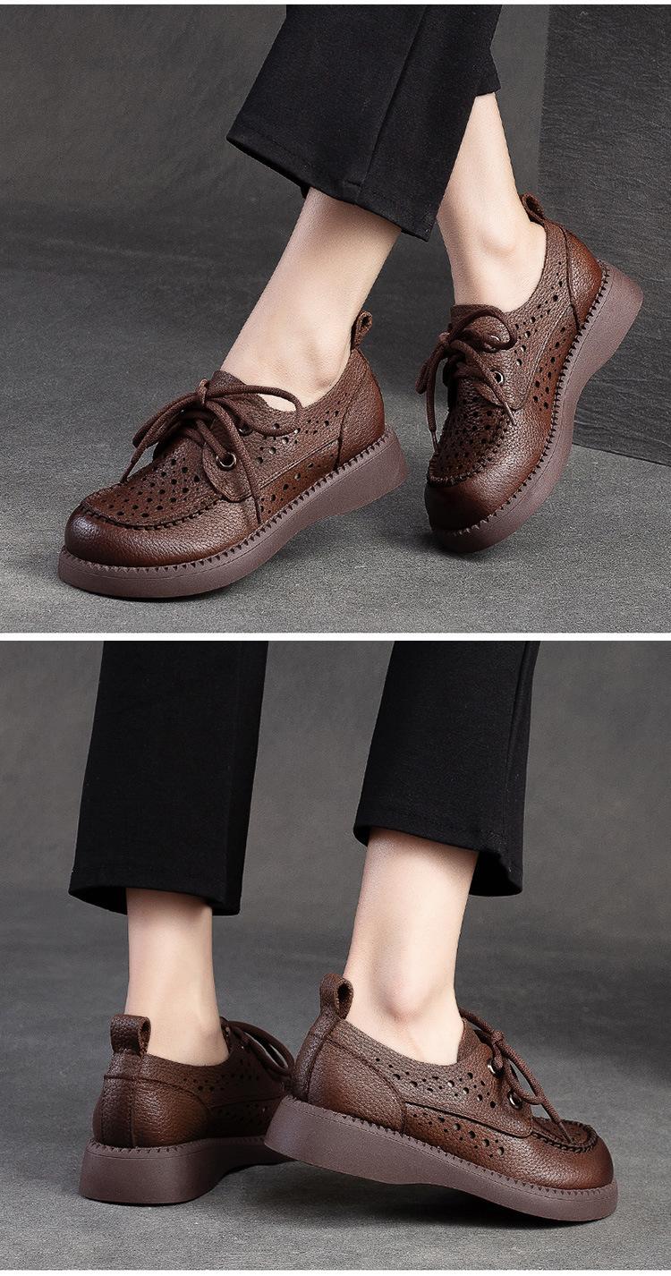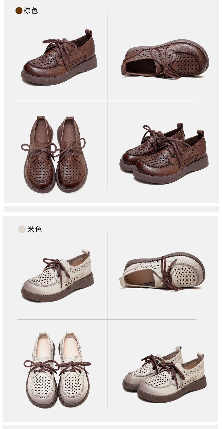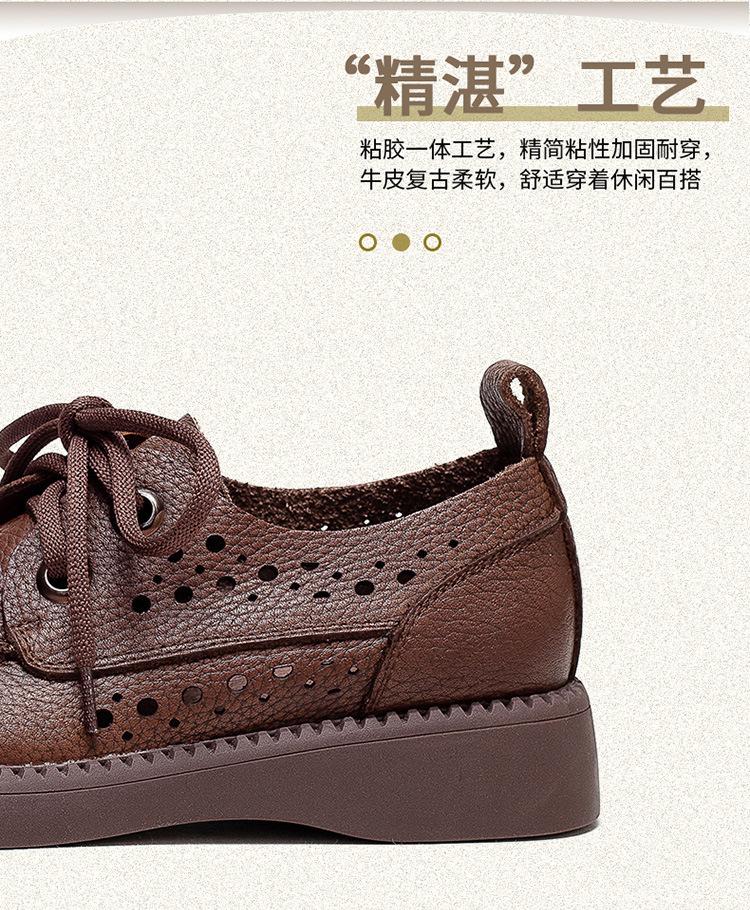 Shanghai Jiechu verano nuevo zapatos de agujeros transpirables con cordones frontales retro primera capa piel de vaca color sandalias zapatos cómodos para mujer