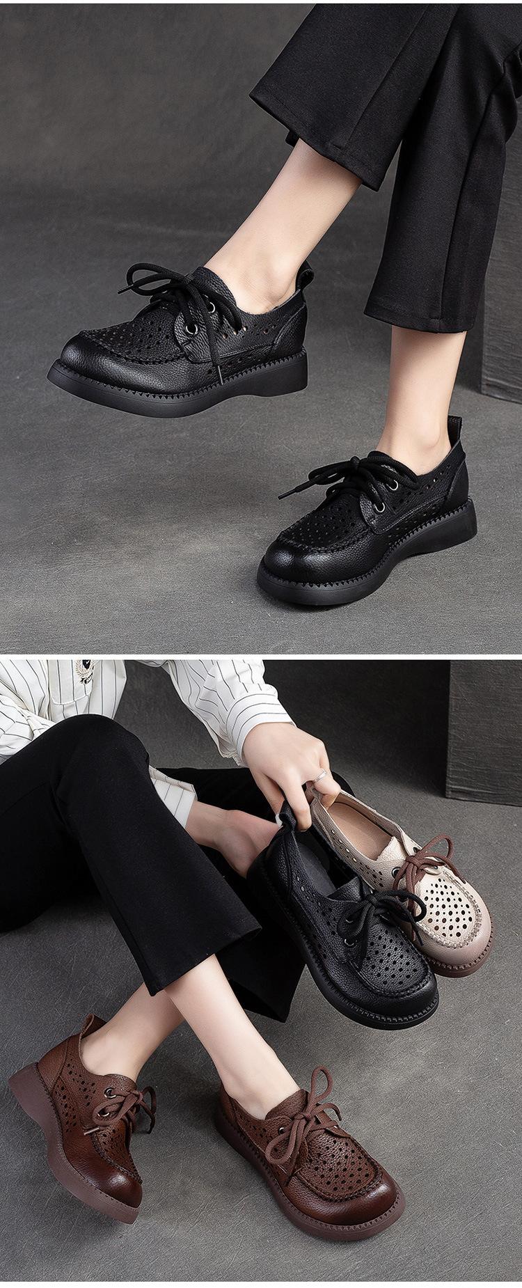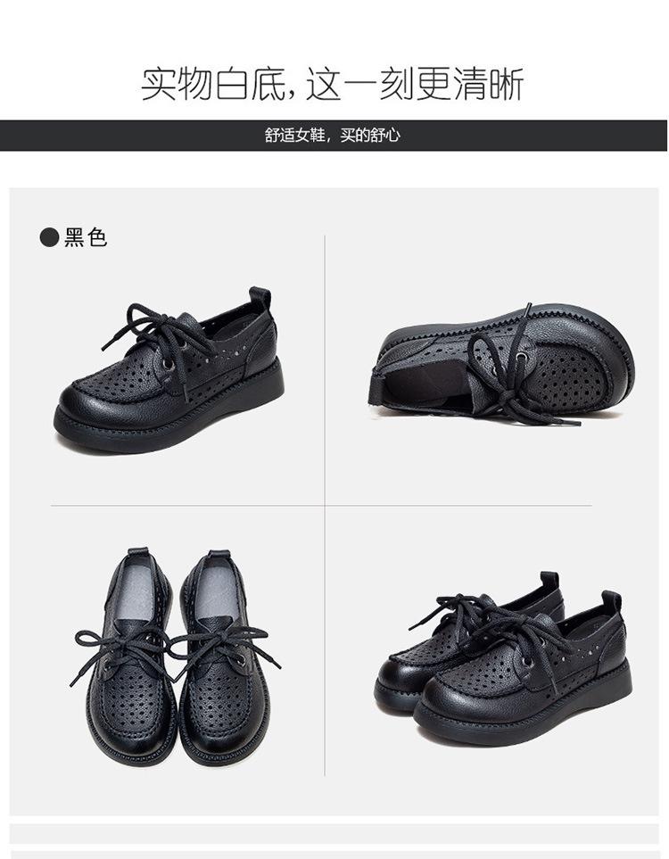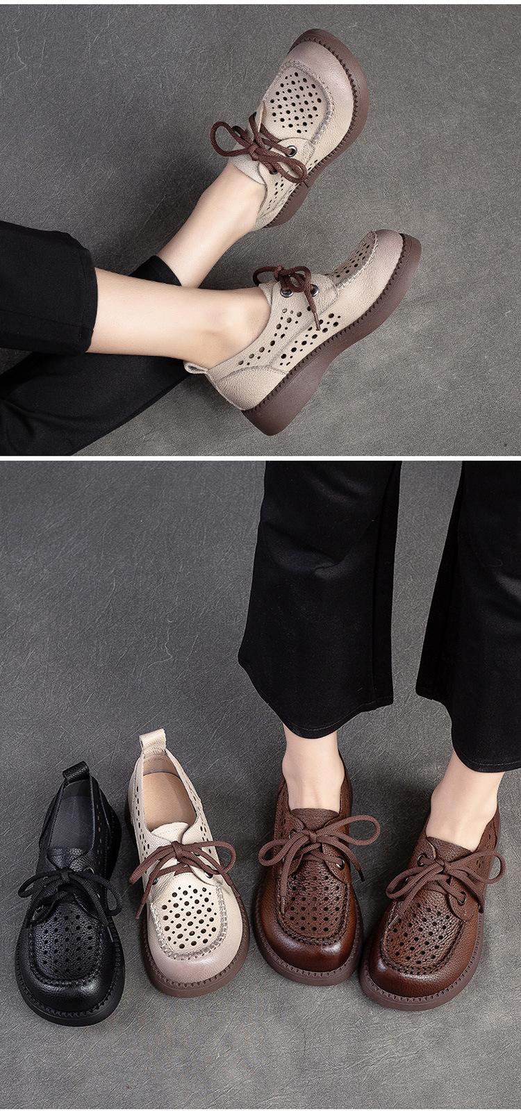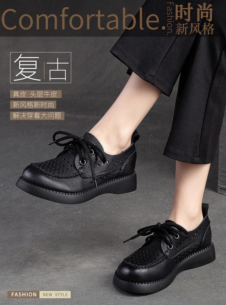 Shanghai Jiechu verano nuevo zapatos de agujeros transpirables con cordones frontales retro primera capa piel de vaca color sandalias zapatos cómodos para mujer