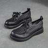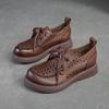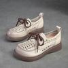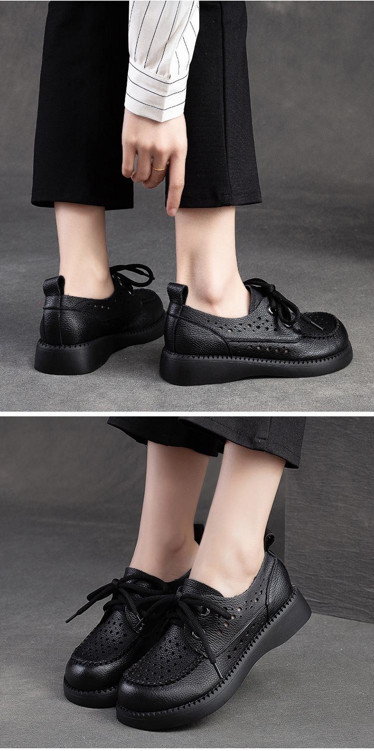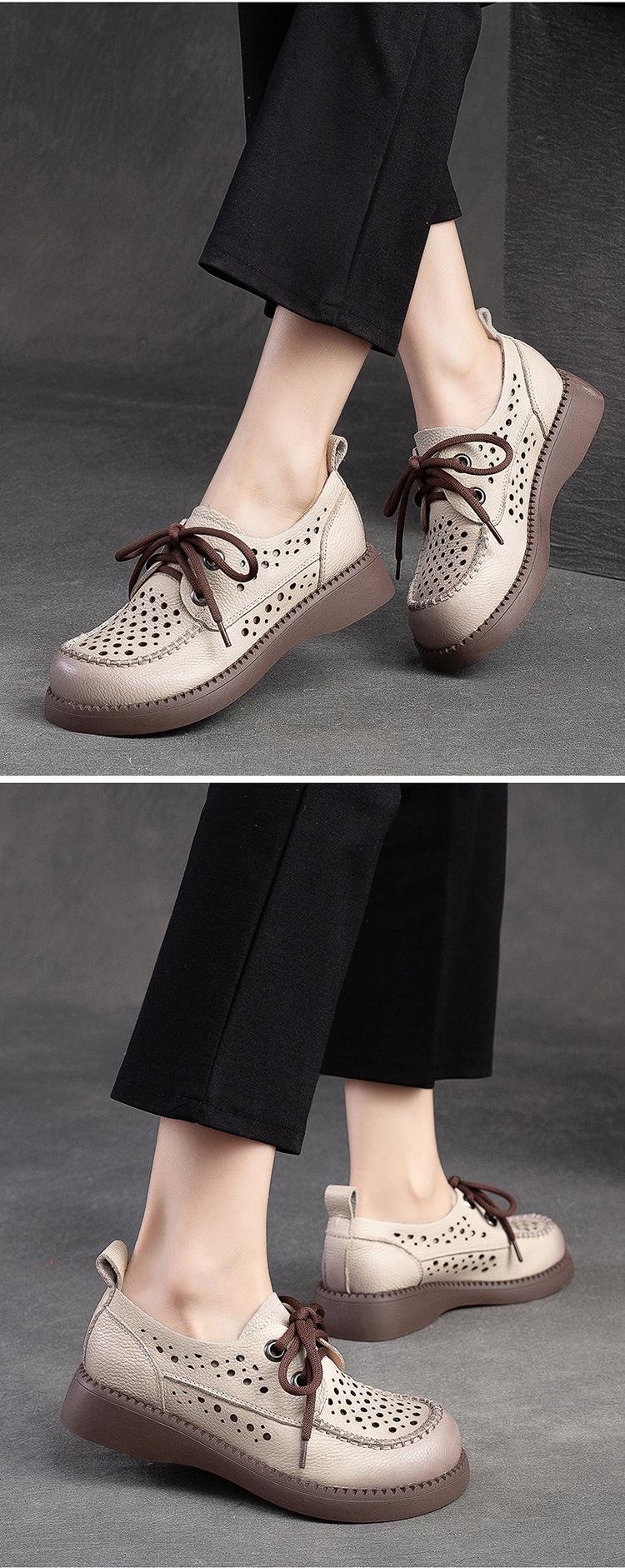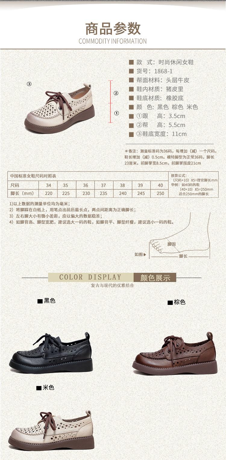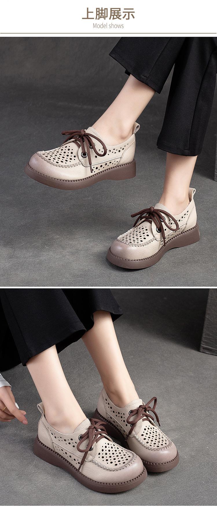 Shanghai Jiechu verano nuevo zapatos de agujeros transpirables con cordones frontales retro primera capa piel de vaca color sandalias zapatos cómodos para mujer