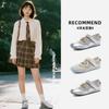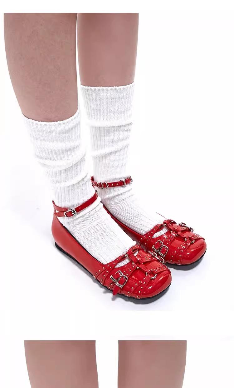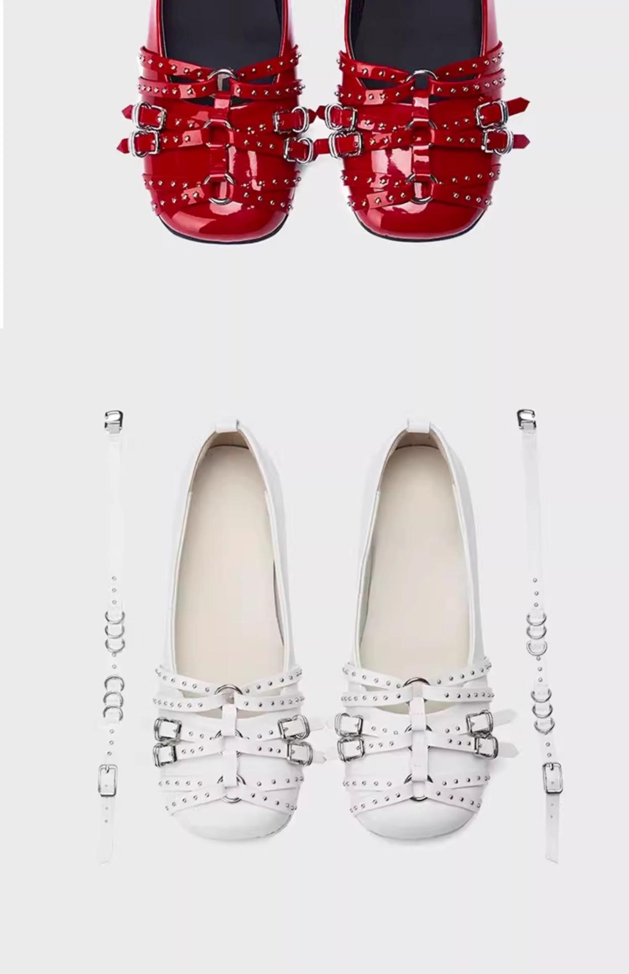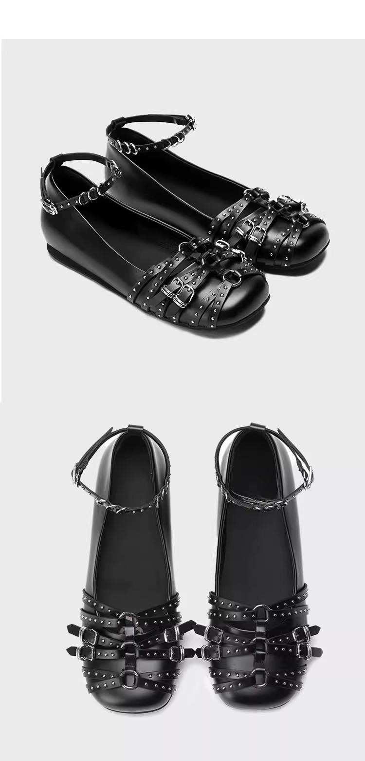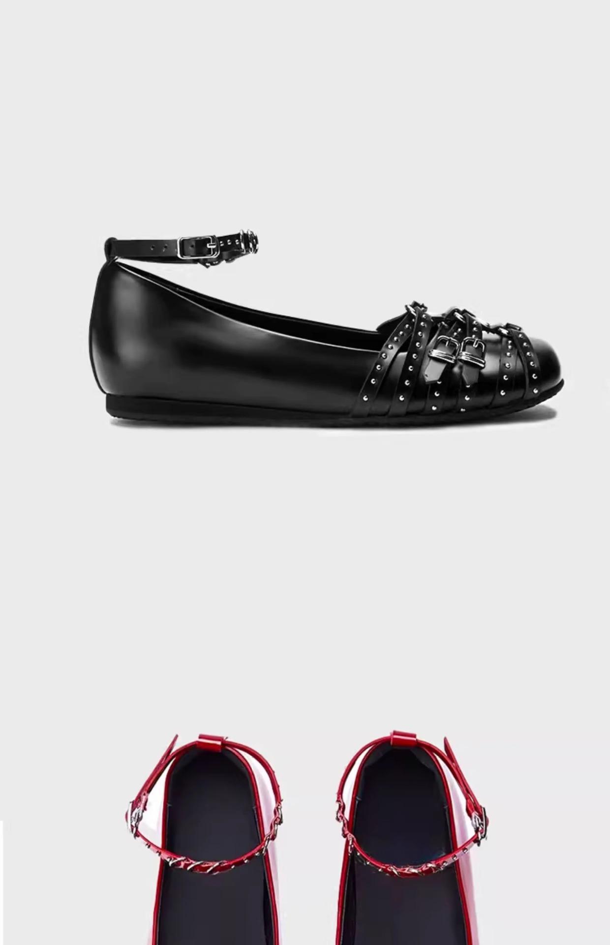 Zapatos Planos de Ballet para Mujer 2025 Primavera Nuevos Cuero Genuino Vintage de Una Capa Remache Aumento de Altura Interior Boca Baja Zapatos Mary Jane