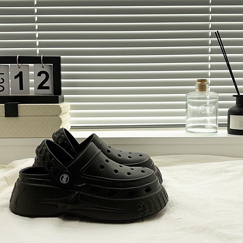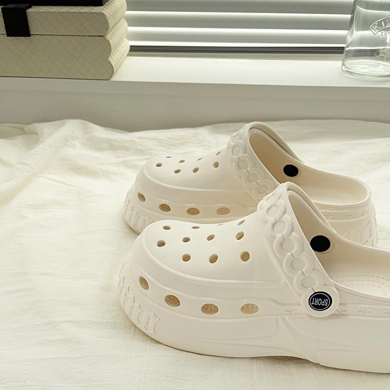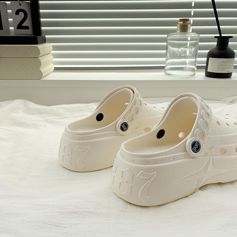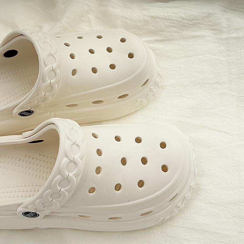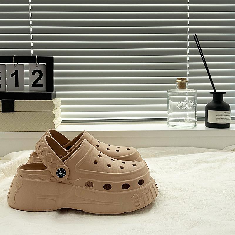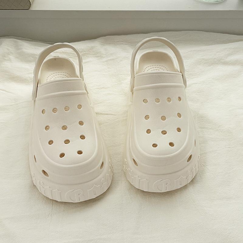 Pantuflas Gruesas EVA Aumentadas Estilo Coreano Moda Verano Color Sólido Ropa Exterior Combinable Pantuflas con Agujeros Sandalias Casuales Nuevo