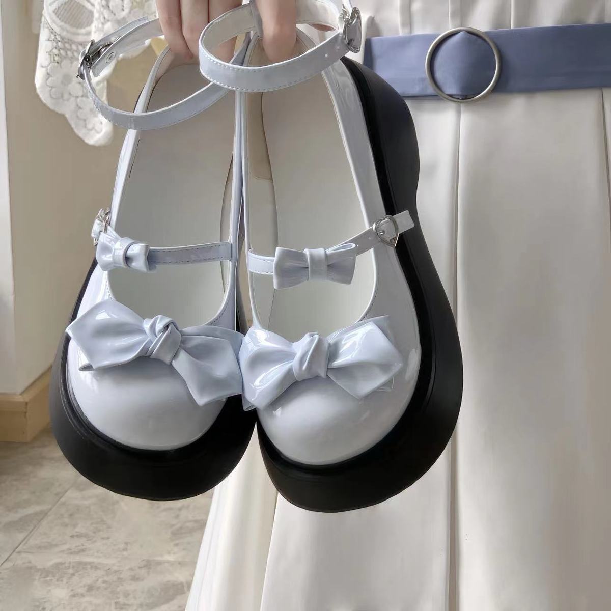 Lindos Zapatos Lolita de Punta Redonda y Suela Gruesa 2025 Verano Dulces Cool Japoneses Plataforma Suela Elevada Longitud de Pierna JK Zapatos de Mujer