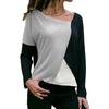 Nuevo 2024 transfronterizo Europeo y Americano AliExpress Amazon otoño e invierno costuras en contraste casual camiseta de manga larga top de mujer