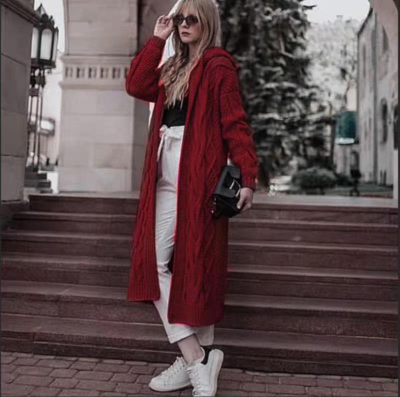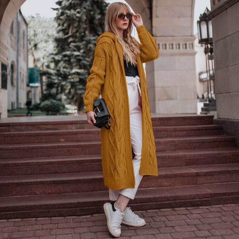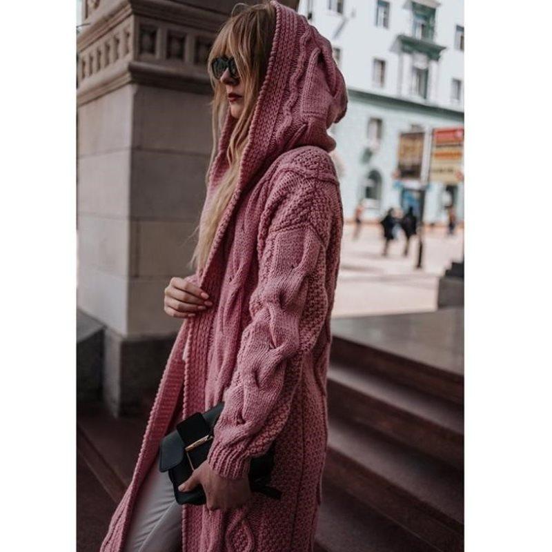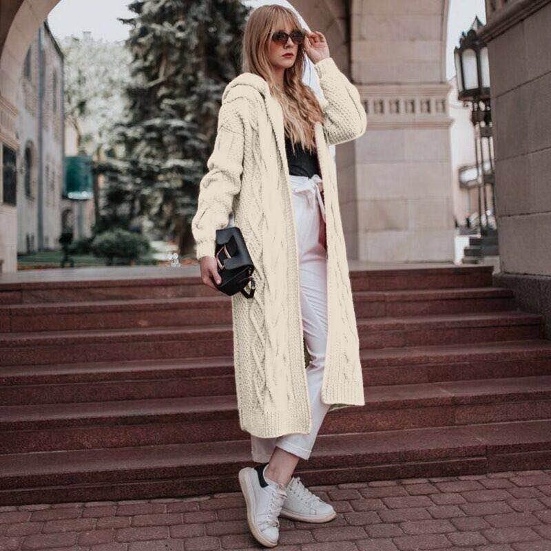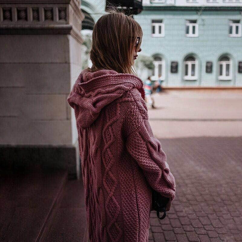 Comercio exterior deseo ropa de mujer de talla grande suéter cárdigan largo con capucha de color sólido cálido europeo y americano de otoño e invierno suéter de punto cruzado