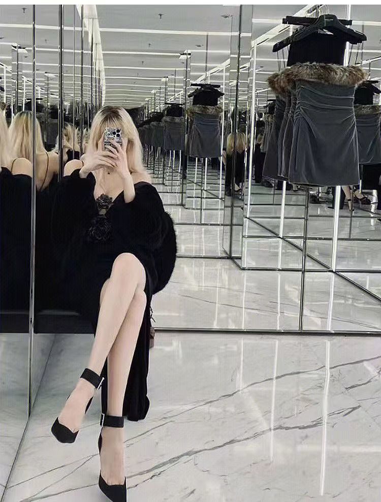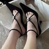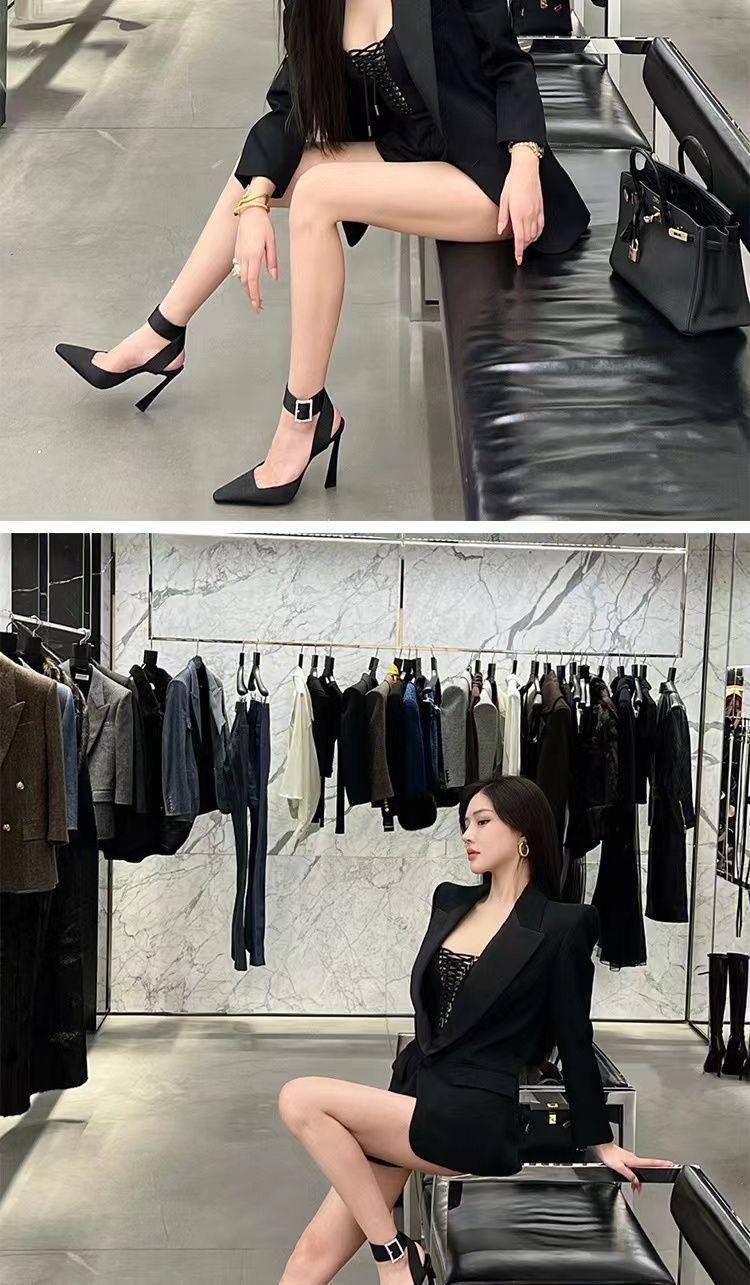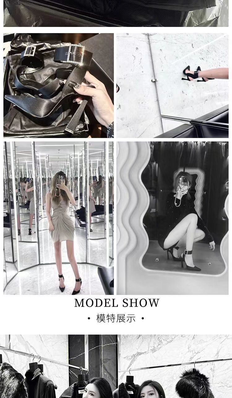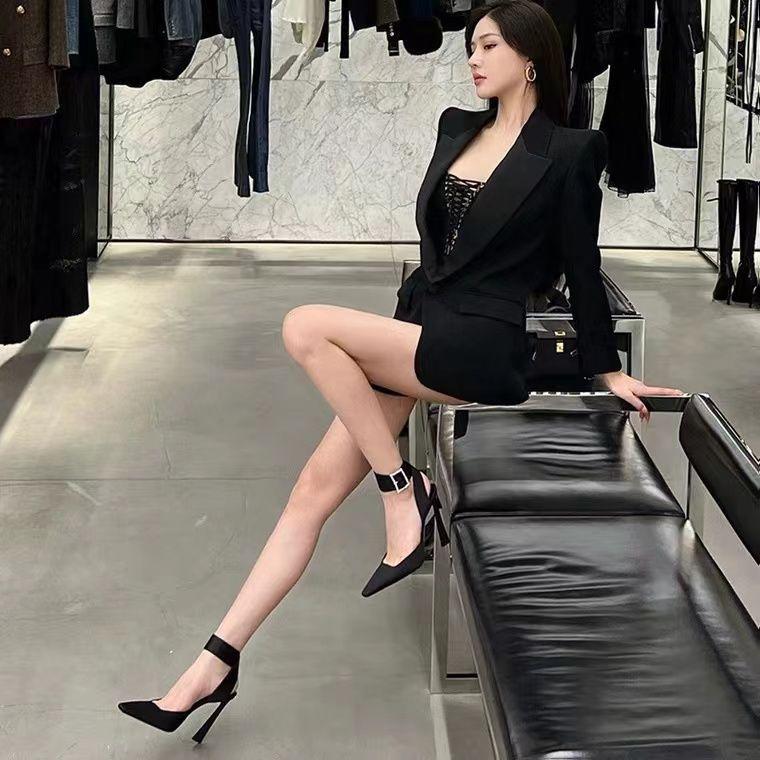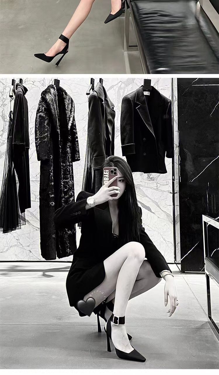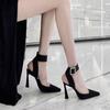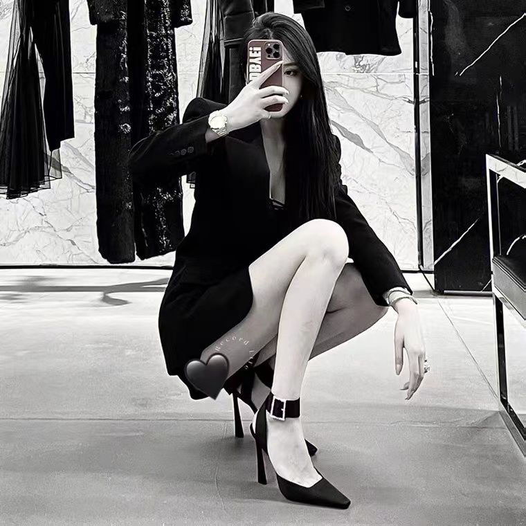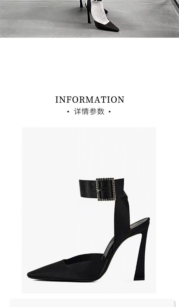 Zapatos de Tacón Alto para Mujer 2025 Estilo Pasarela Punta Cerrada Pedrería Hebilla Cuadrada Zapatos de Mujer Stiletto Satén Negro Impresionantes Zapatos Únicos