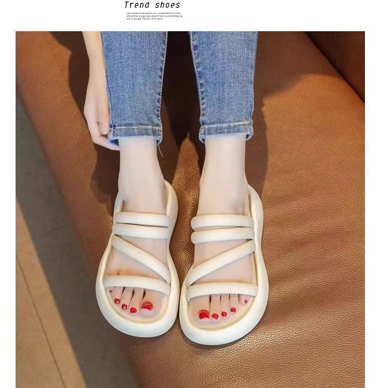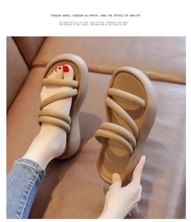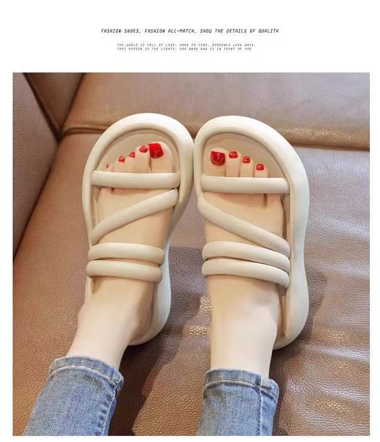 Pantuflas de moda para mujer, con fondo grueso y suave, para el verano de 2024, con falda, antideslizantes y de alta calidad junto al mar.