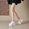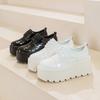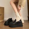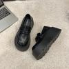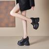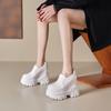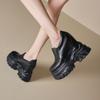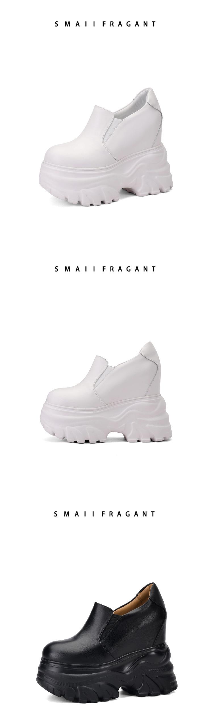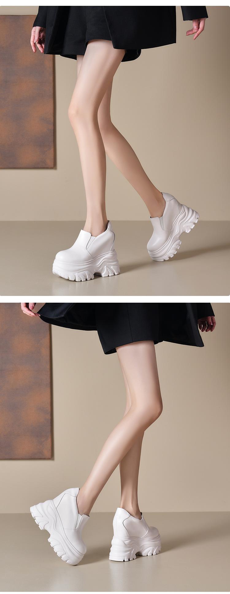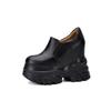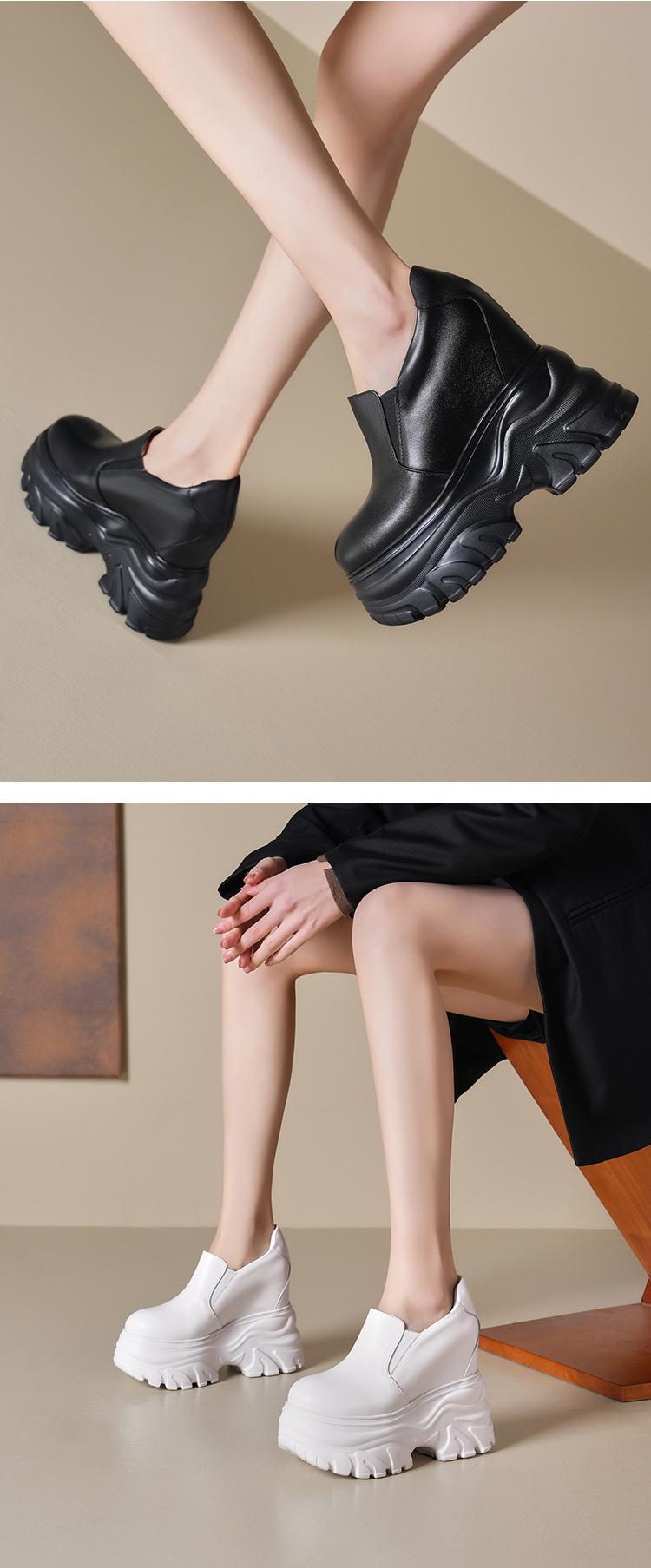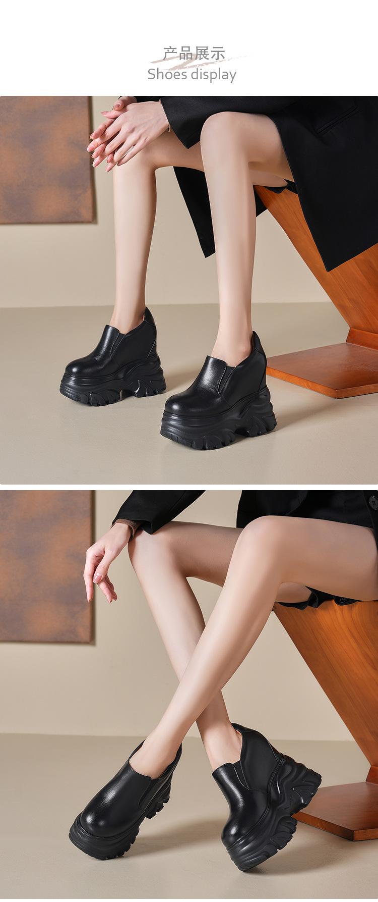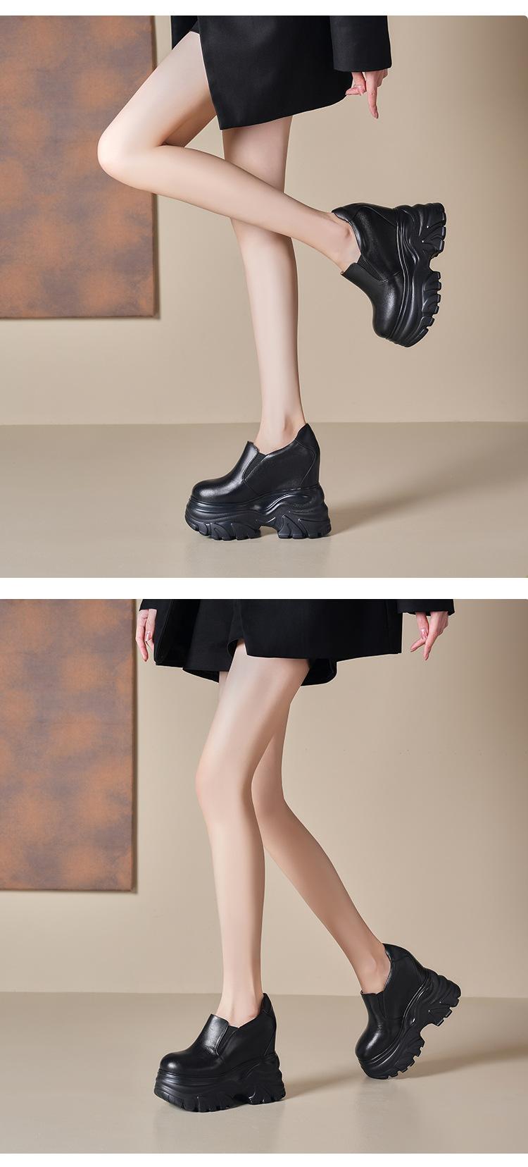 Zapatos de Plataforma de Suela Gruesa de Cuero Genuino Primavera 2025 Altura Interior 12cm Zapatos Negros Casuales Adelgazantes de Tacón Alto para Mujer