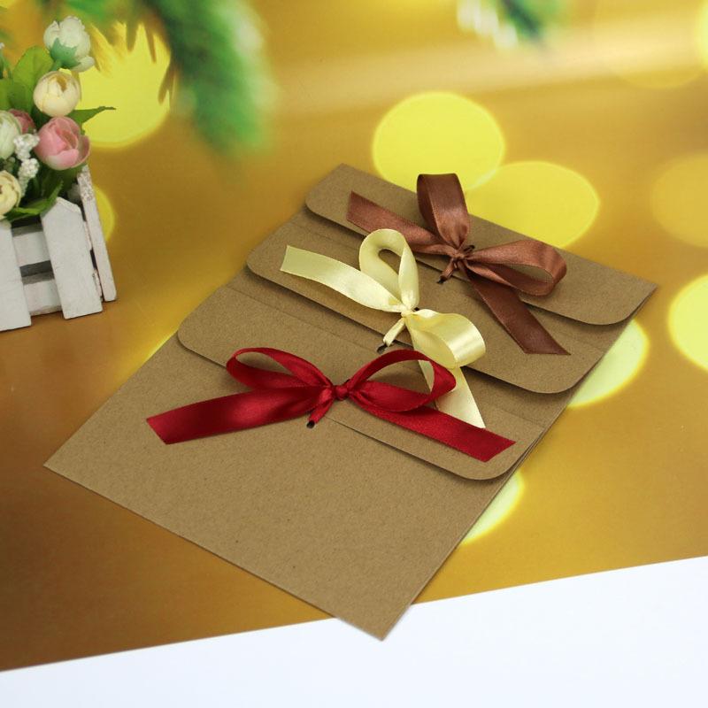 Sobre de papel kraft estilo europeo para tarjetas de felicitación, mensajes, regalos, bolsas con lazo multicolor, sobres rojos, bolsas de papel para cartas.