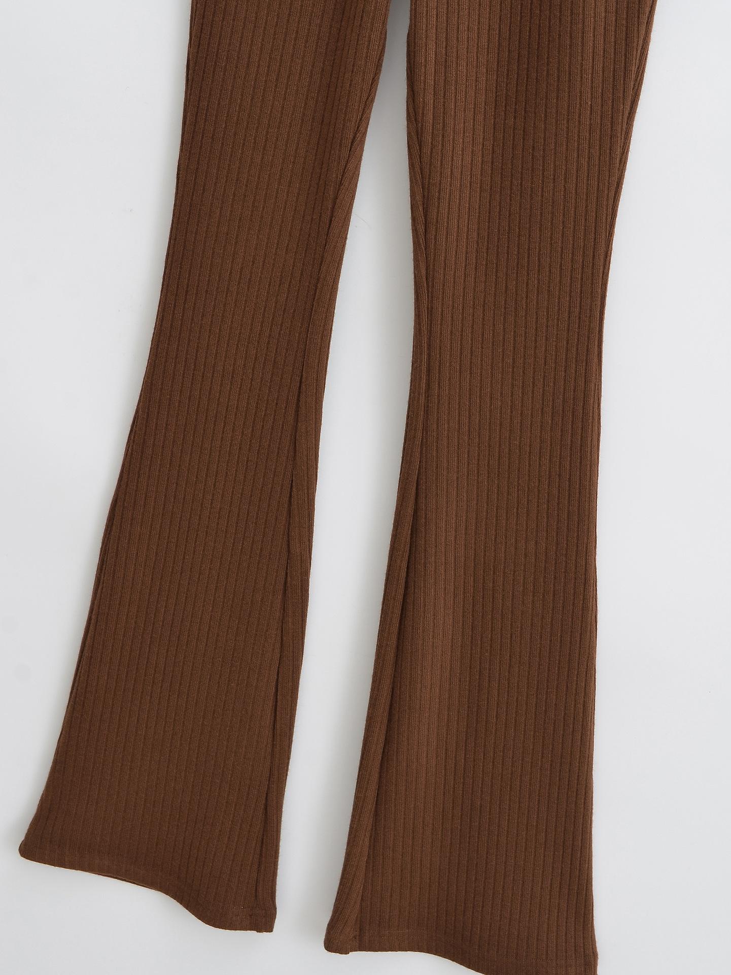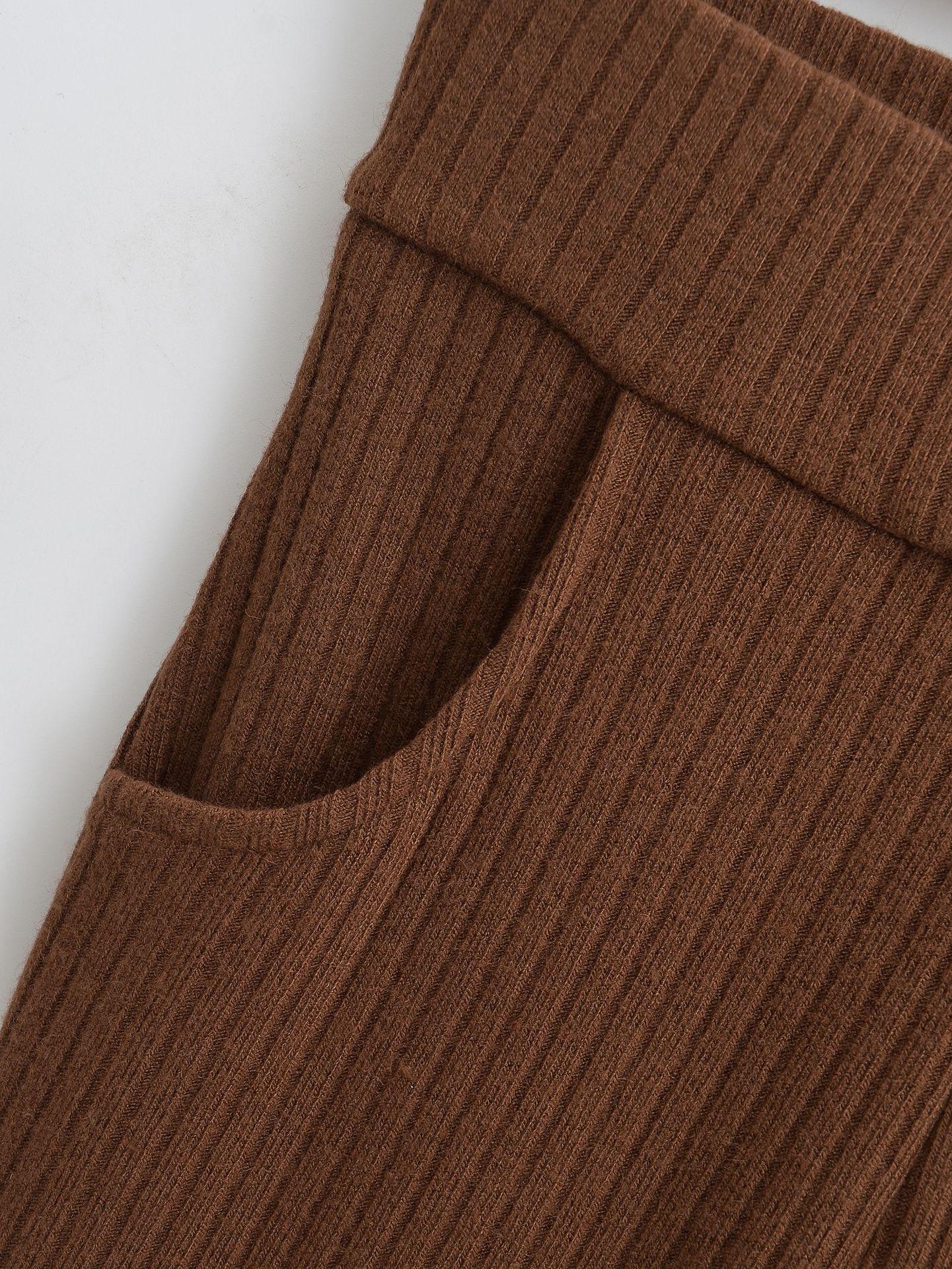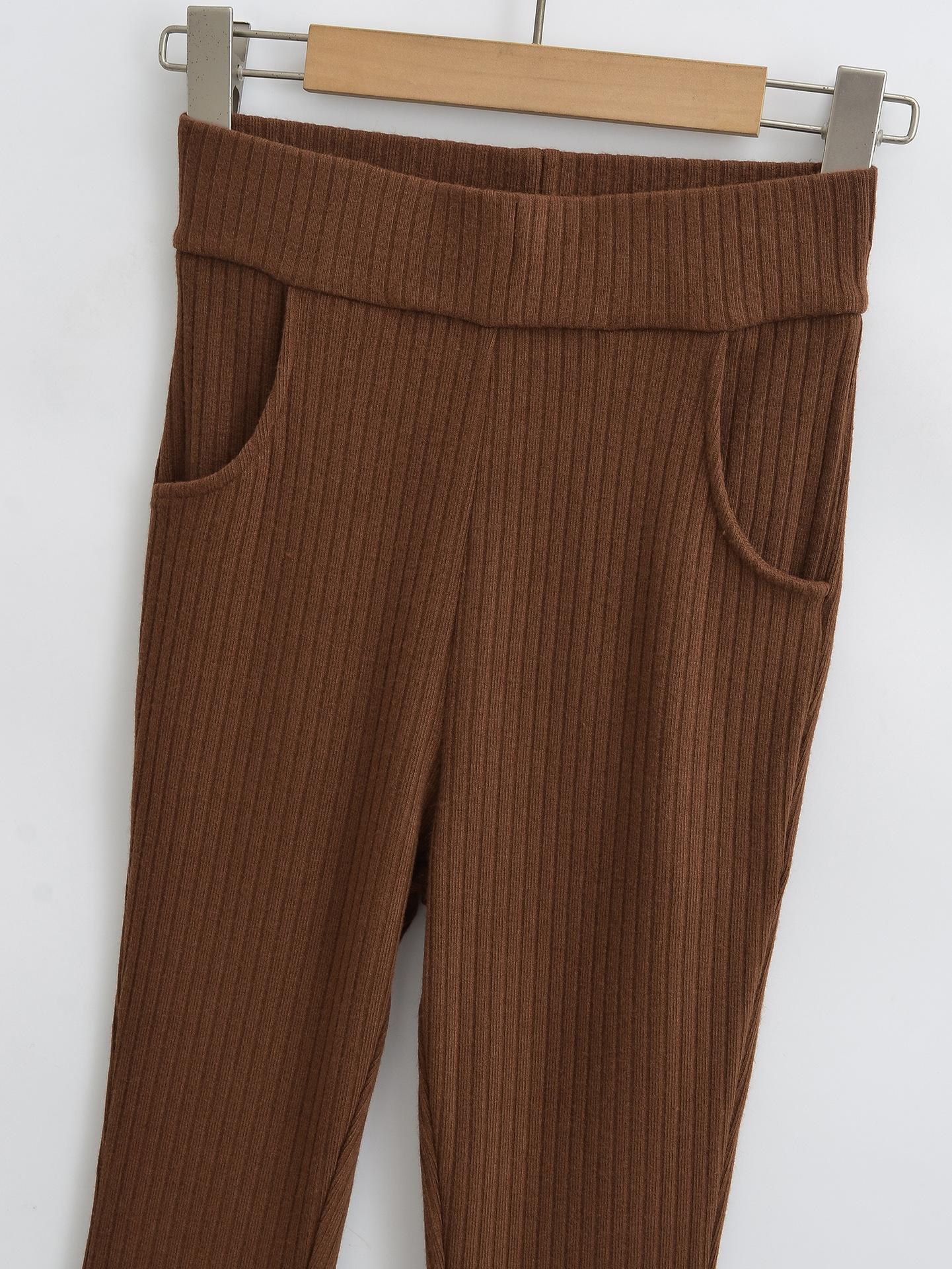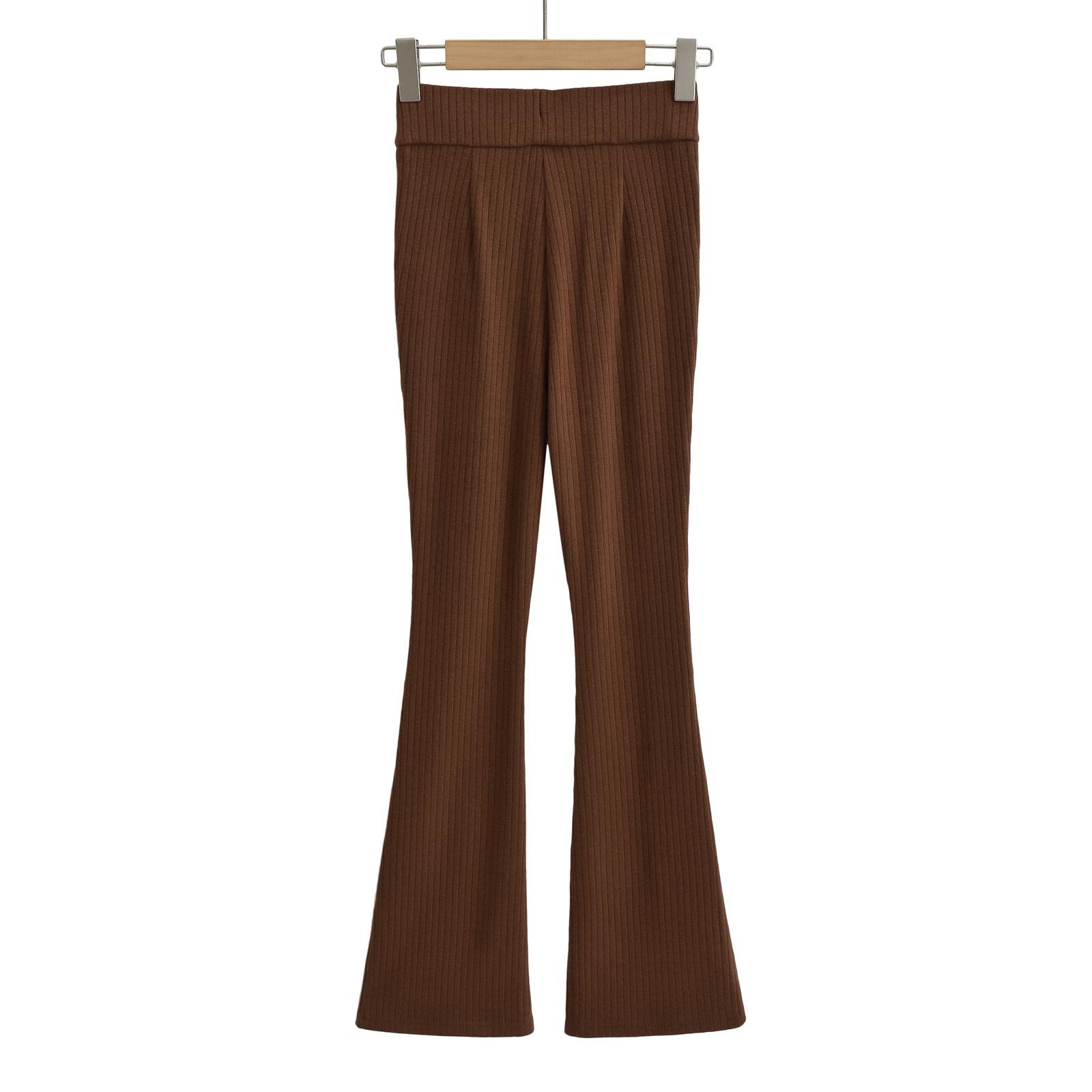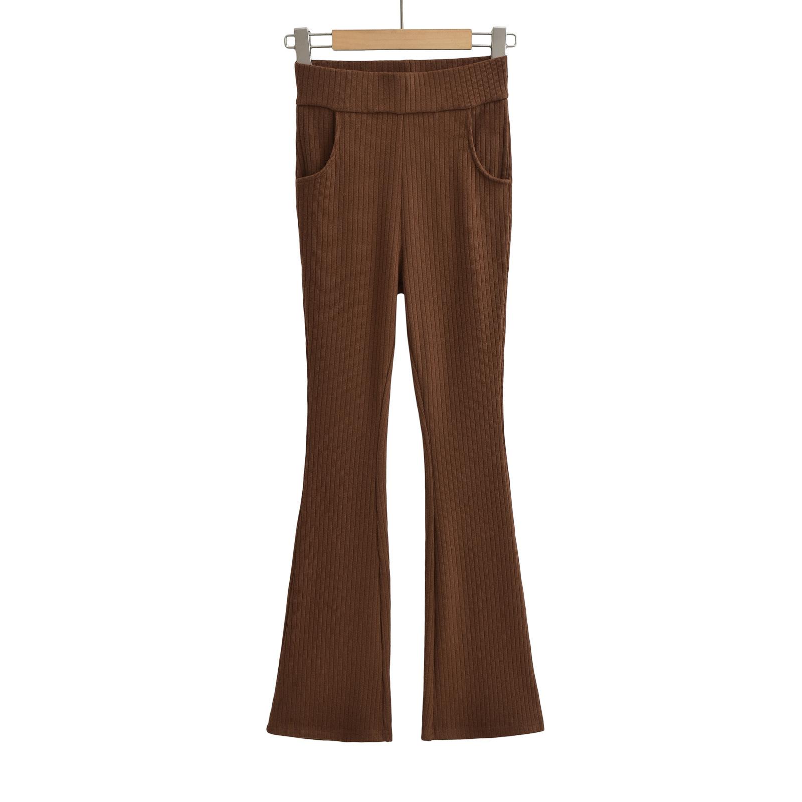 Pantalones casuales de bolsillo acampanados de punto ajustados elásticos de color sólido sencillos de estilo europeo y americano de principios de otoño de 2023