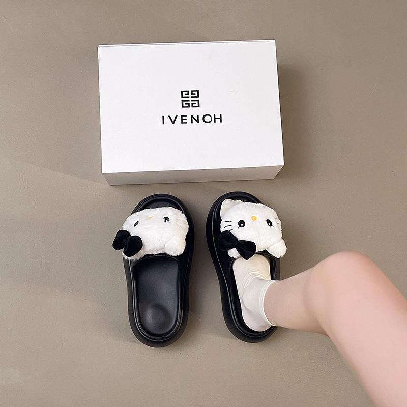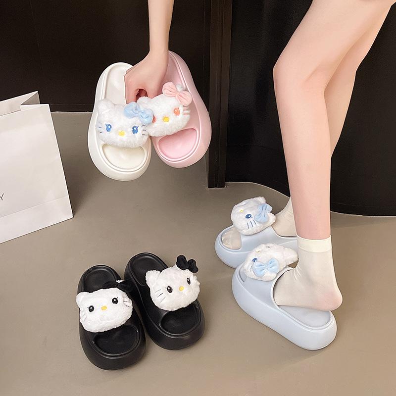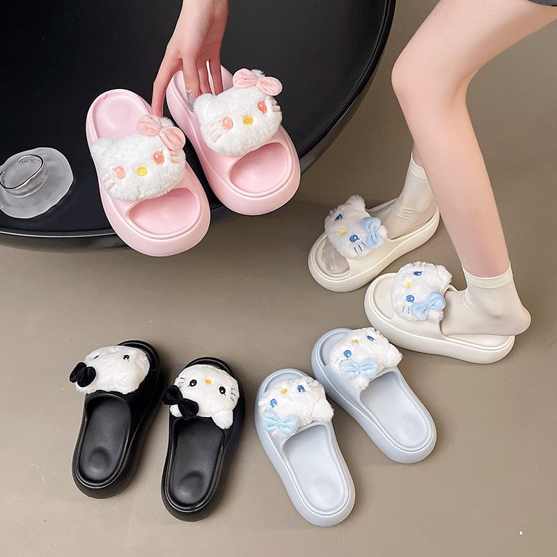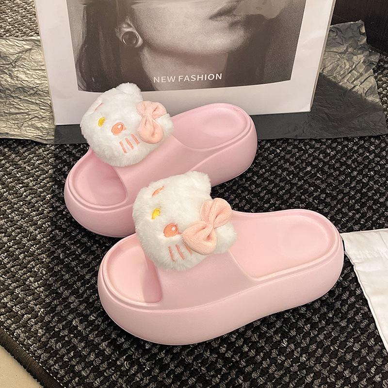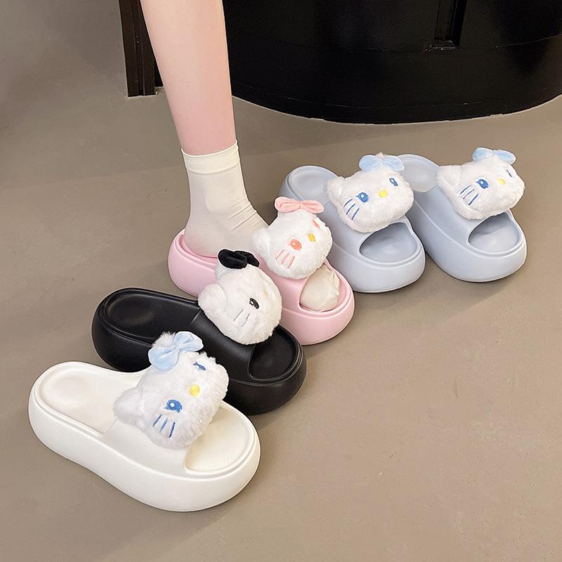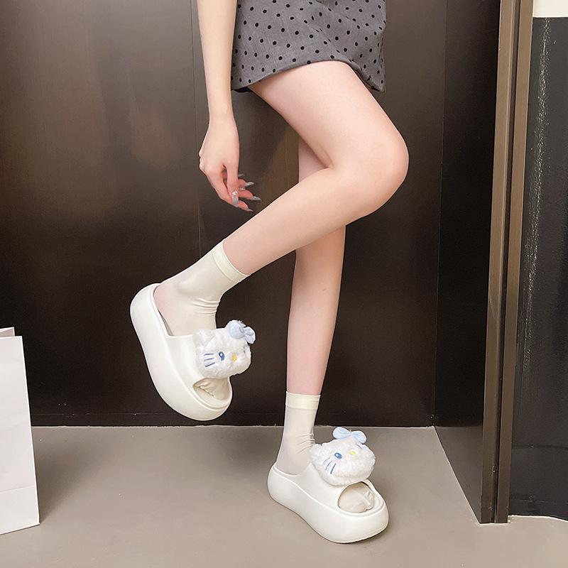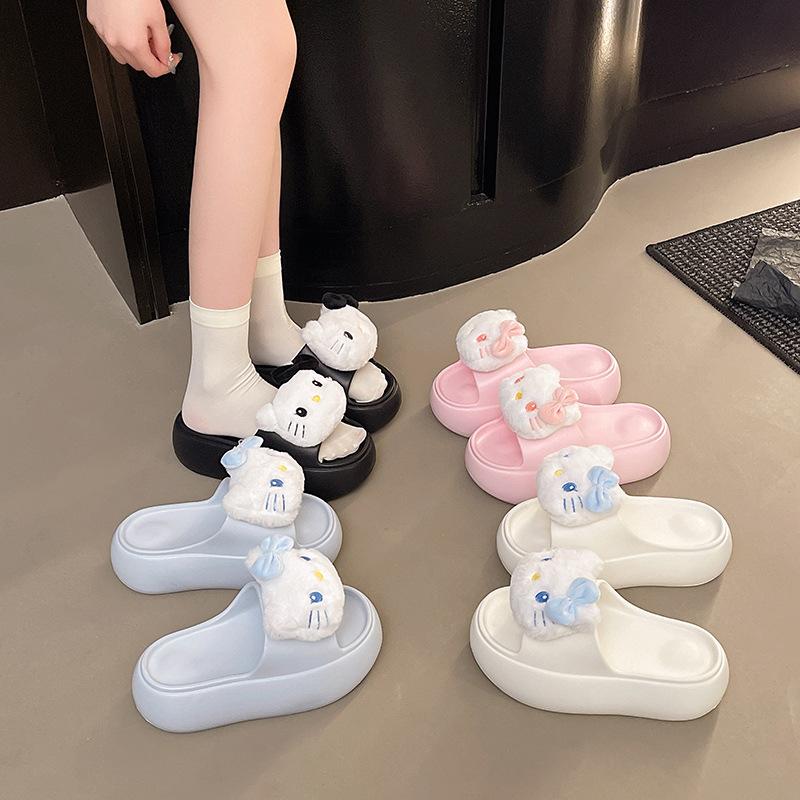 2025 Verano Nuevo Zapatillas Gruesas para Mujer Lindas Dulces Gato KT para Casa Exterior Antideslizantes EVA Chanclas