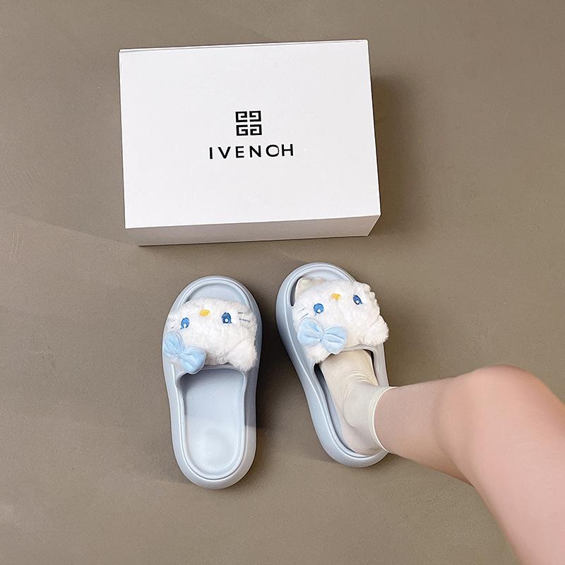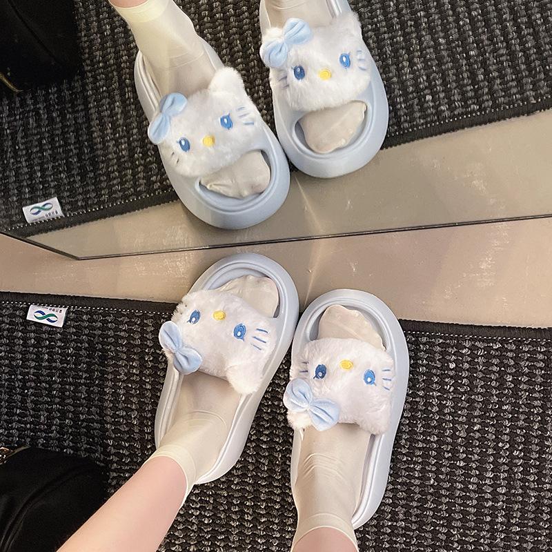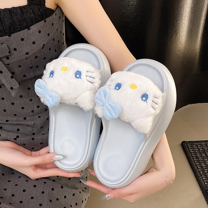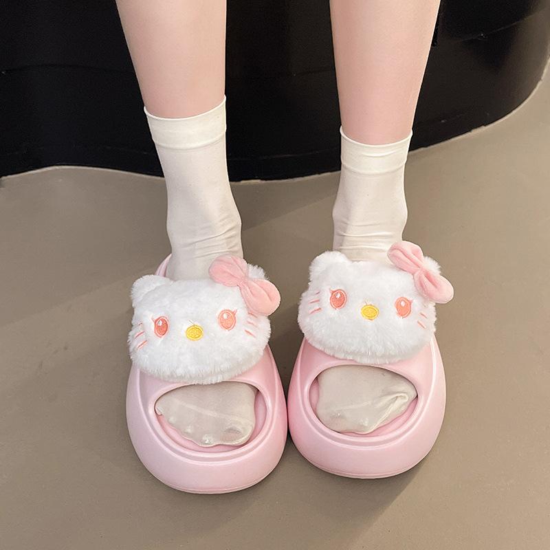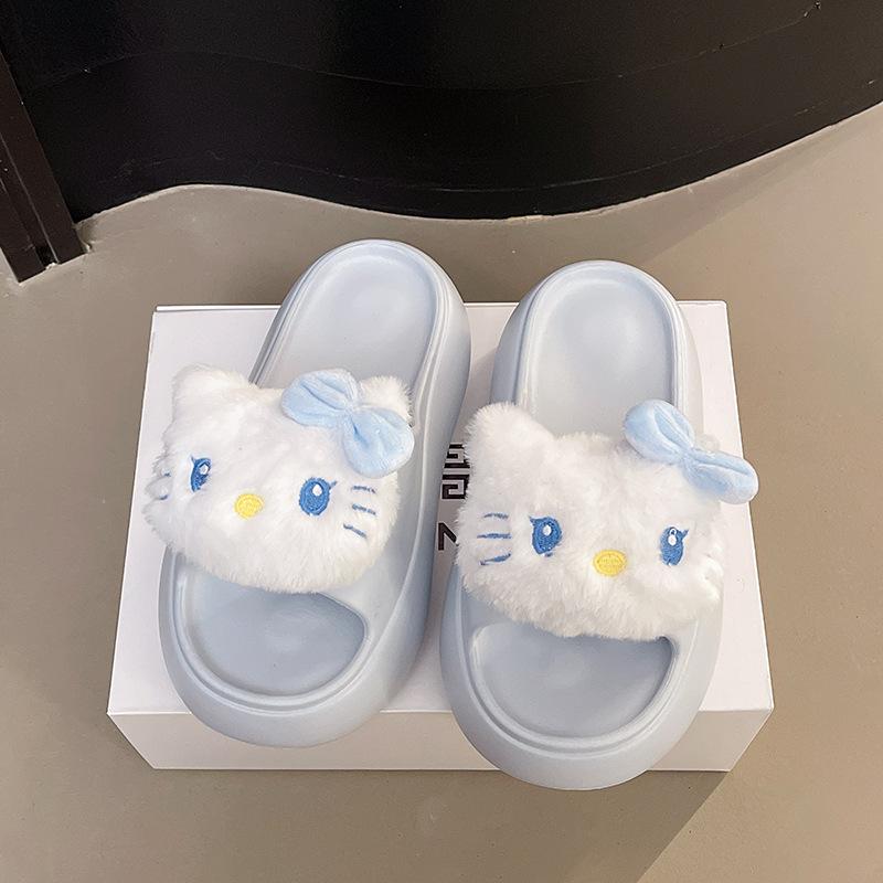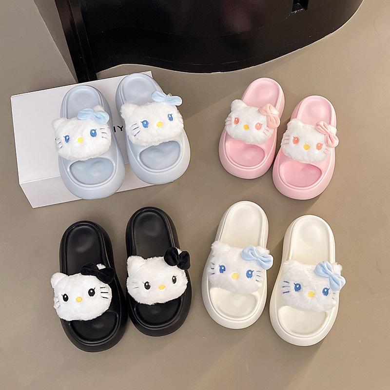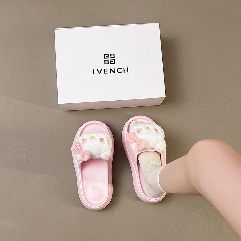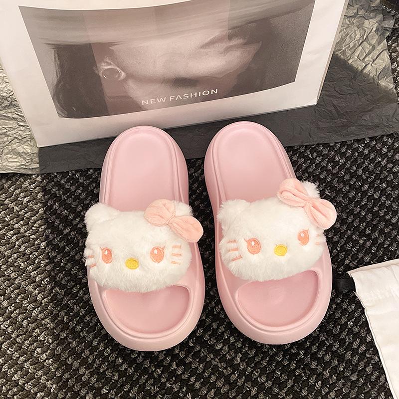 2025 Verano Nuevo Zapatillas Gruesas para Mujer Lindas Dulces Gato KT para Casa Exterior Antideslizantes EVA Chanclas