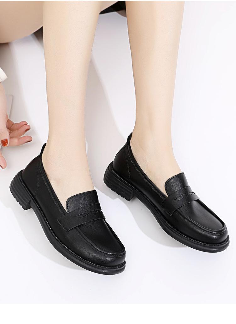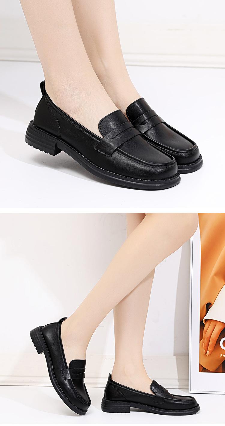 Zapatos de Trabajo Slip-on para Mujer Negros Planos Antideslizantes Suela Suave Cómodos Zapatos de Mujer Atendente de Restaurante Zapatos de Cuero Negros Zapatos de Mamá