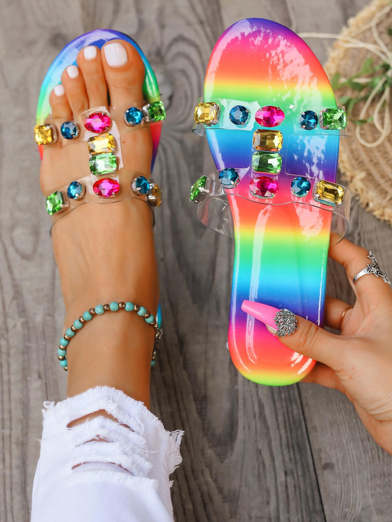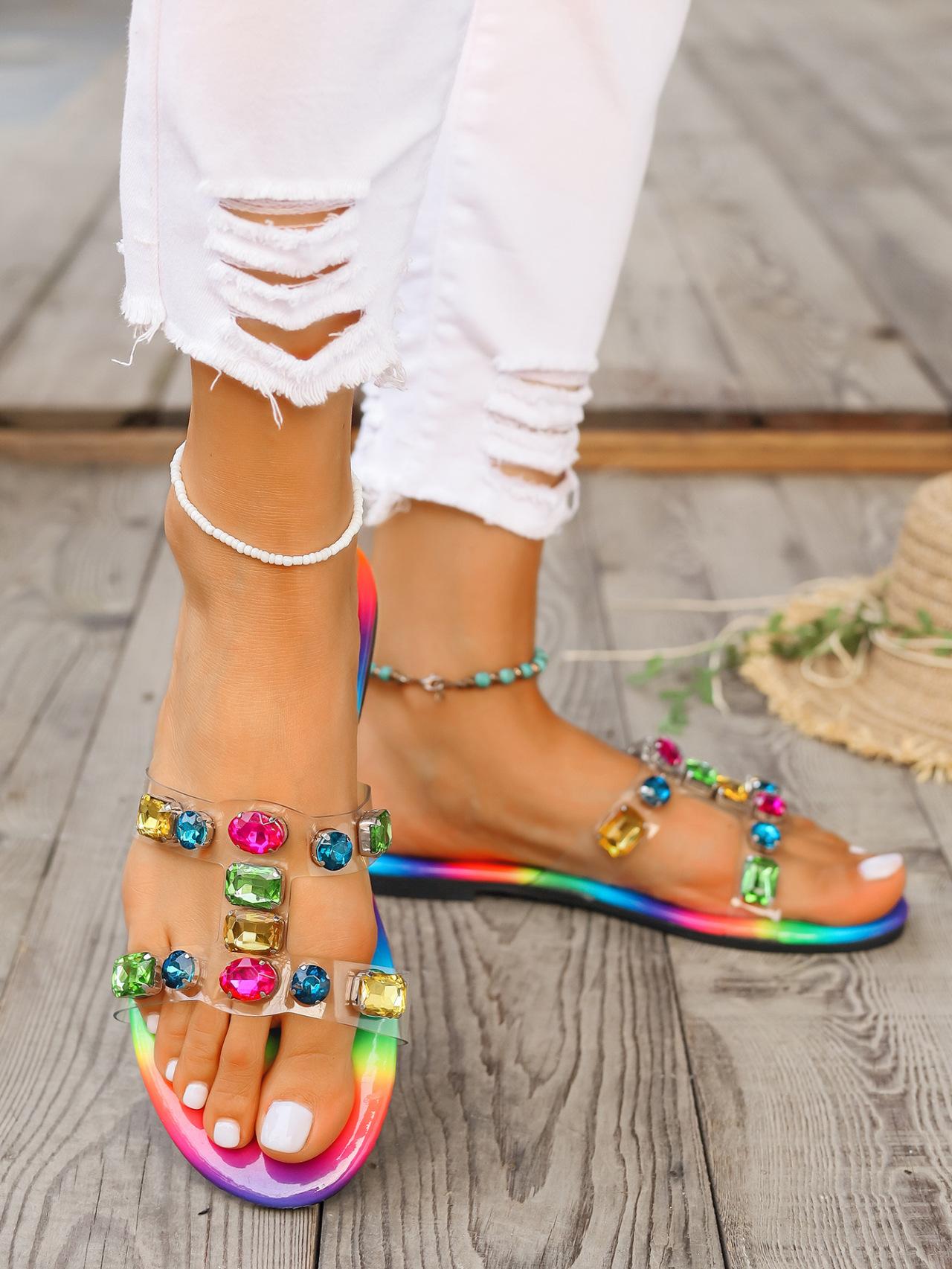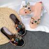 Zapatillas de mujer de talla grande en color caramelo, 2024, nuevas zapatillas casuales de verano con diamantes de imitación a la moda para exteriores, zapatillas de mujer