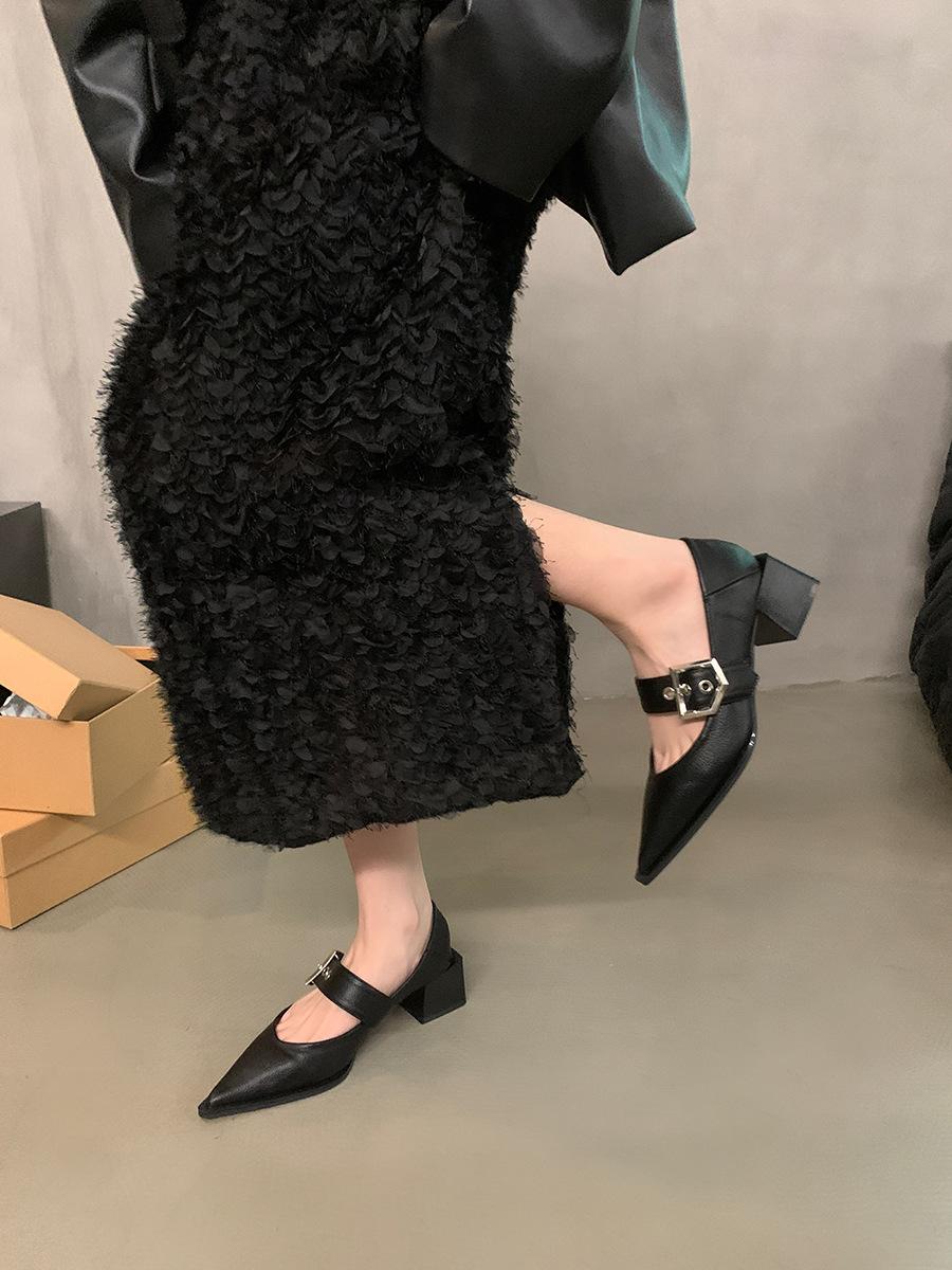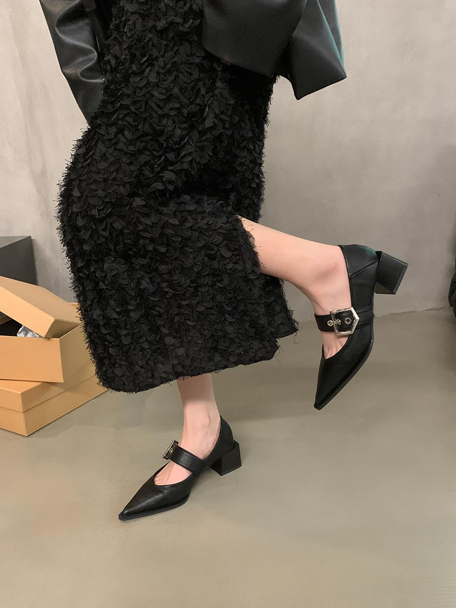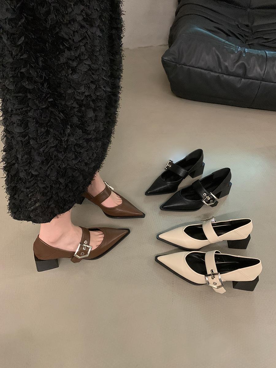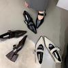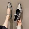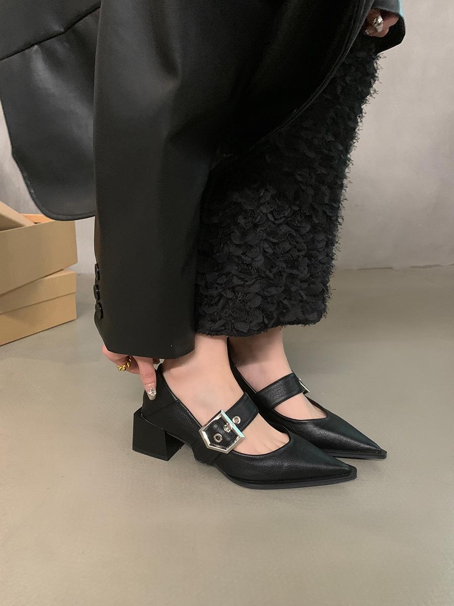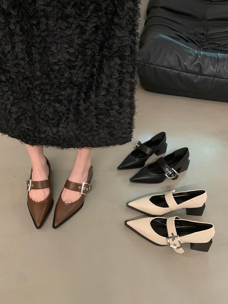 Zapatos Mary Jane de cuero estilo británico coreano con punta puntiaguda, estilo retro, con tacón grueso, para mujer, 2025.