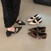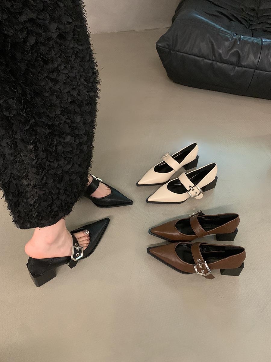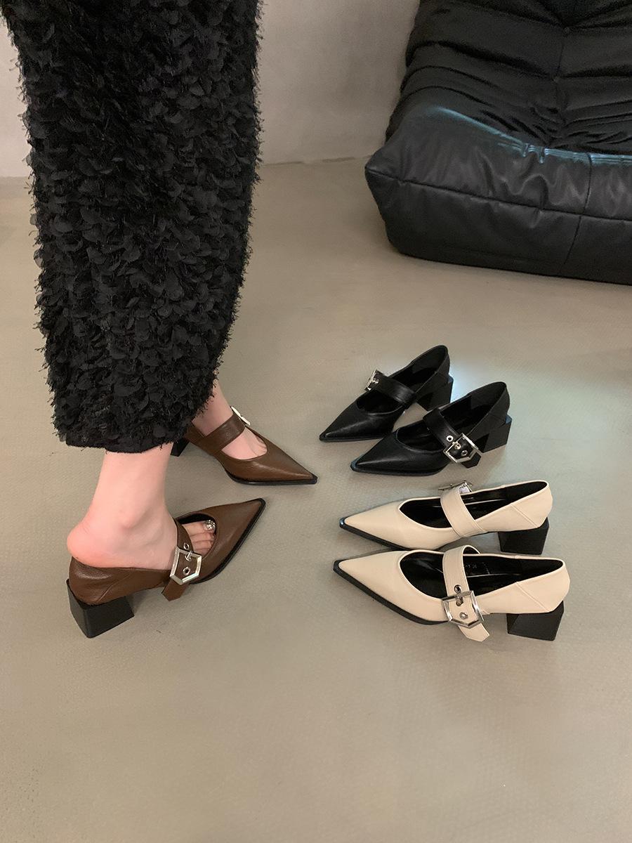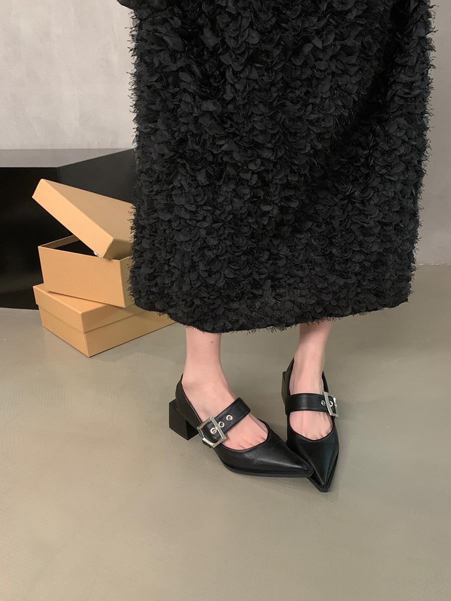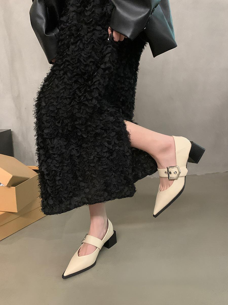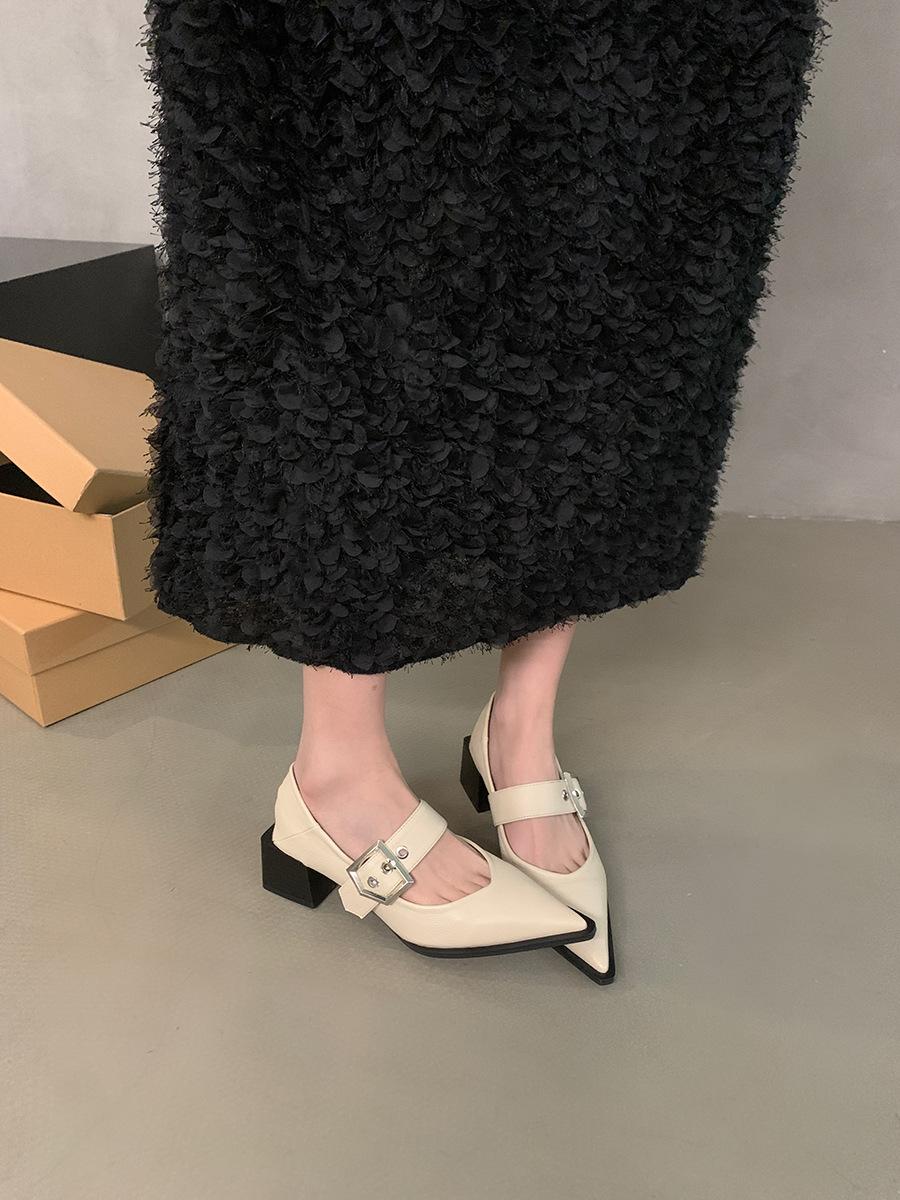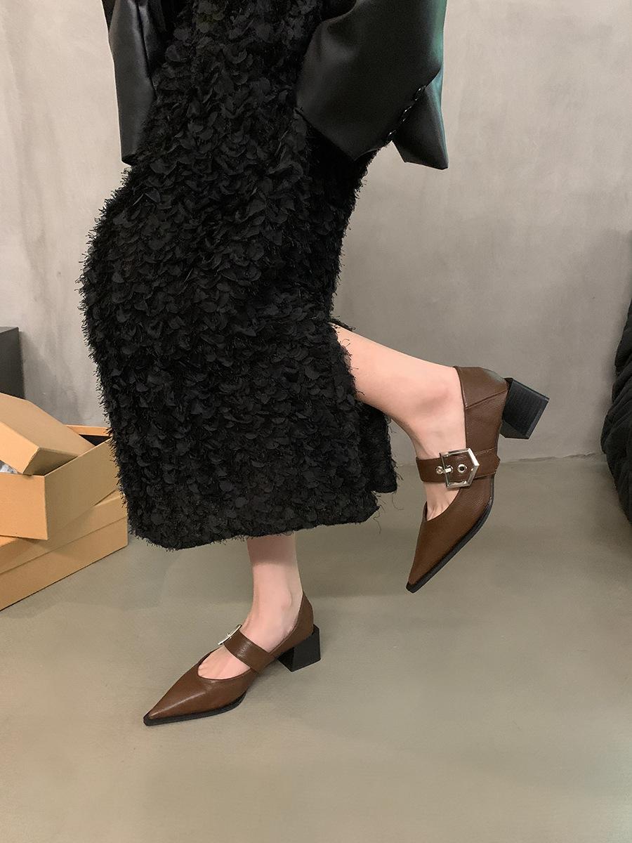 Zapatos Mary Jane de cuero estilo británico coreano con punta puntiaguda, estilo retro, con tacón grueso, para mujer, 2025.