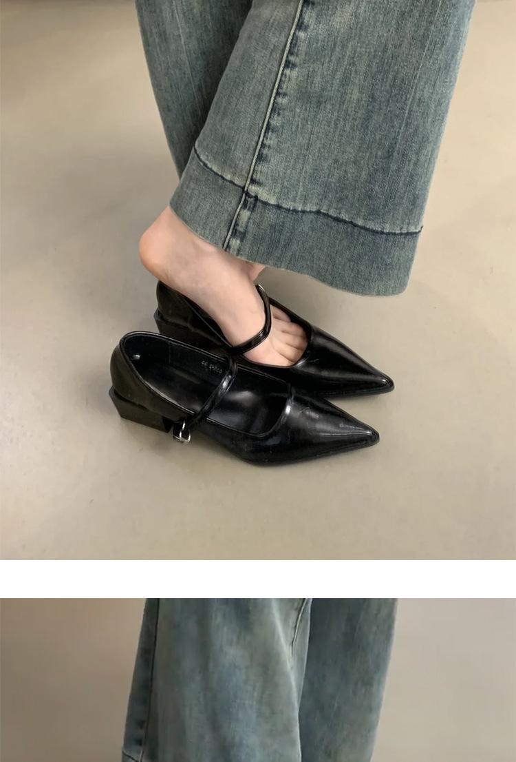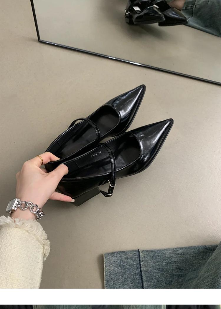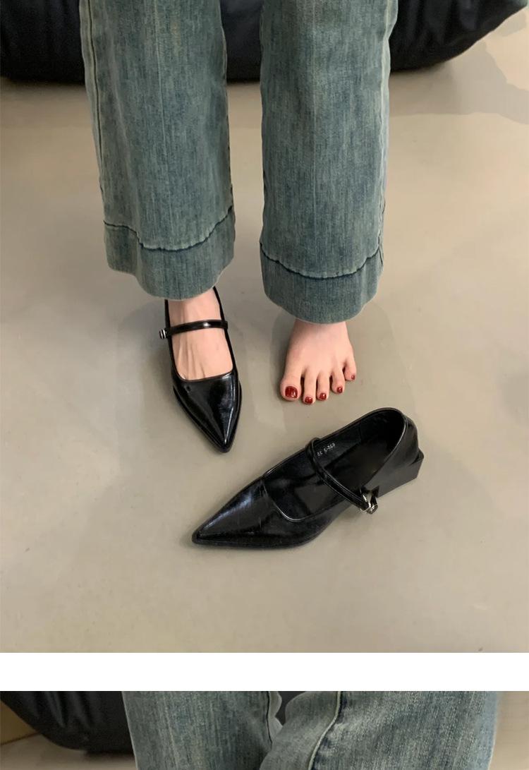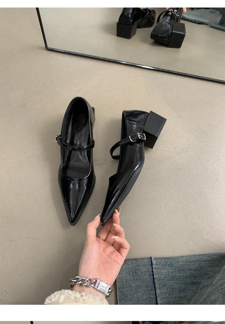 Zapatos Individuales de Punta Temperamento para Mujer 2025 Nuevo Primavera y Otoño Hebilla Palabra Boca Baja Mary Jane Zapatos Pequeños de Cuero