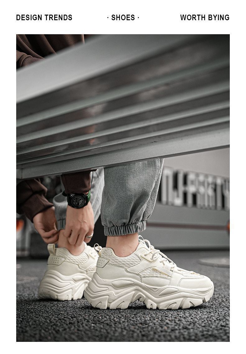 Zapatos de Hombre Otoño Malla Transpirable Modernos Versátiles Deportivos Casuales Zapatos de Hombre de Suela Gruesa para Aumentar la Altura Tenis Negros de Papá